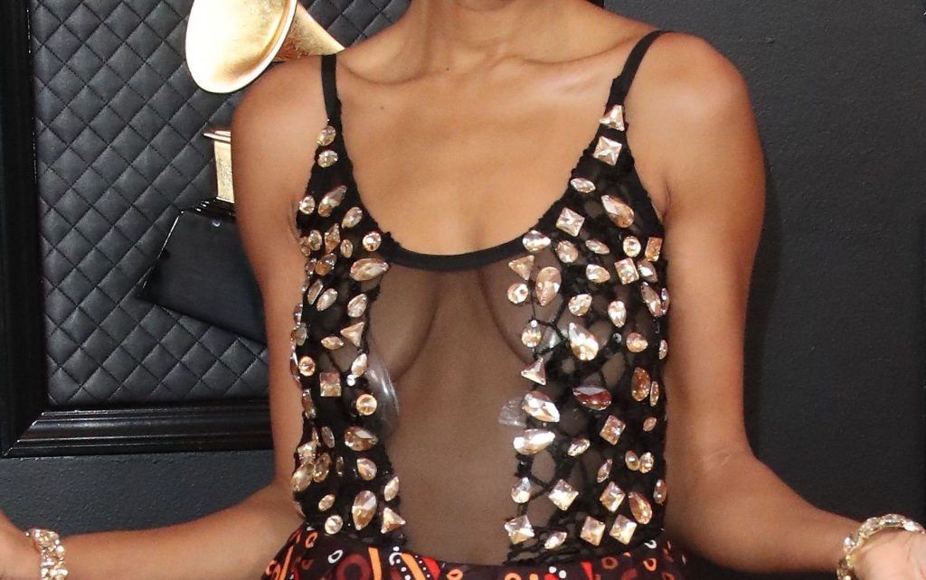 A cantora e compositora americana de jazz Jazzmeia Horn chega ao tapete vermelho durante o 62º Prêmio anual GRAMMY no STAPLES Center em Los Angeles, 26/01/2020.