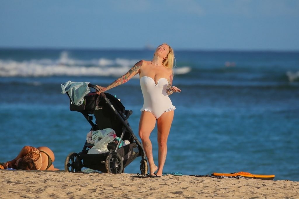 A atriz pornô Jenna Jameson arrasa na praia havaiana, 30/06/2019. Jenna e sua família se mudaram recentemente para o estado aloha e parecem estar se adaptando muito bem. Jenna documentou publicamente seus esforços para perder peso e, pelo que parece, isso tem dado resultado.