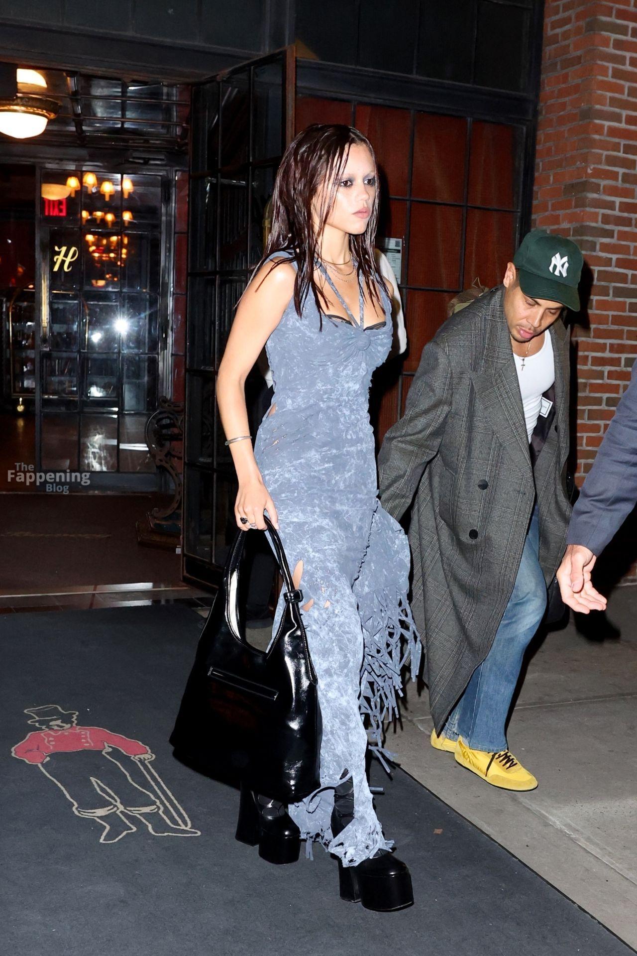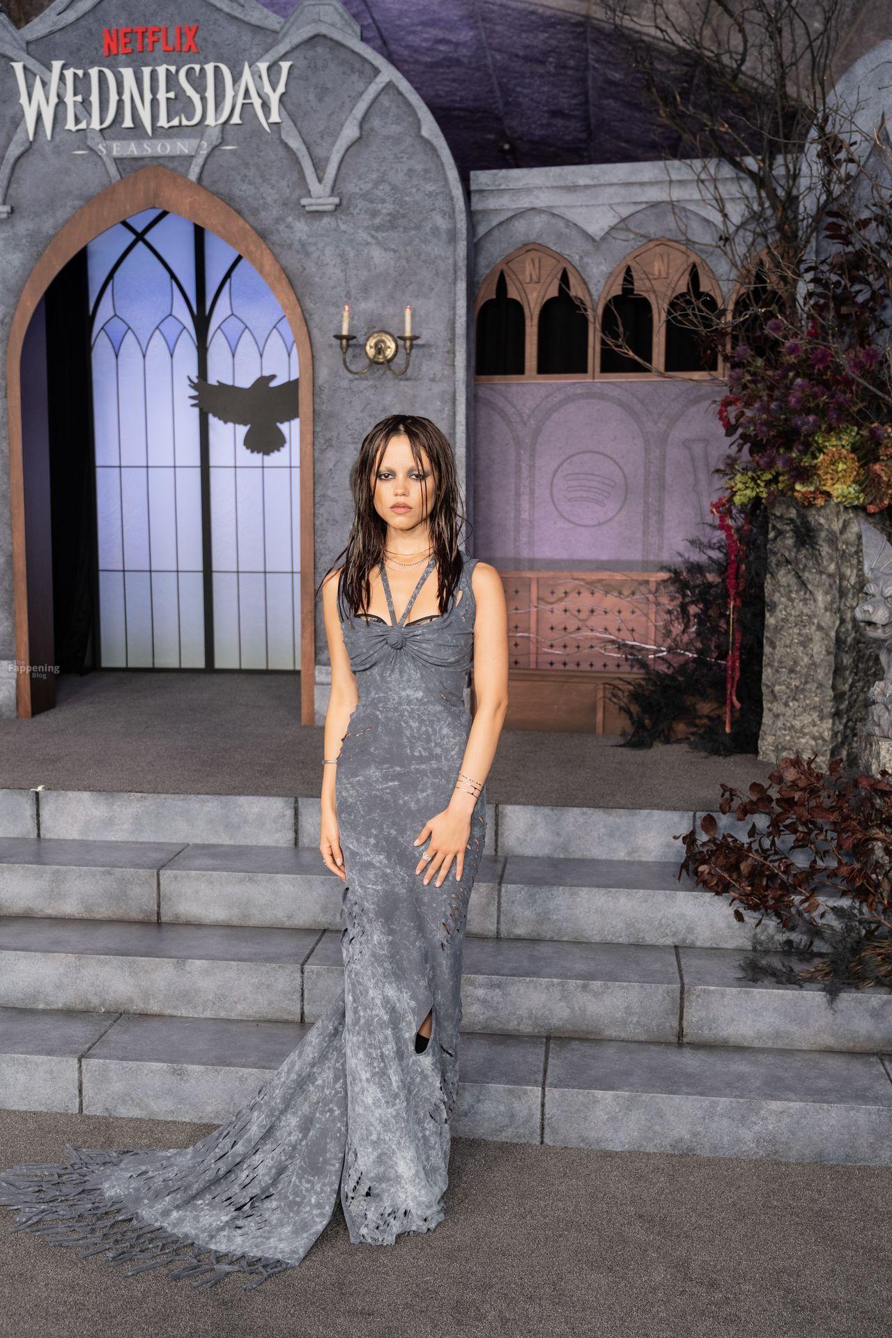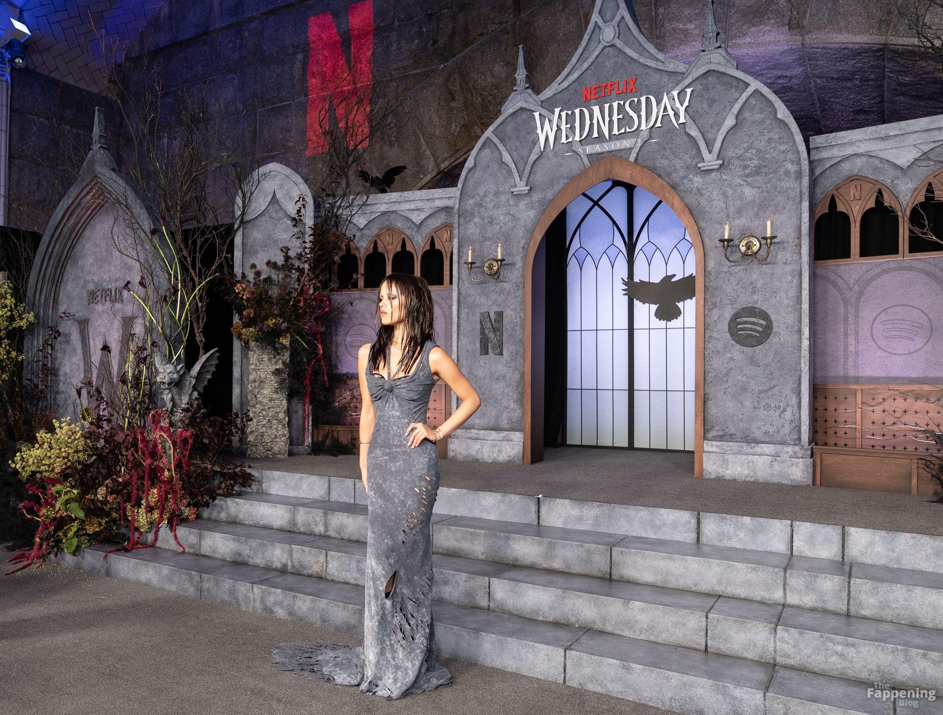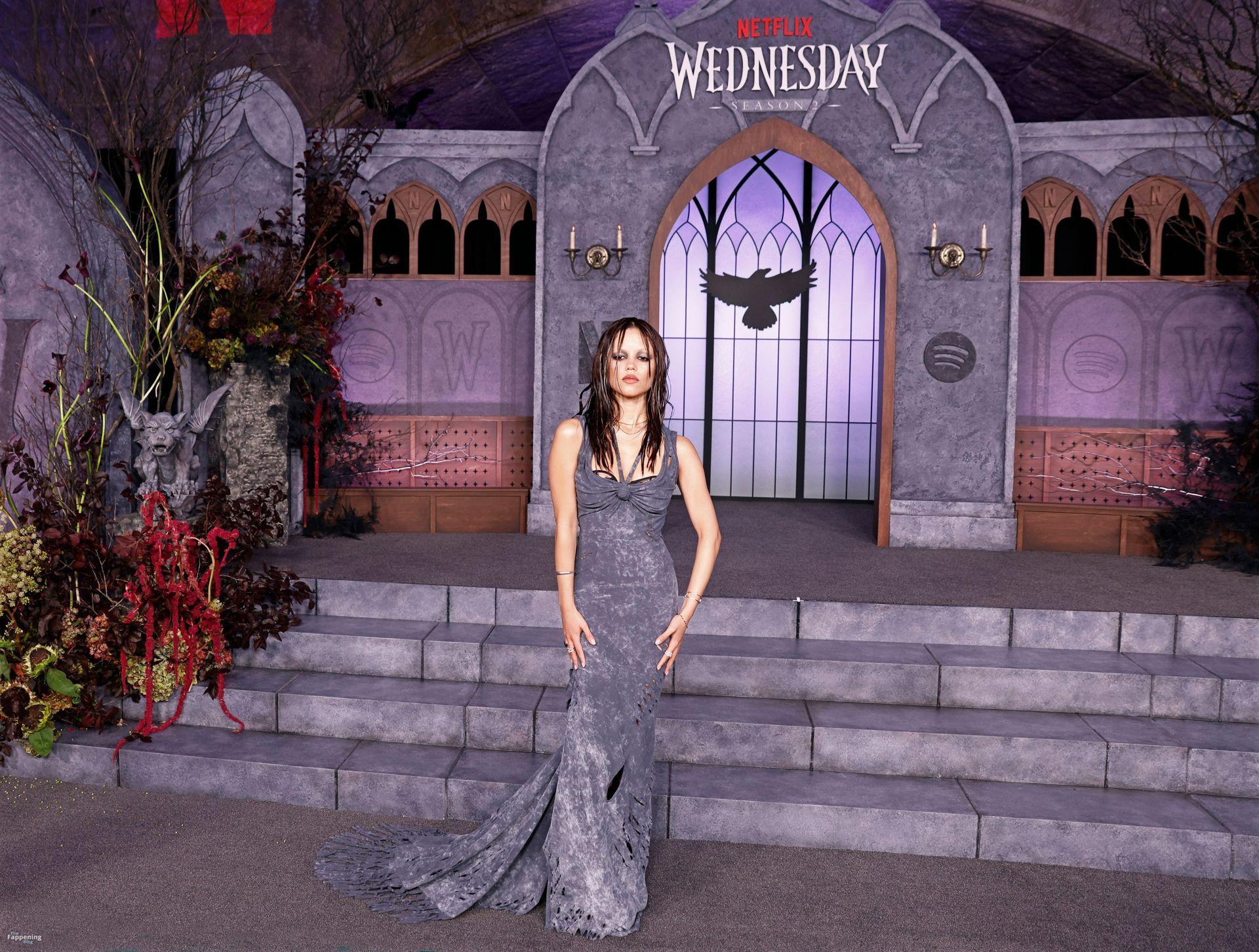 Jenna Ortega aumenta o calor com um vestido cinza rasgado e justo no Baile do Cemitério de “Wednesday” em NYC. Ela sai do The Bowery Hotel, arrasando com plataformas pretas grossas e uma bolsa de couro preta para a festa da 2ª temporada da Netflix e Spotify.