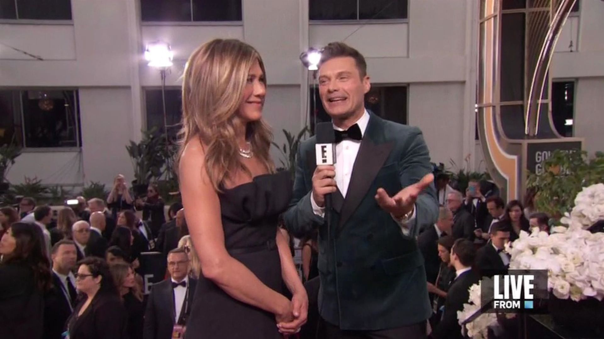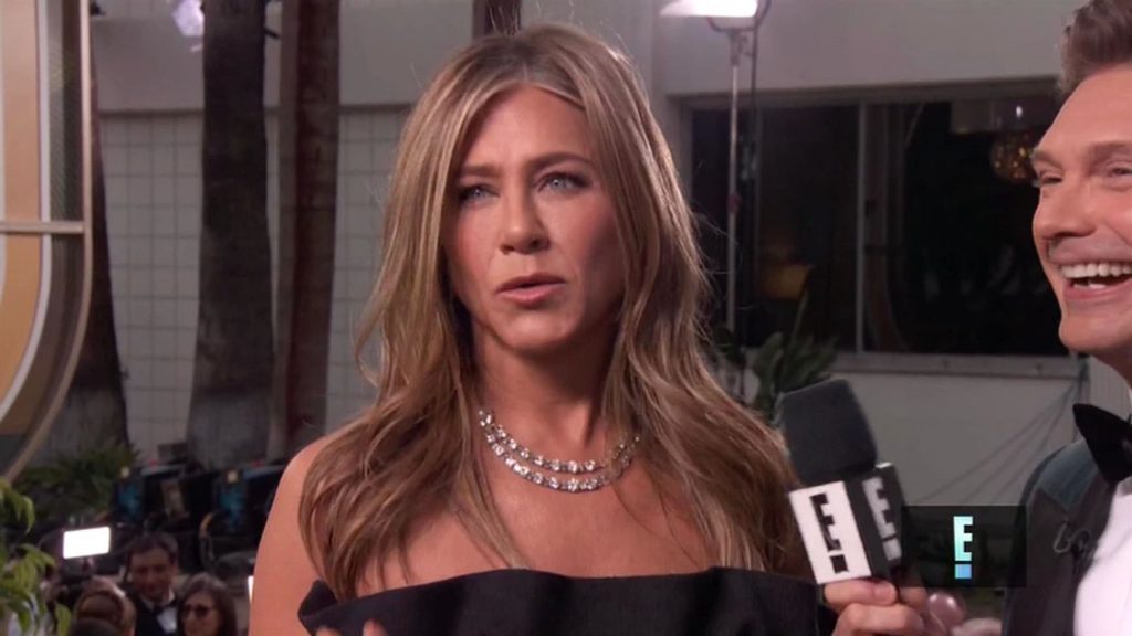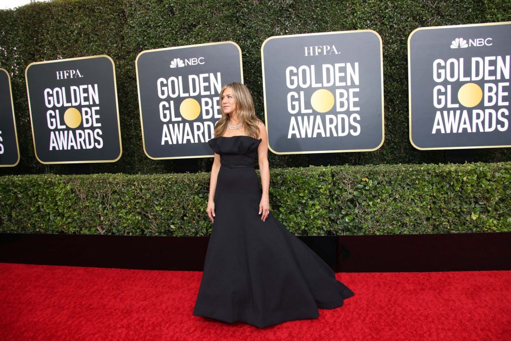 Atriz Jennifer Aniston foi fotografada no tapete vermelho durante a 77ª Cerimônia Anual do Globo de Ouro no The Beverly Hilton Hotel, 01/05/2020.