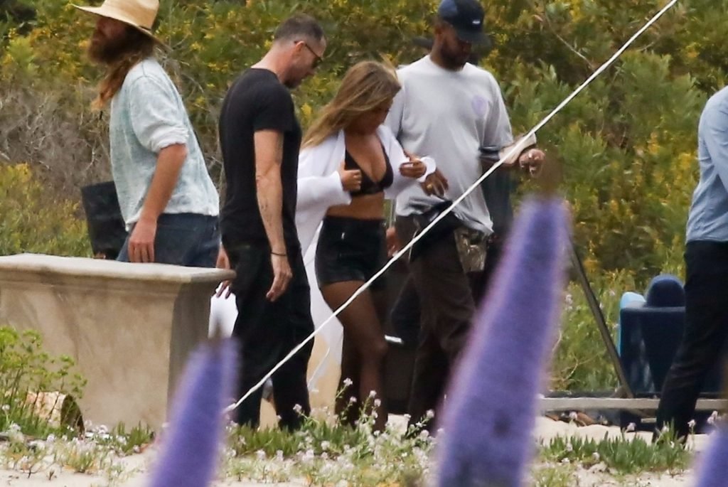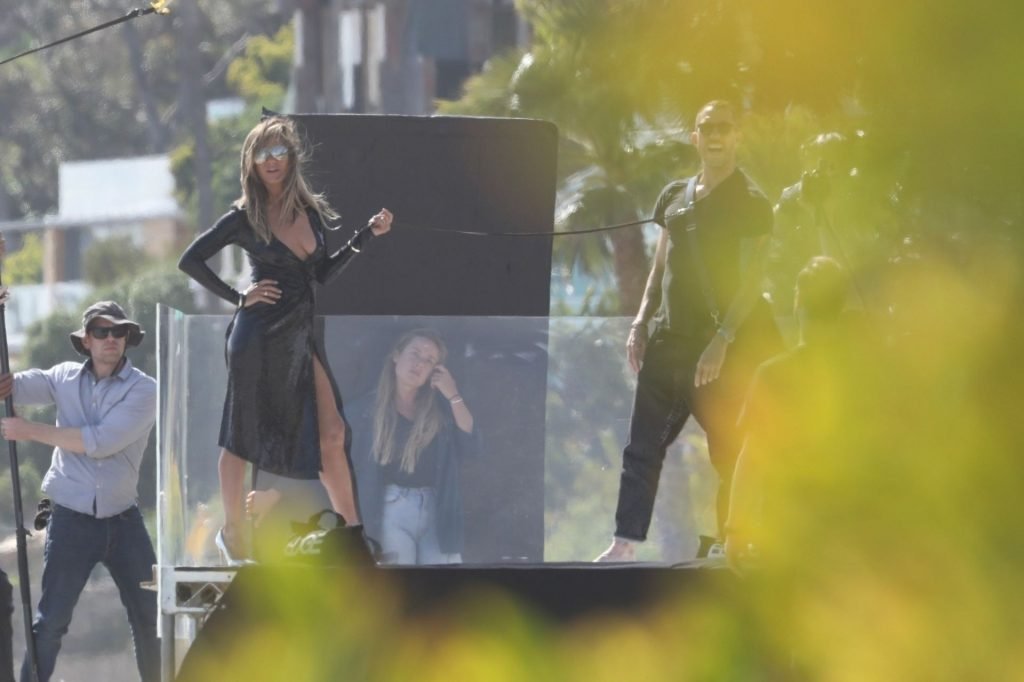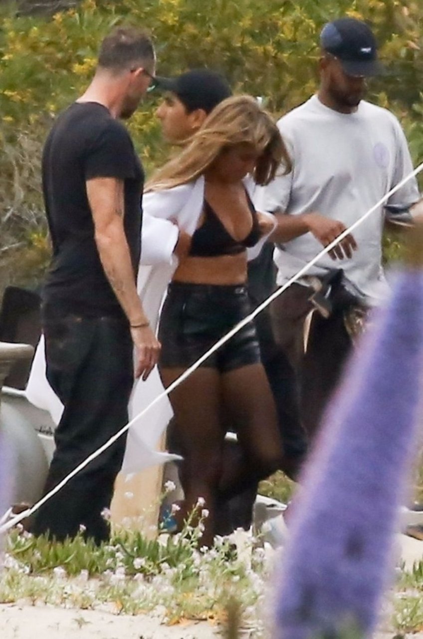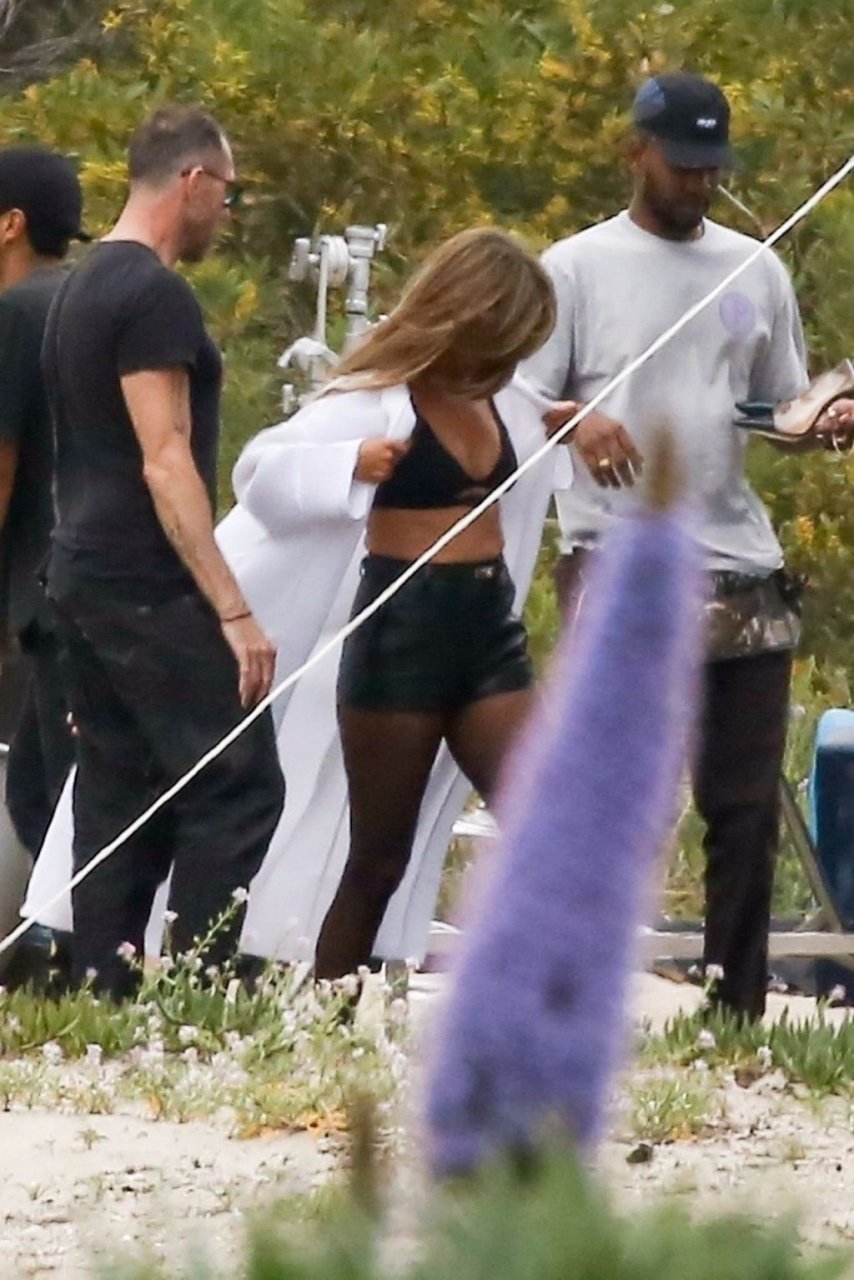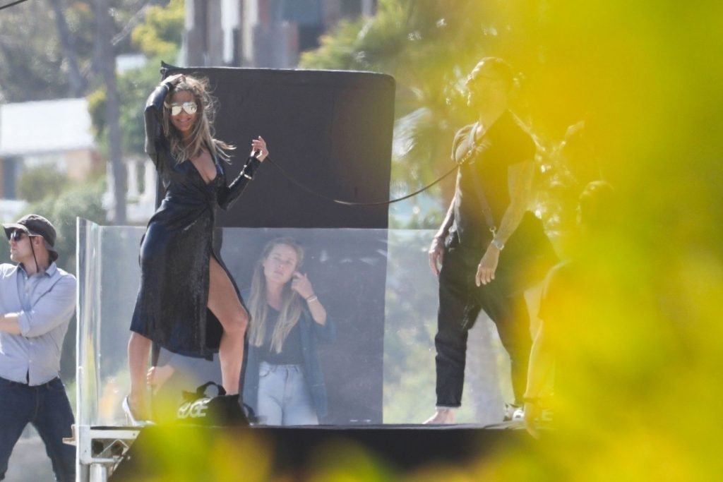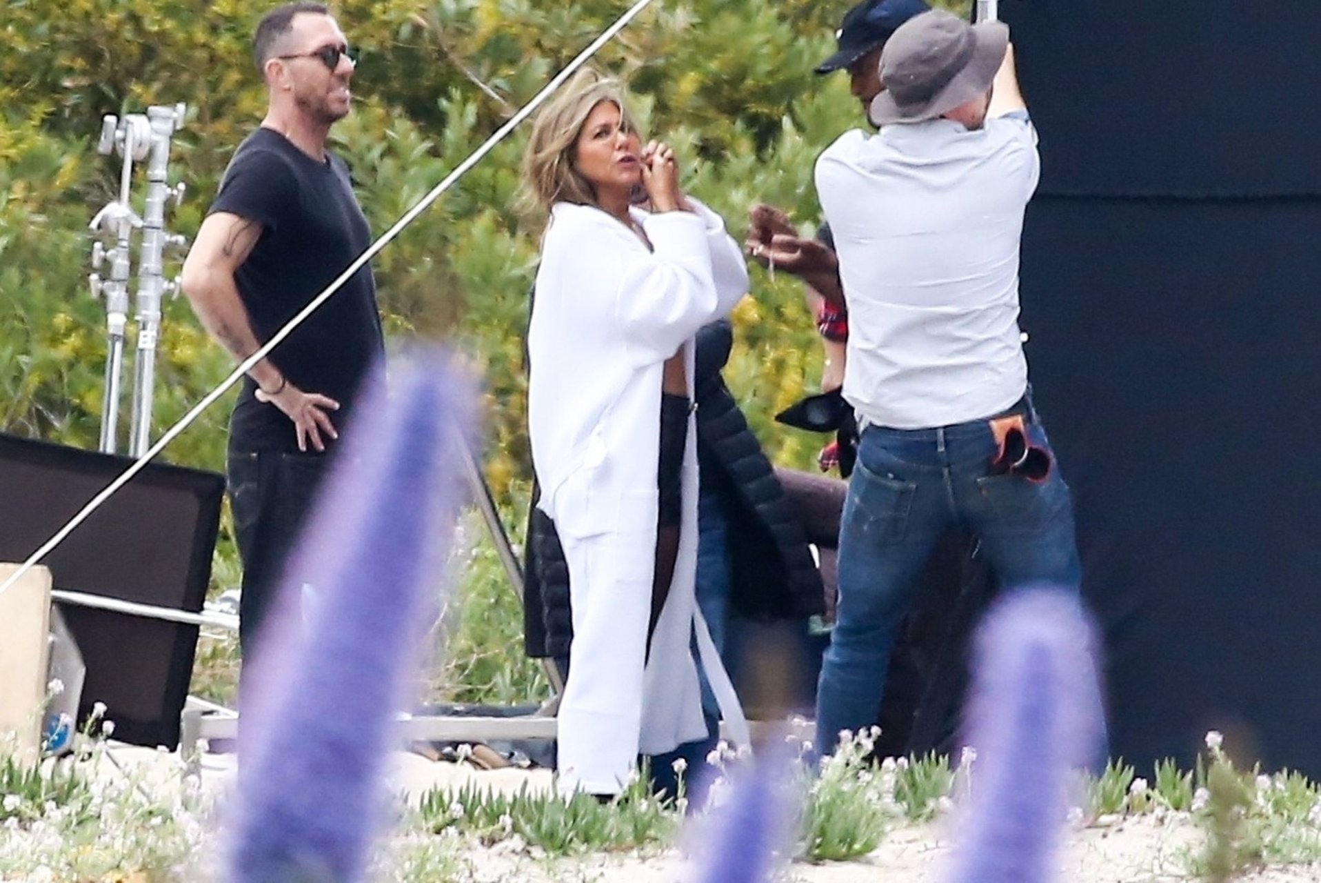 Jennifer Aniston posa para um ensaio fotográfico sexy na praia em Malibu, 27/03/2019. Aniston posou com um cachorro usando um vestido preto de látex provocante com decote profundo antes de vestir um vestido preto diferente, que também apresentava um decote profundo.