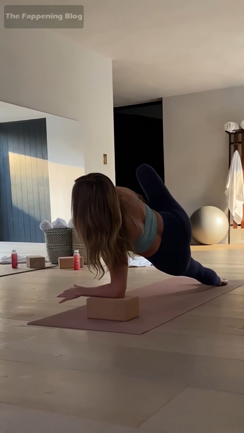 Assista ao novo vídeo sexy de Jennifer Aniston, mostrando seu bumbum apertado em leggings e suas ótimas habilidades de alongamento – Instagram, 17/12/2021.
