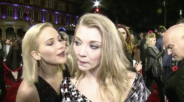 Jennifer Lawrence e Natalie Dormer se beijaram no tapete vermelho na estreia de Jogos Vorazes em Londres em 11/06/2015. Novas capturas de tela, gif e vídeo! Perfeito!