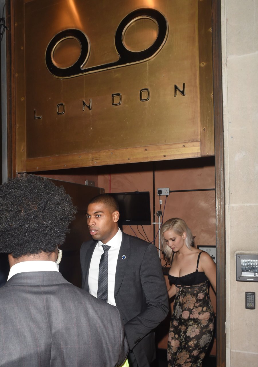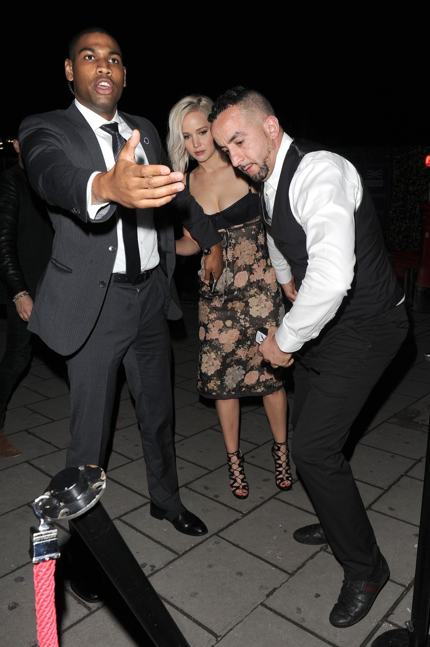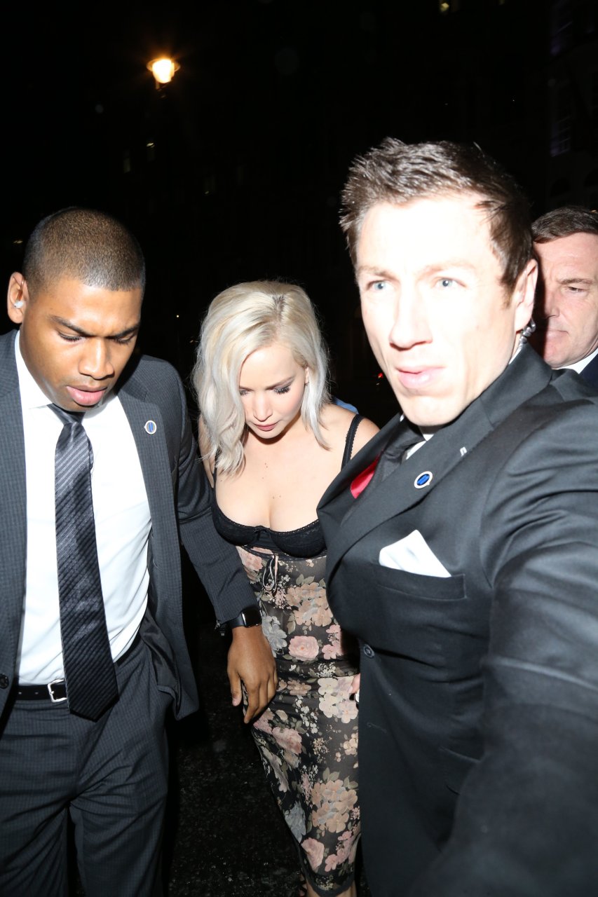Jennifer Lawrence usando um sutiã preto em Londres, 05/09/16. Estilo interessante! Jennifer Lawrence é uma atriz americana, conhecida por “Jogos Vorazes”, “X-Men” e “Serena”. Idade: 25 (15 de agosto de 1990).