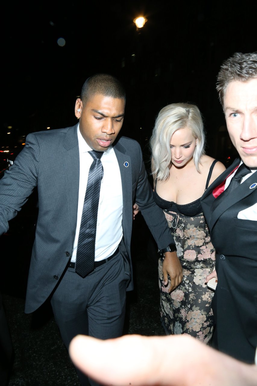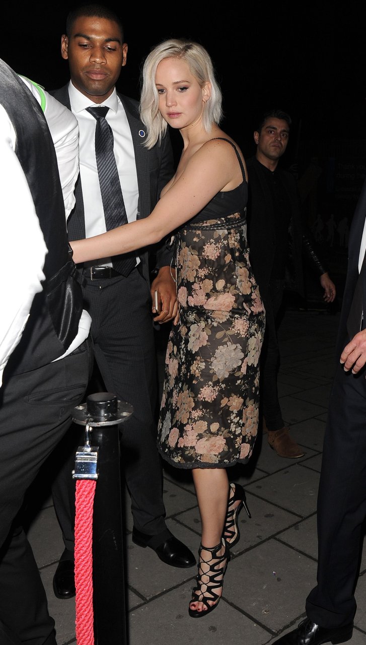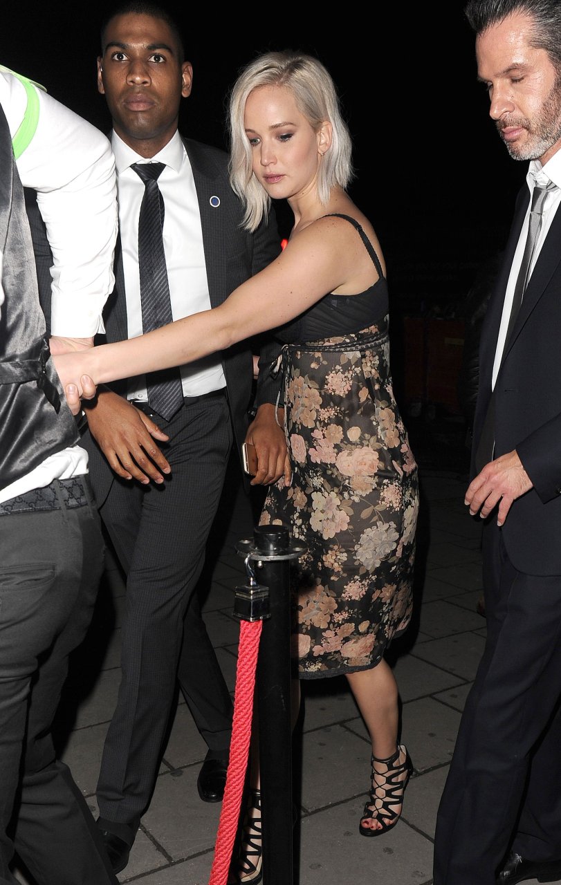 Jennifer Lawrence usando um sutiã preto em Londres, 05/09/16. Estilo interessante! Jennifer Lawrence é uma atriz americana, conhecida por “Jogos Vorazes”, “X-Men” e “Serena”. Idade: 25 (15 de agosto de 1990).