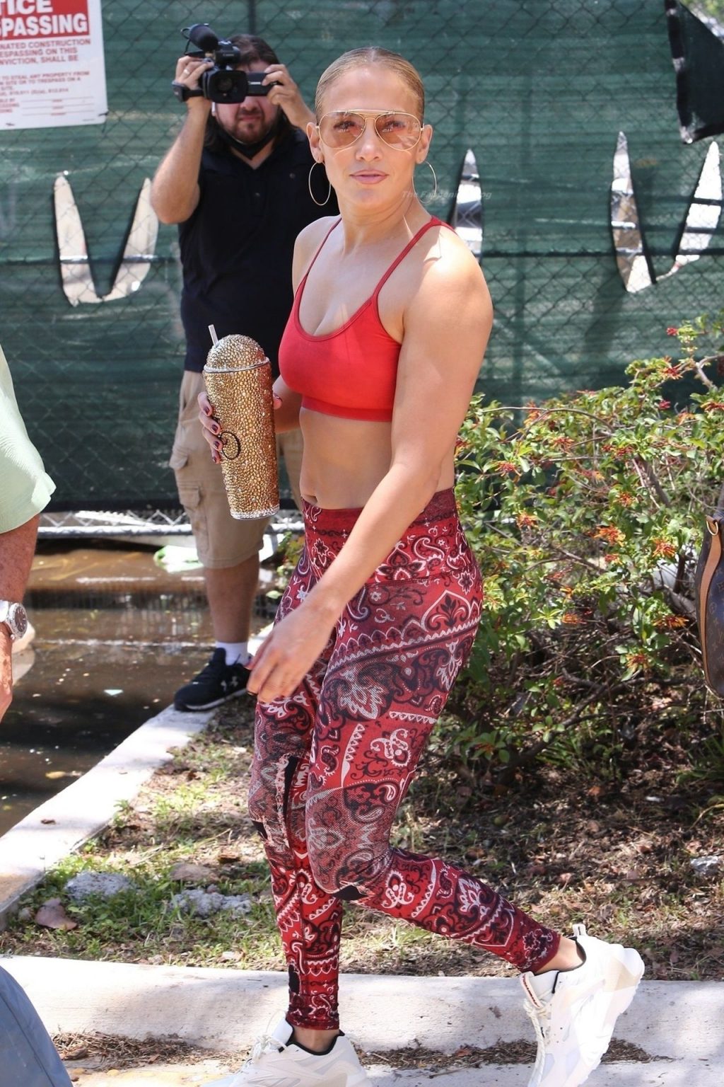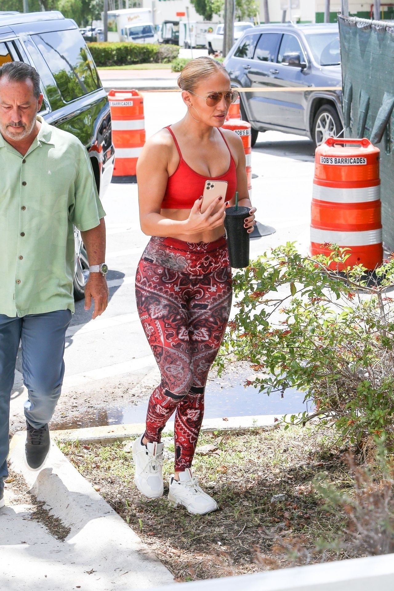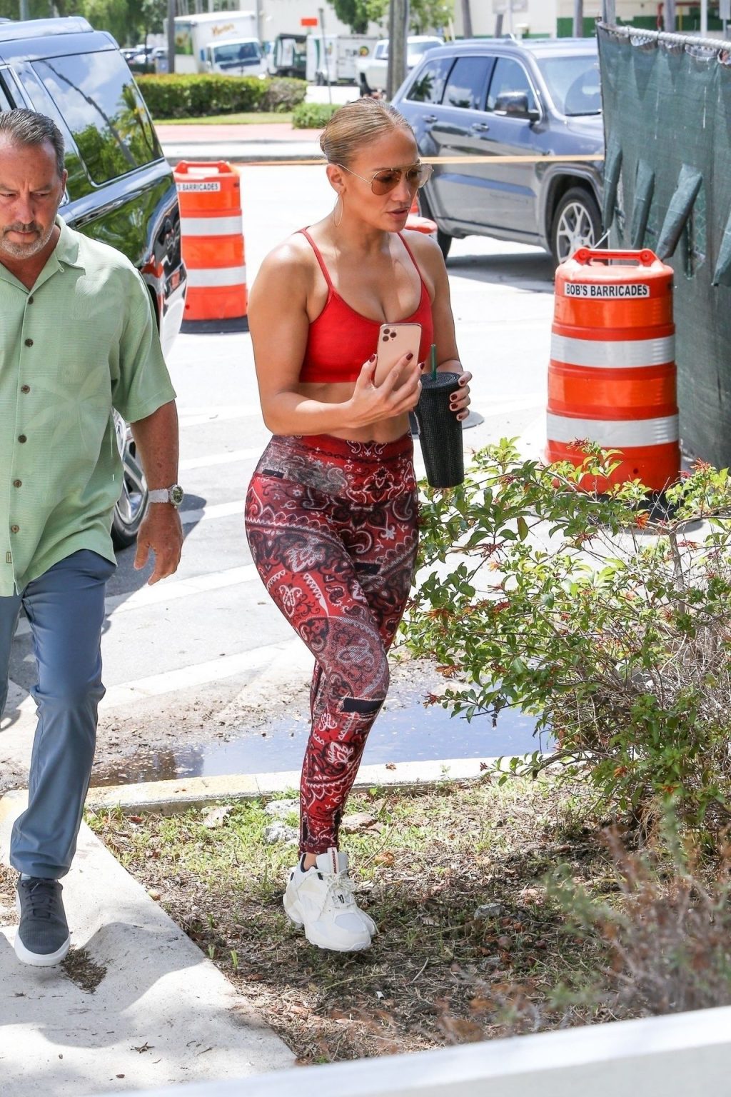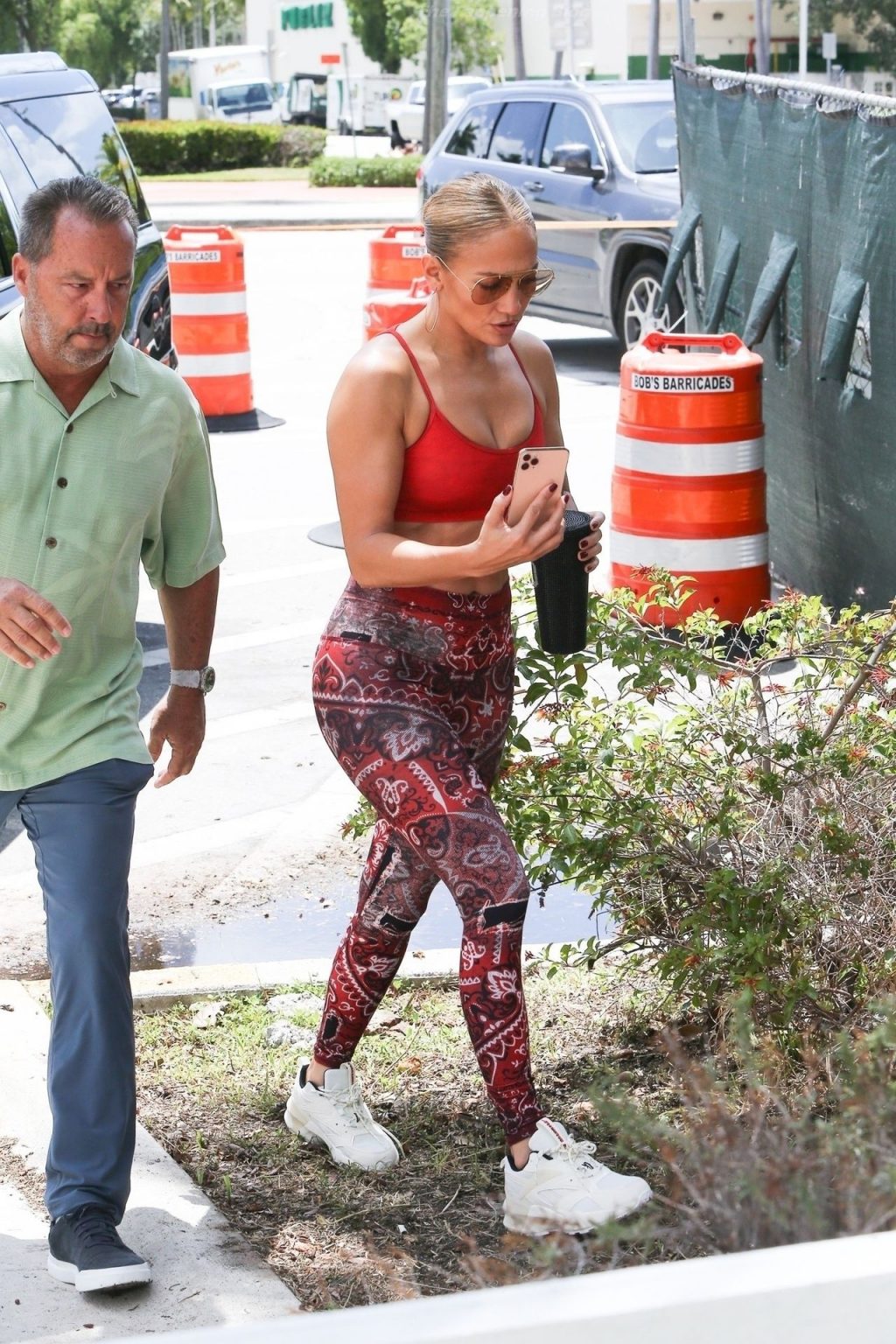 Cantora Jennifer Lopez vai à academia exibindo suas curvas famosas em Miami, 10/06/2021.