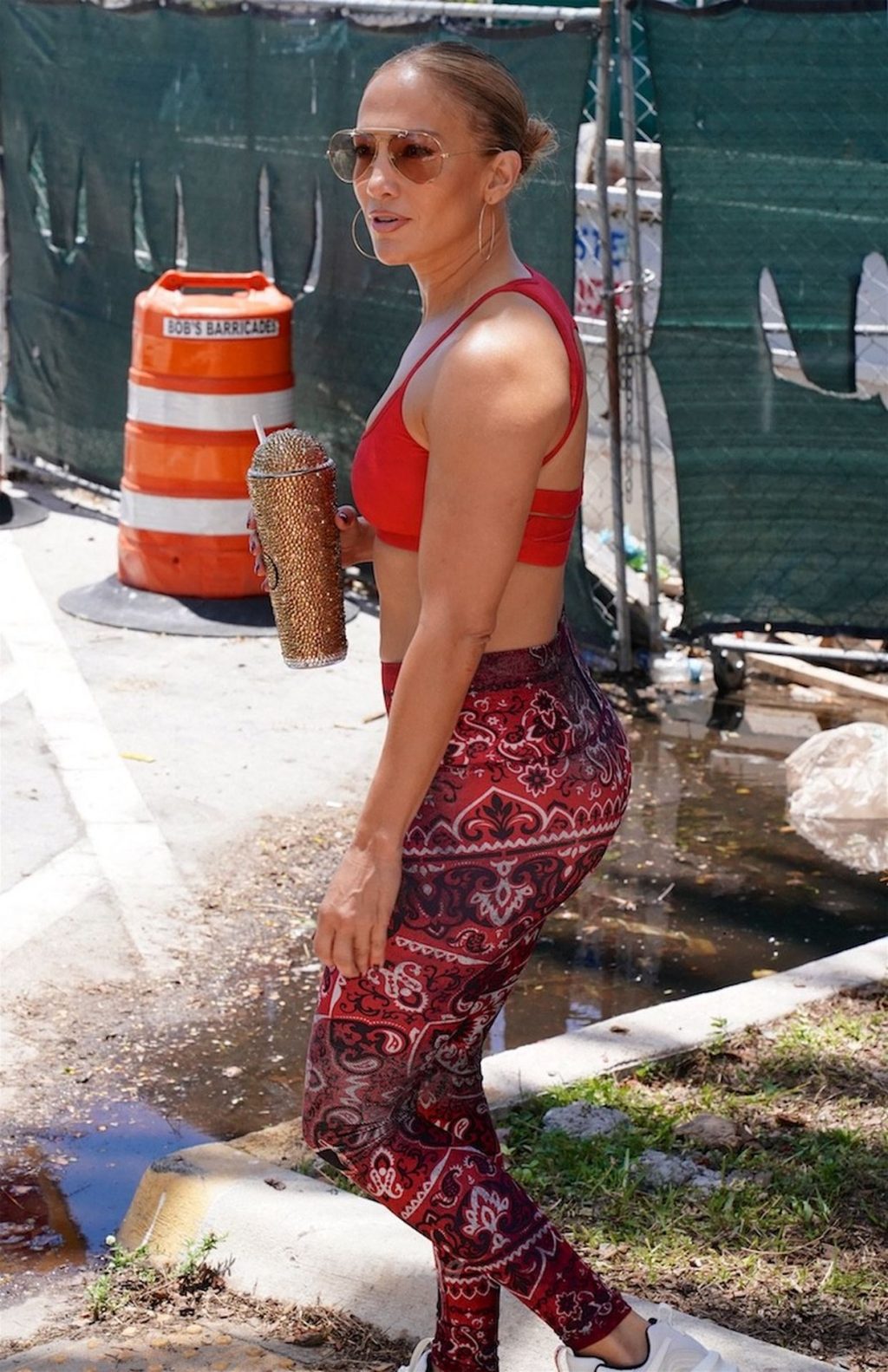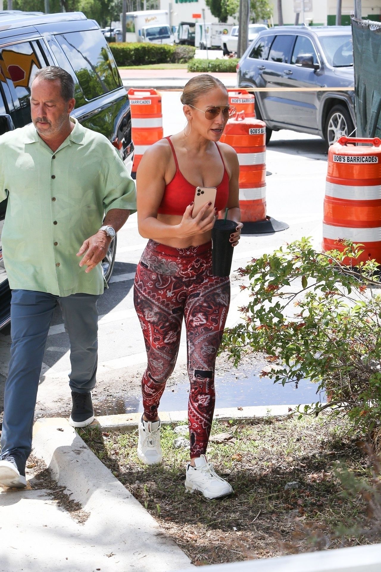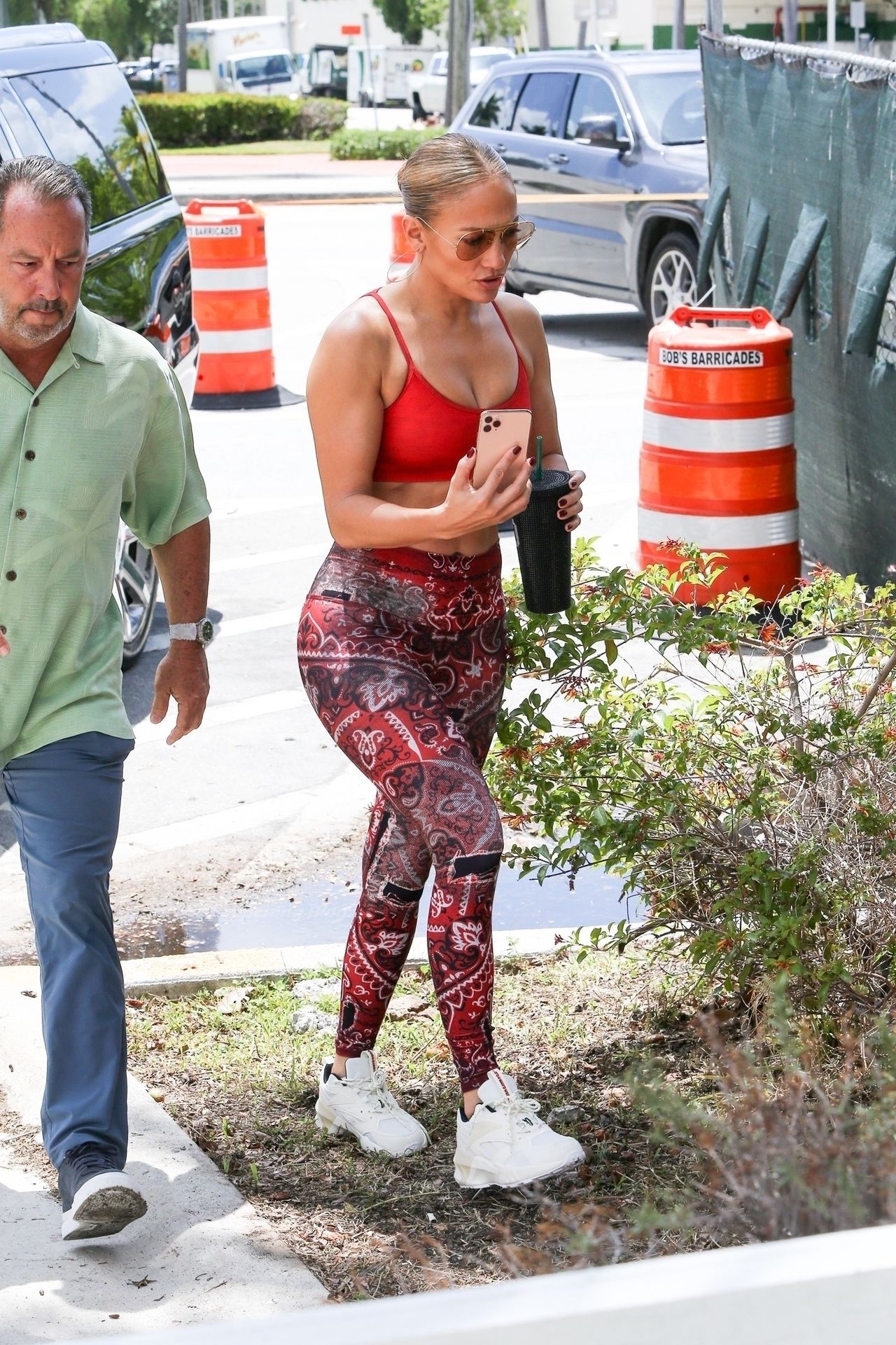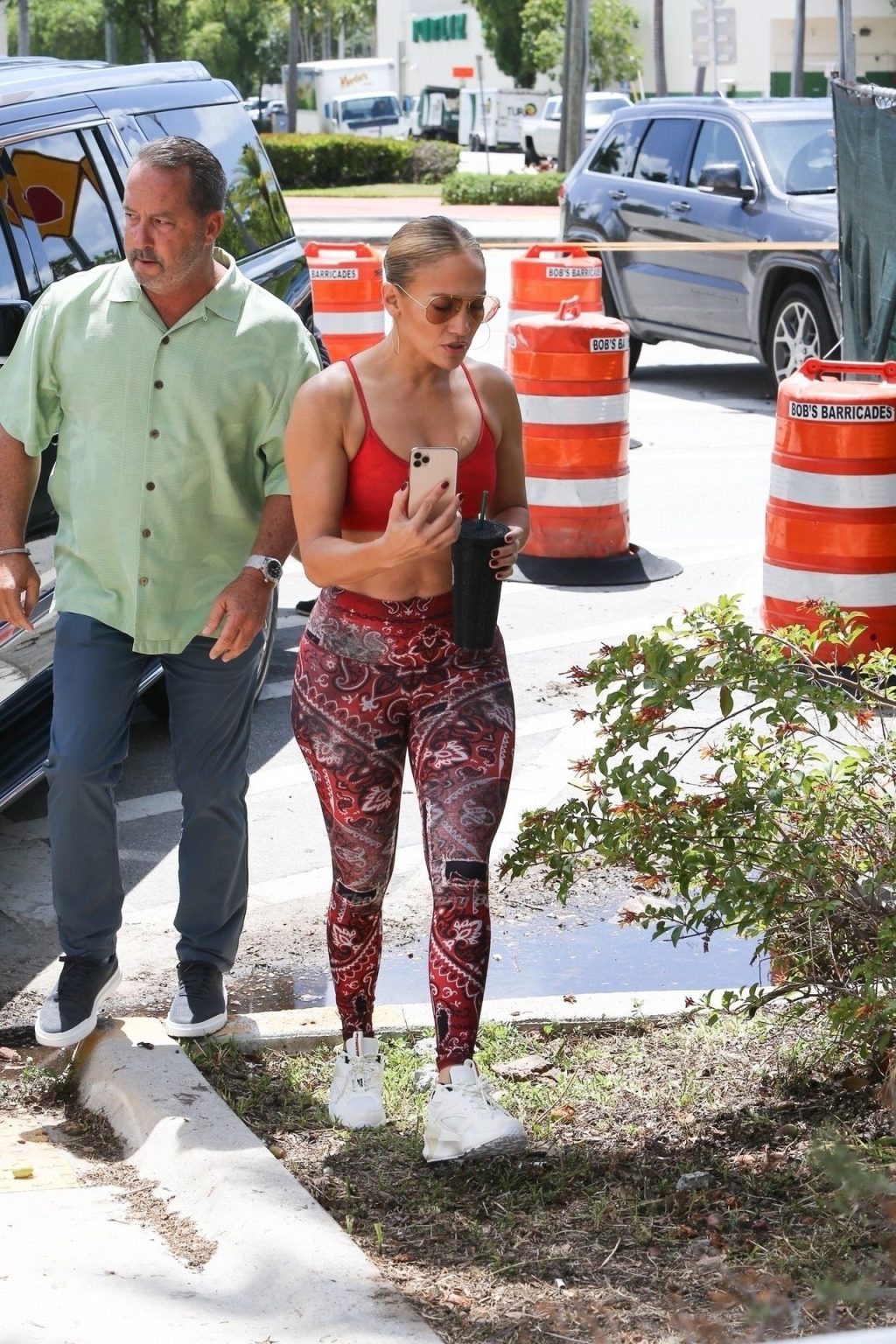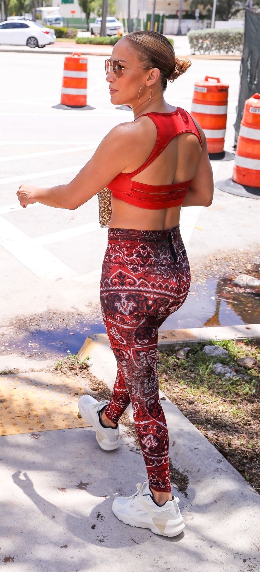 Cantora Jennifer Lopez vai à academia exibindo suas curvas famosas em Miami, 10/06/2021.