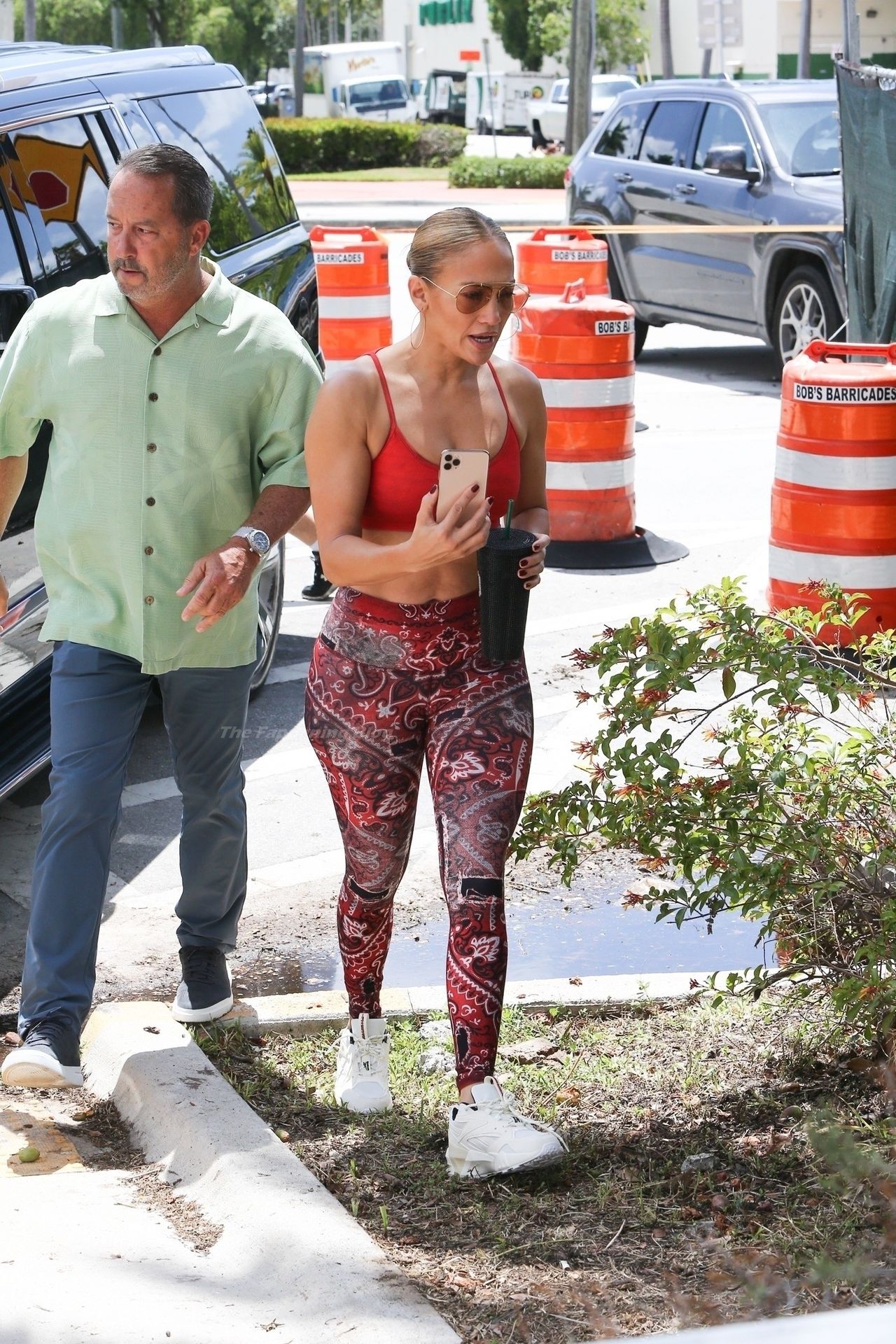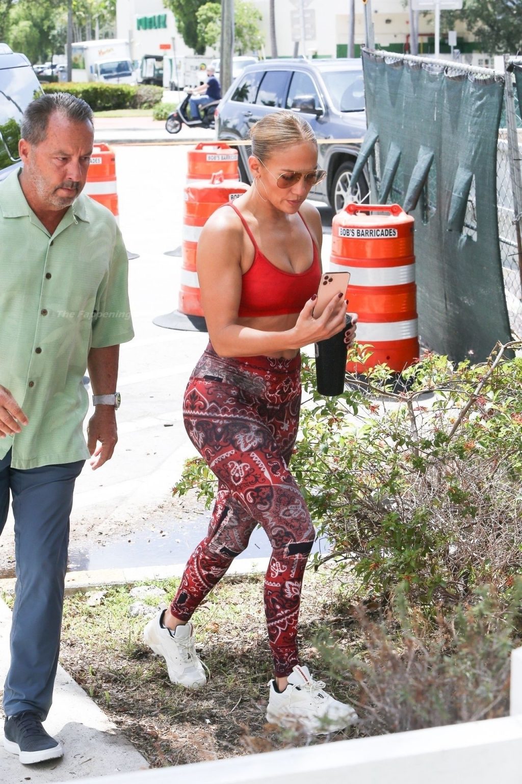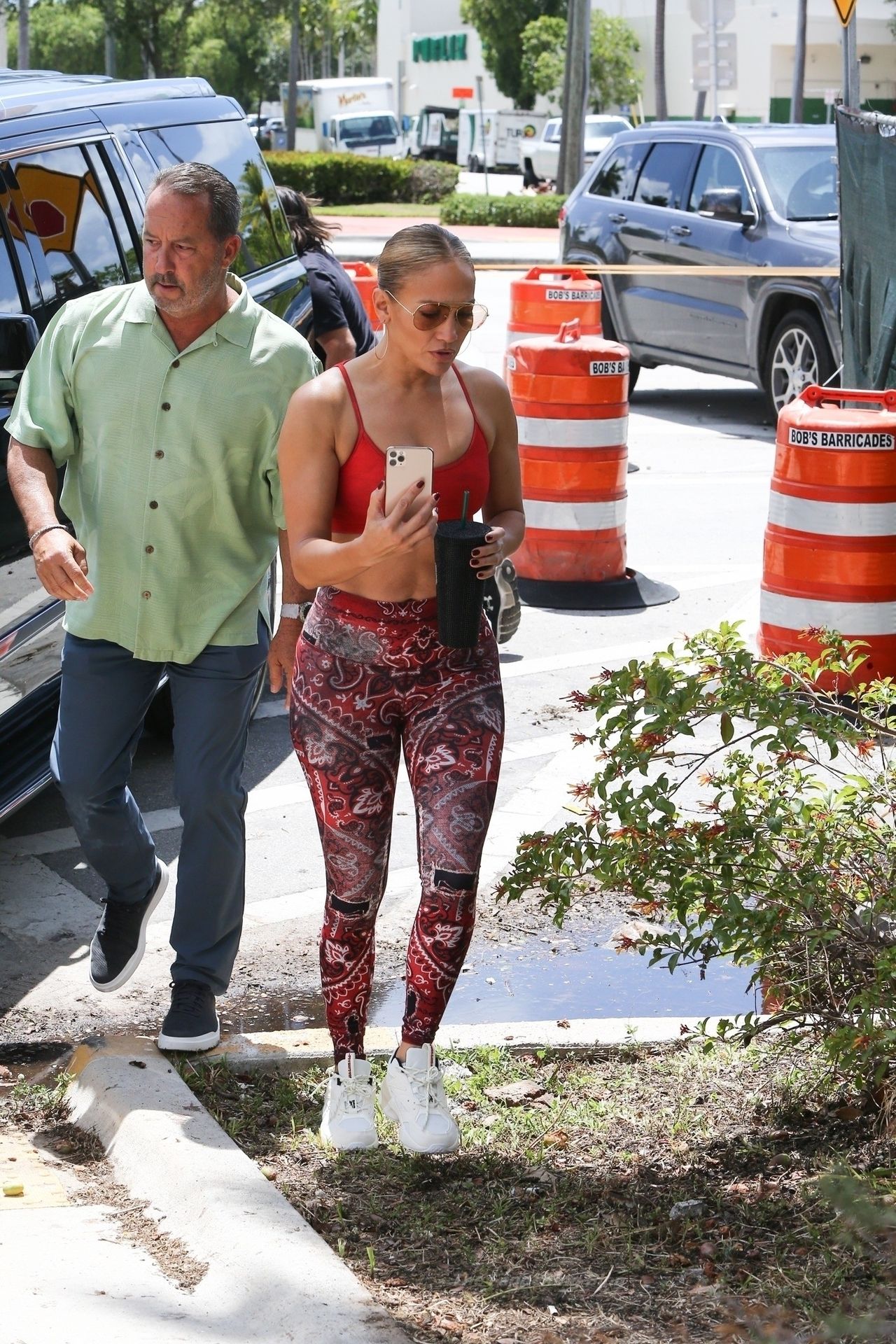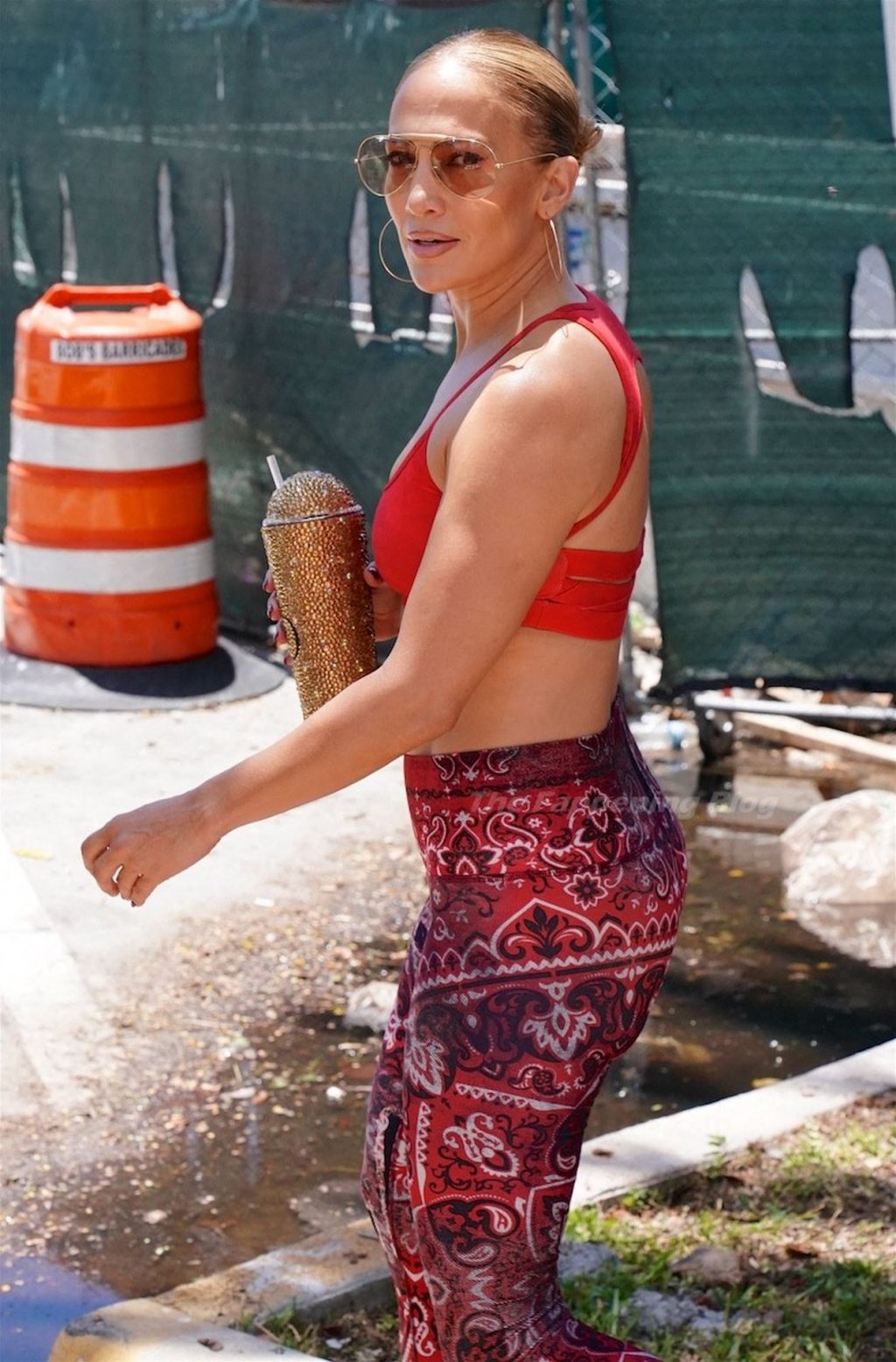 Cantora Jennifer Lopez vai à academia exibindo suas curvas famosas em Miami, 10/06/2021.