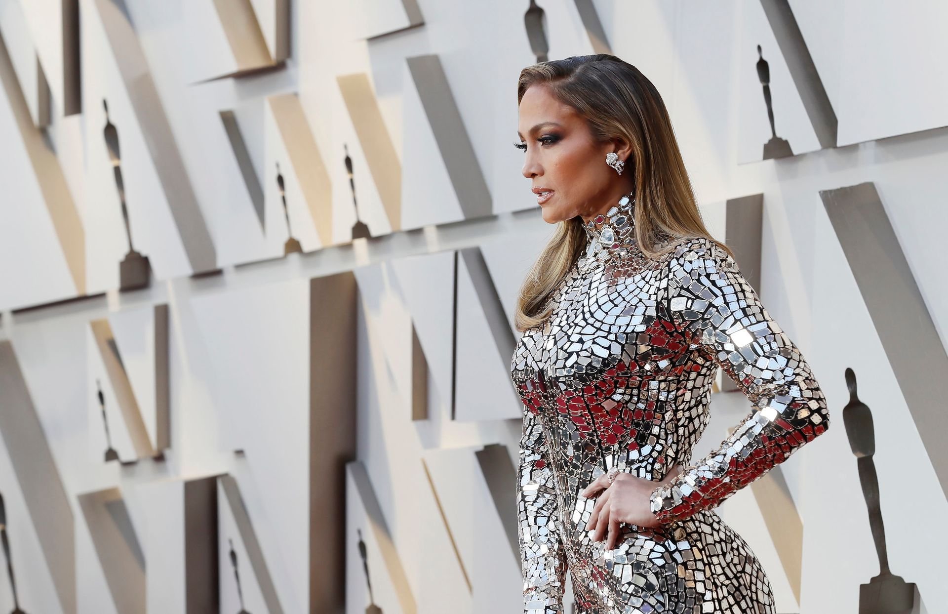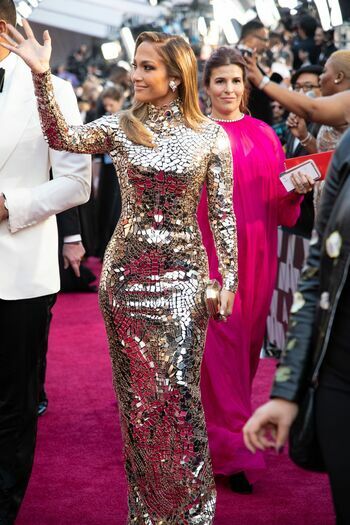 Jennifer Lopez fotografada no 91º Oscar em Hollywood com seu deslumbrante vestido Tom Ford – Hollywood, 24/02/2019.
