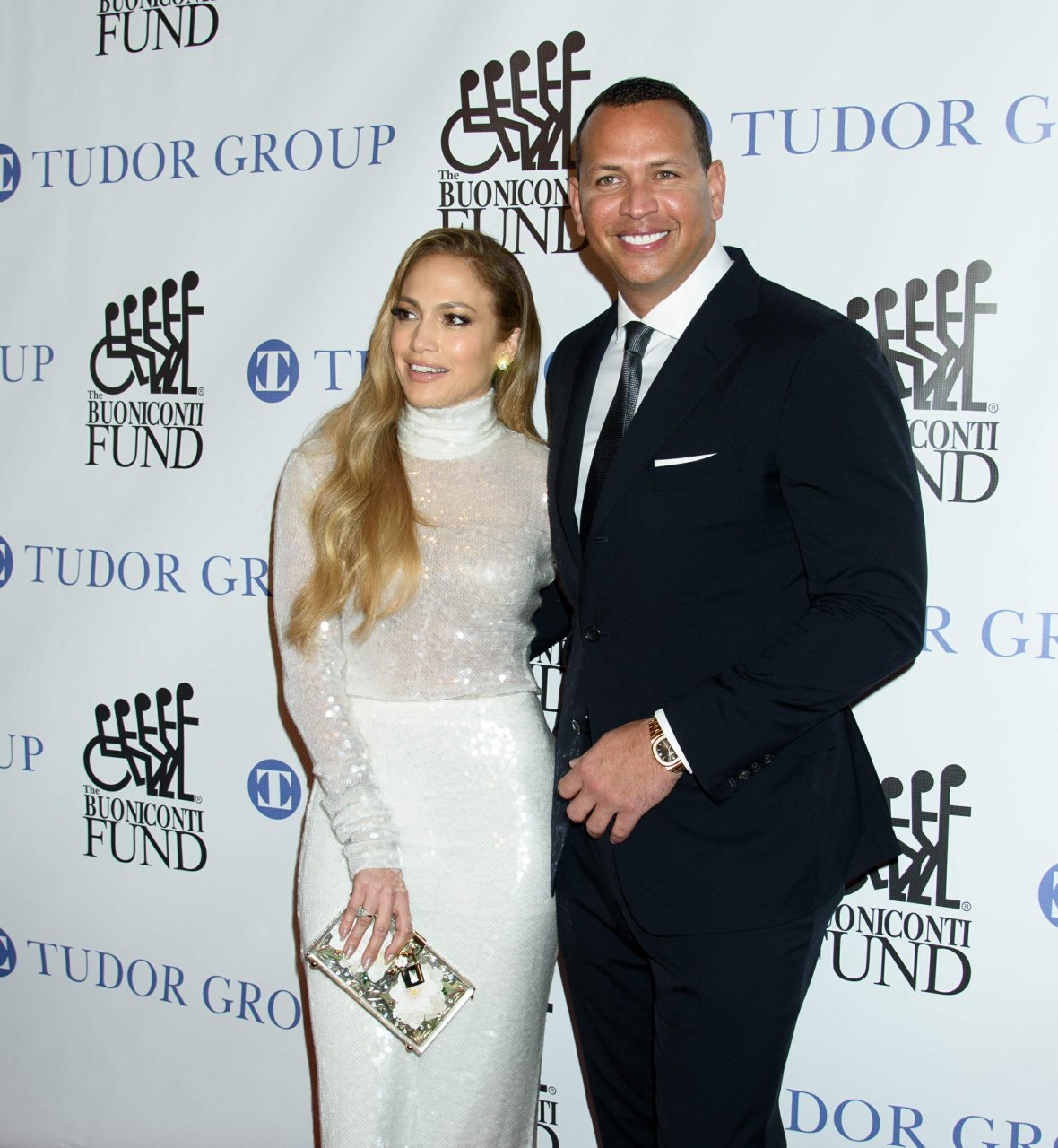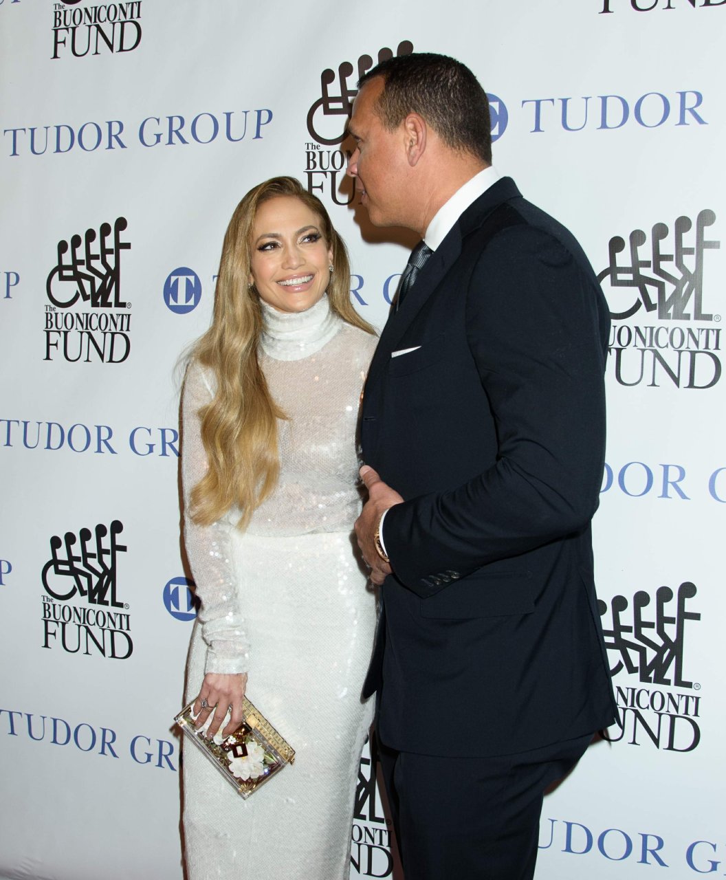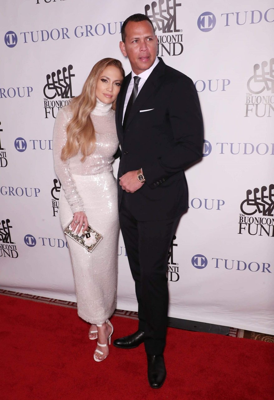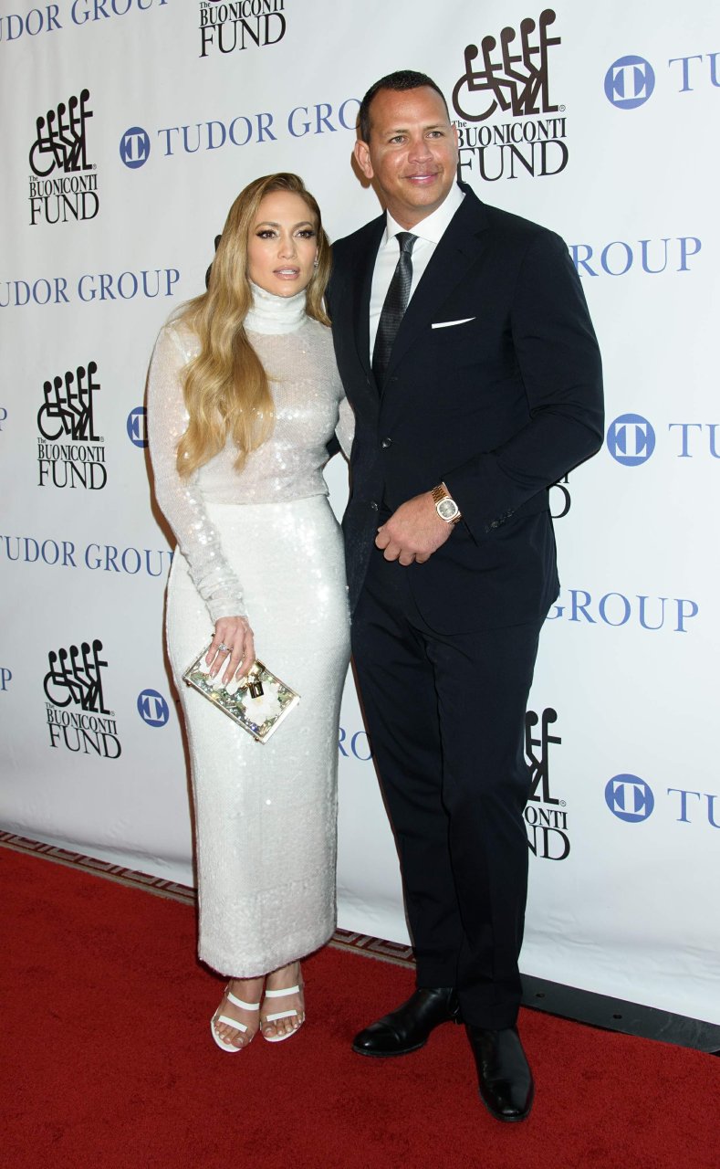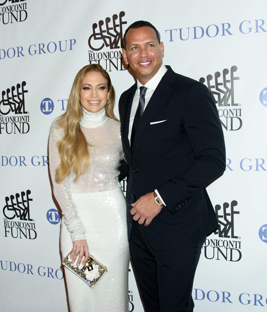 Superstar Jennifer Lopez (49) posa no tapete vermelho com o namorado Alex Rodriguez no 33º Jantar Anual dos Grandes Ícones do Esporte em Nova York, 24/09/2018.