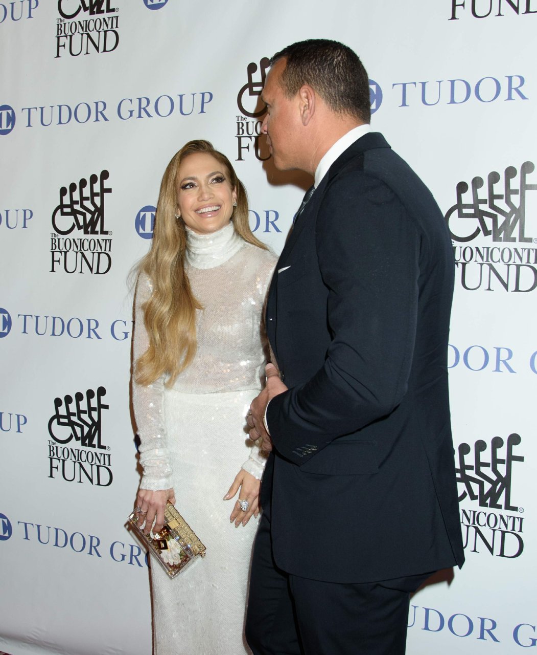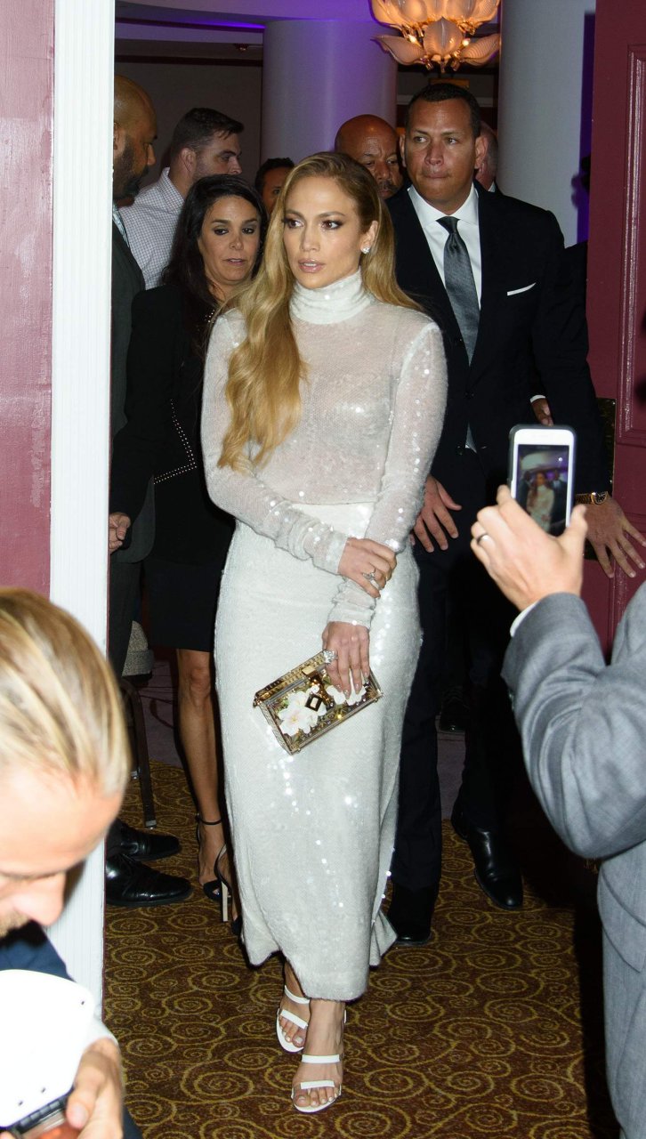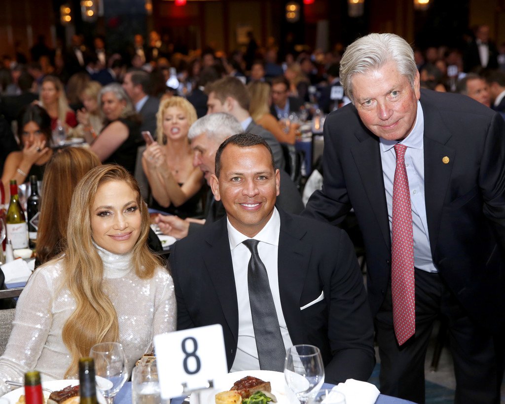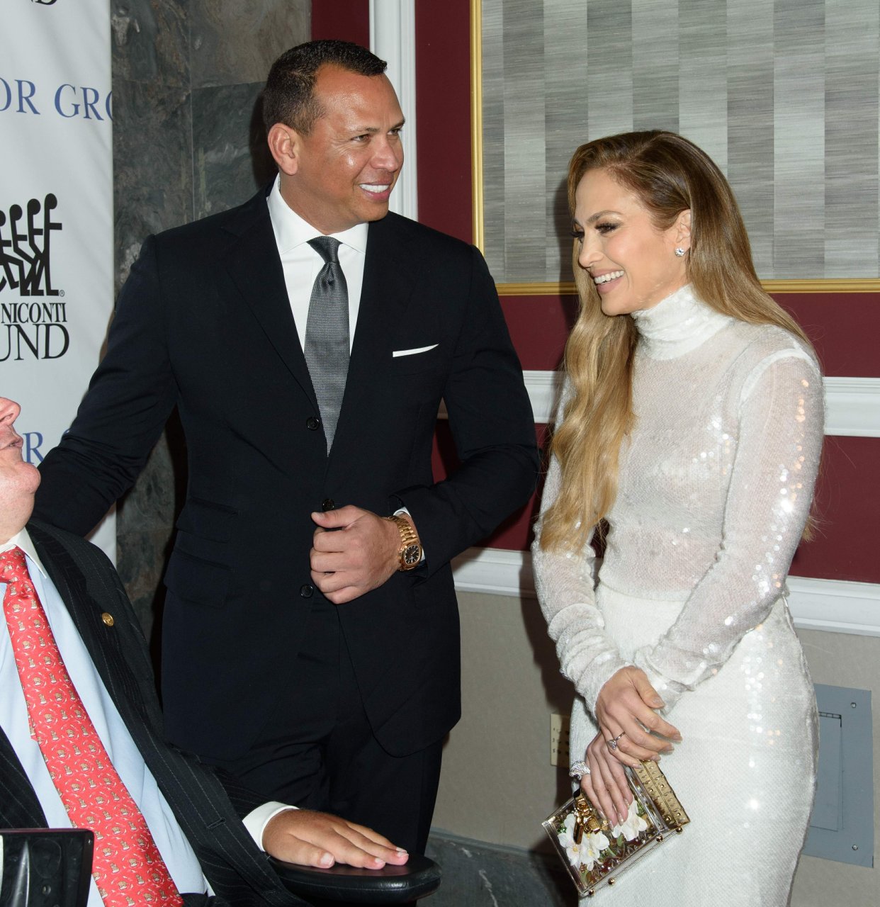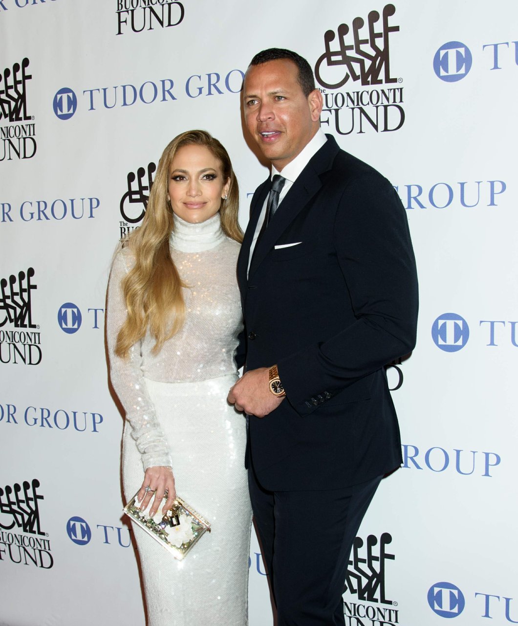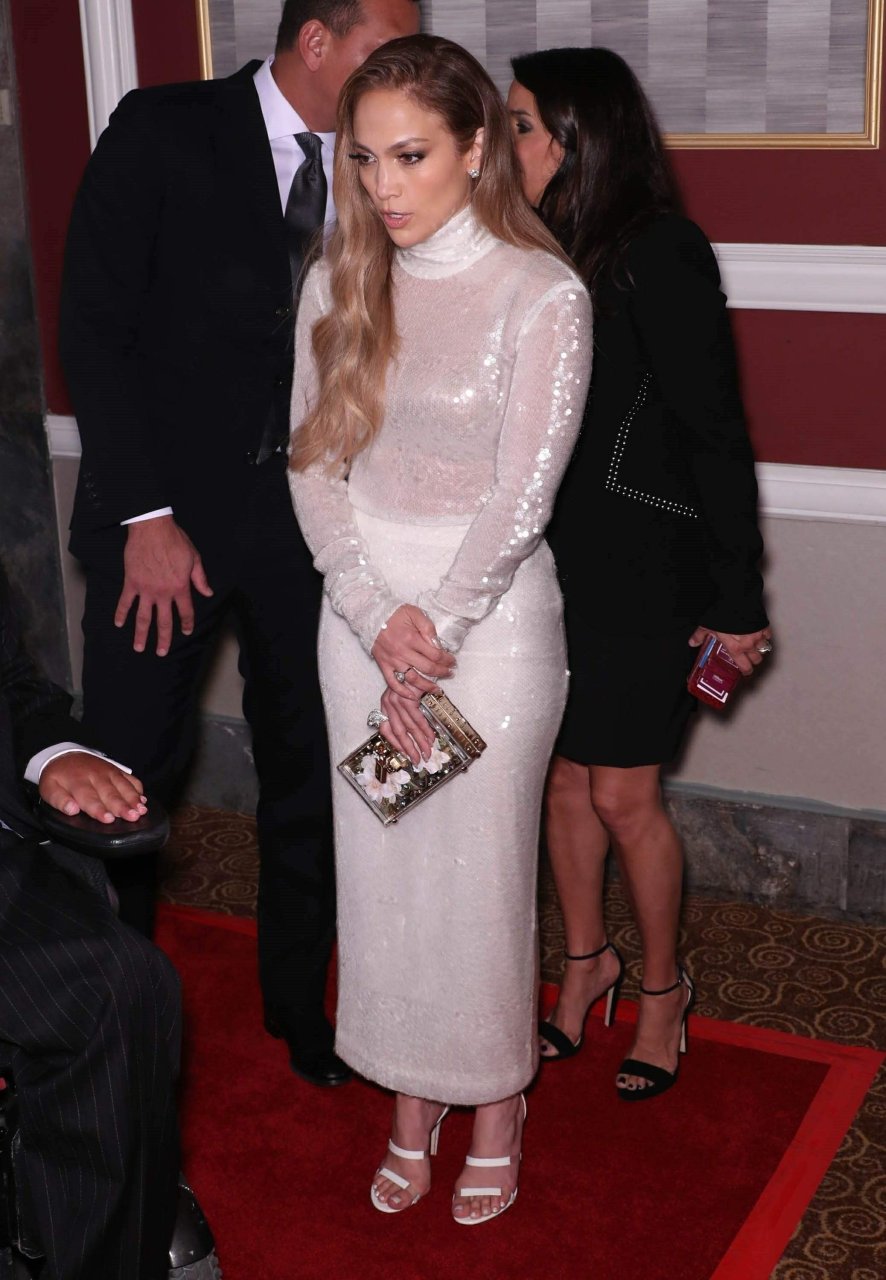 Superstar Jennifer Lopez (49) posa no tapete vermelho com o namorado Alex Rodriguez no 33º Jantar Anual dos Grandes Ícones do Esporte em Nova York, 24/09/2018.
