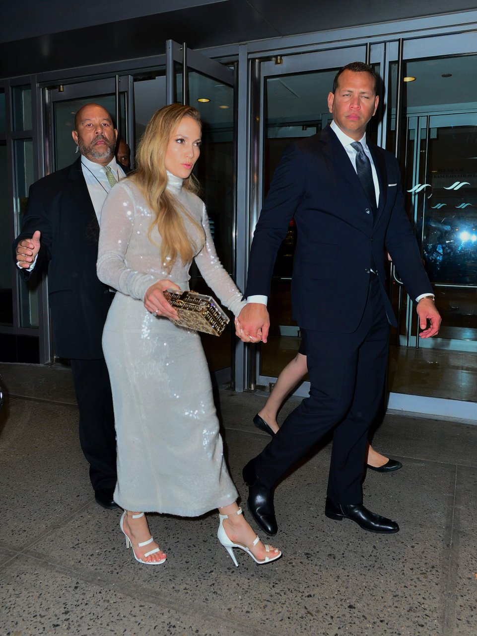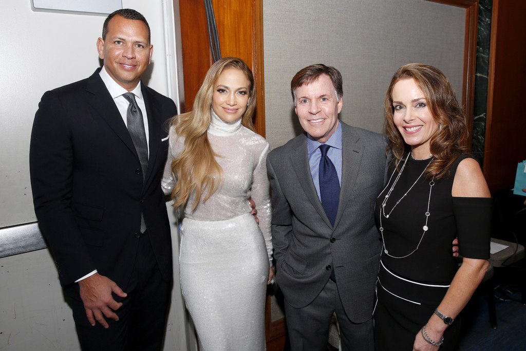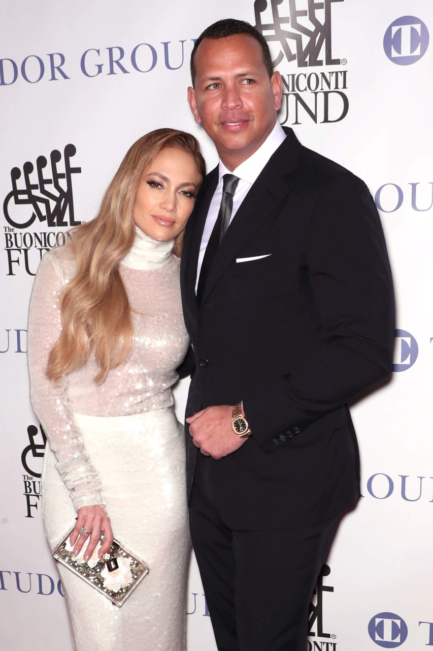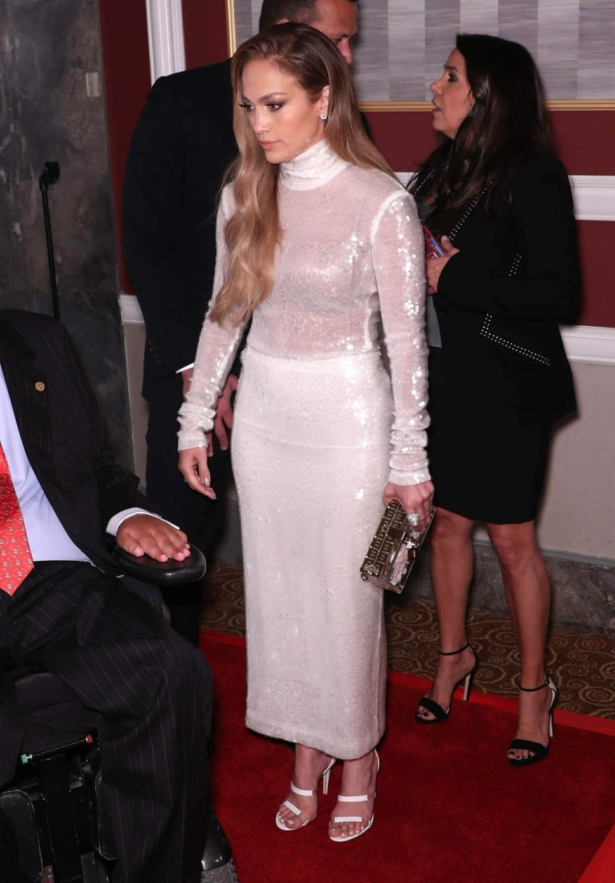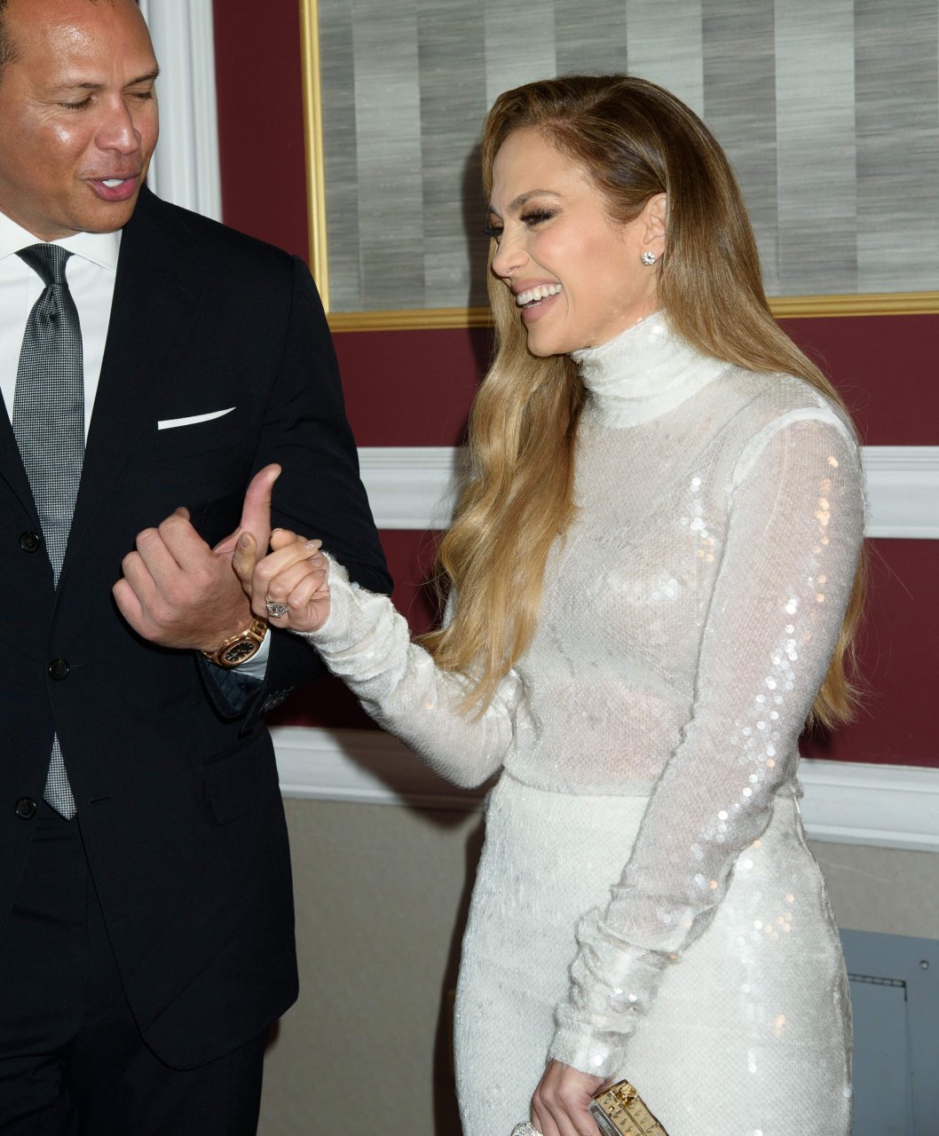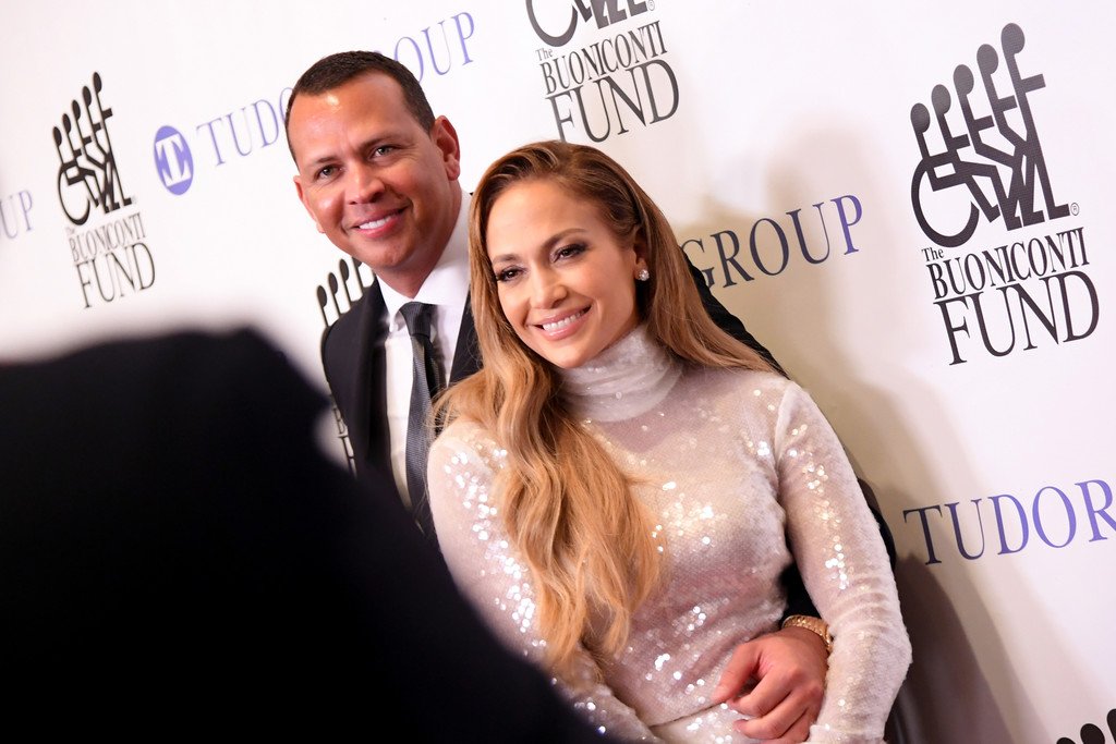 Superstar Jennifer Lopez (49) posa no tapete vermelho com o namorado Alex Rodriguez no 33º Jantar Anual dos Grandes Ícones do Esporte em Nova York, 24/09/2018.