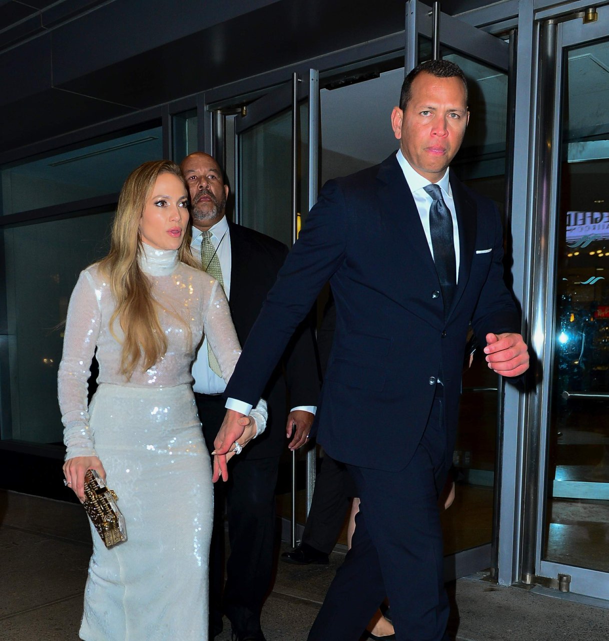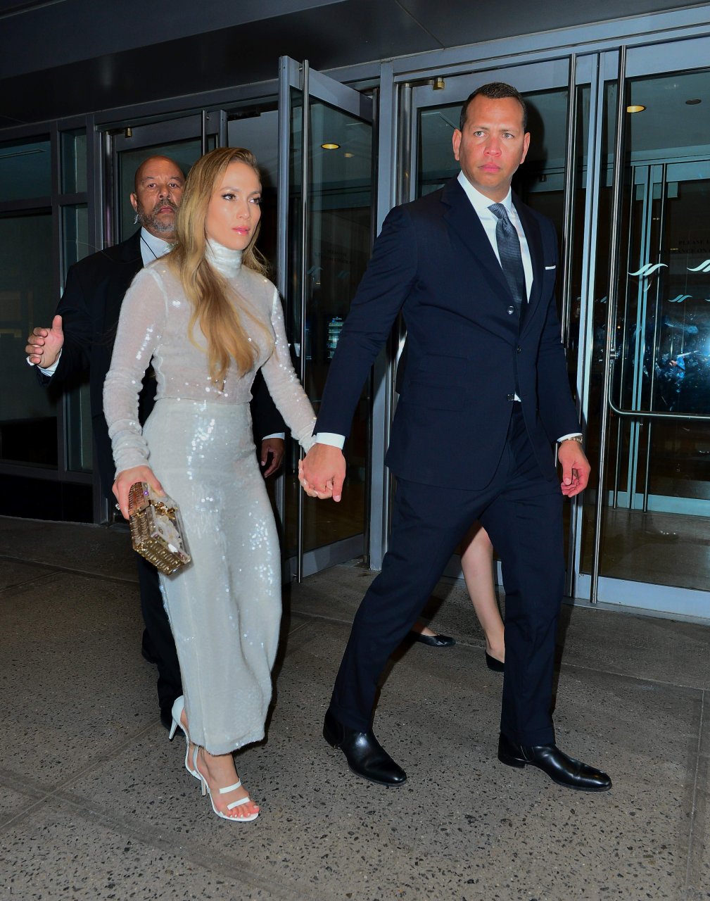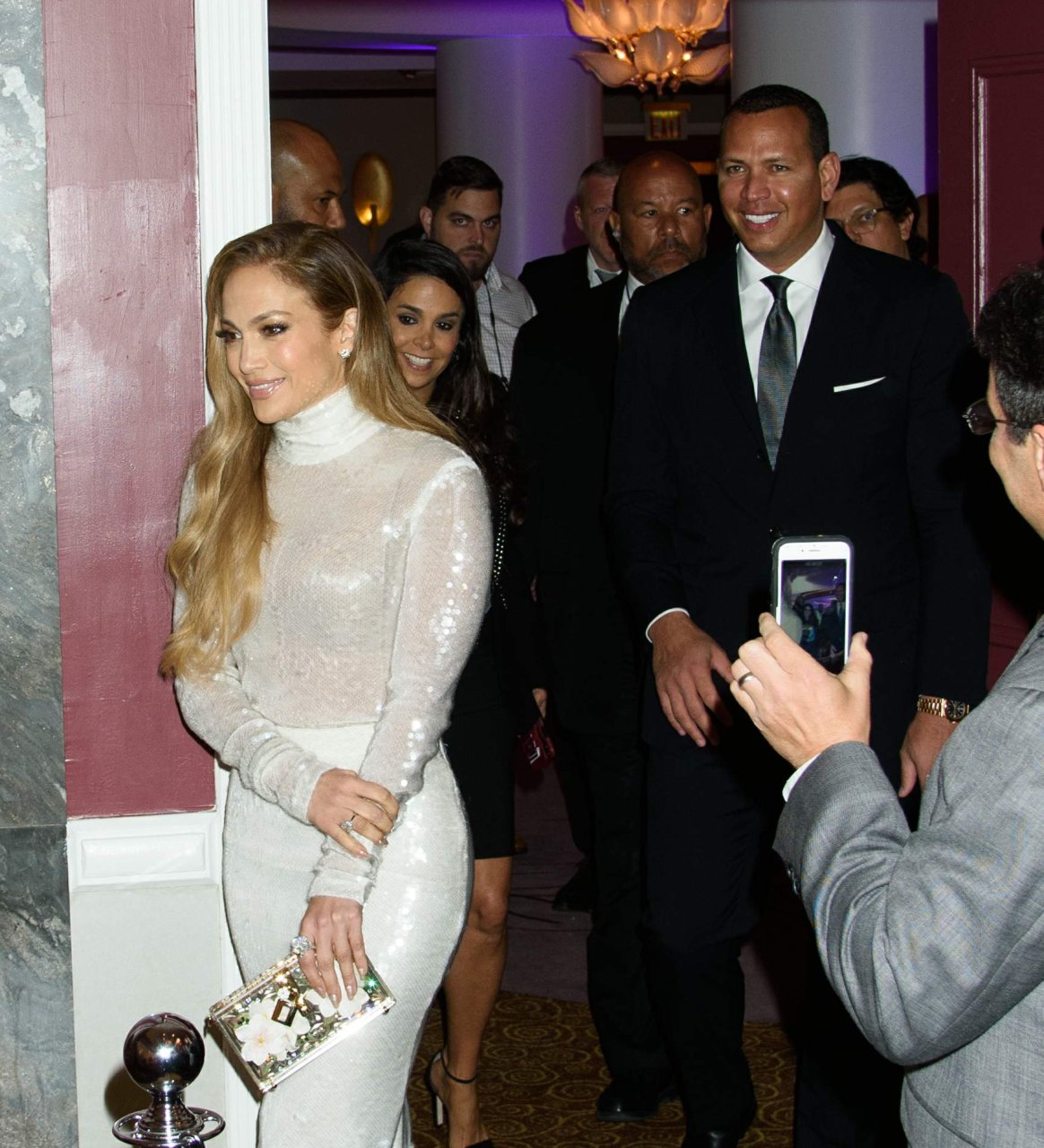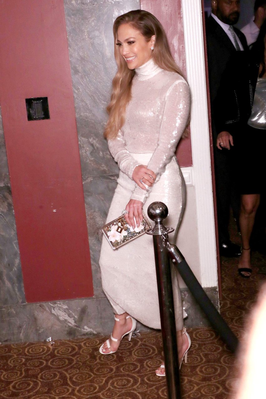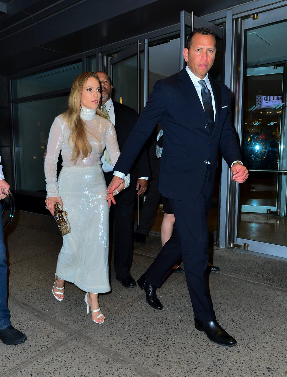 Superstar Jennifer Lopez (49) posa no tapete vermelho com o namorado Alex Rodriguez no 33º Jantar Anual dos Grandes Ícones do Esporte em Nova York, 24/09/2018.