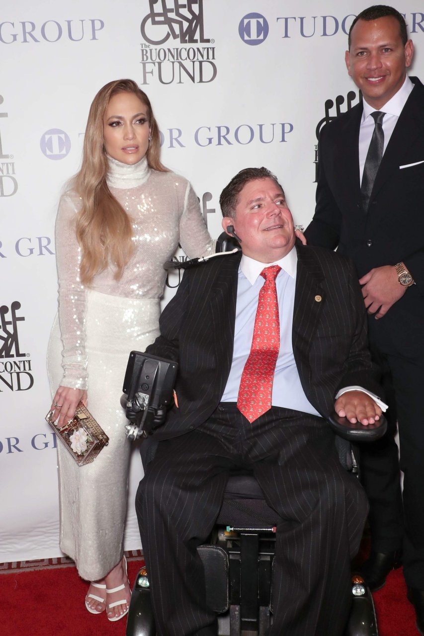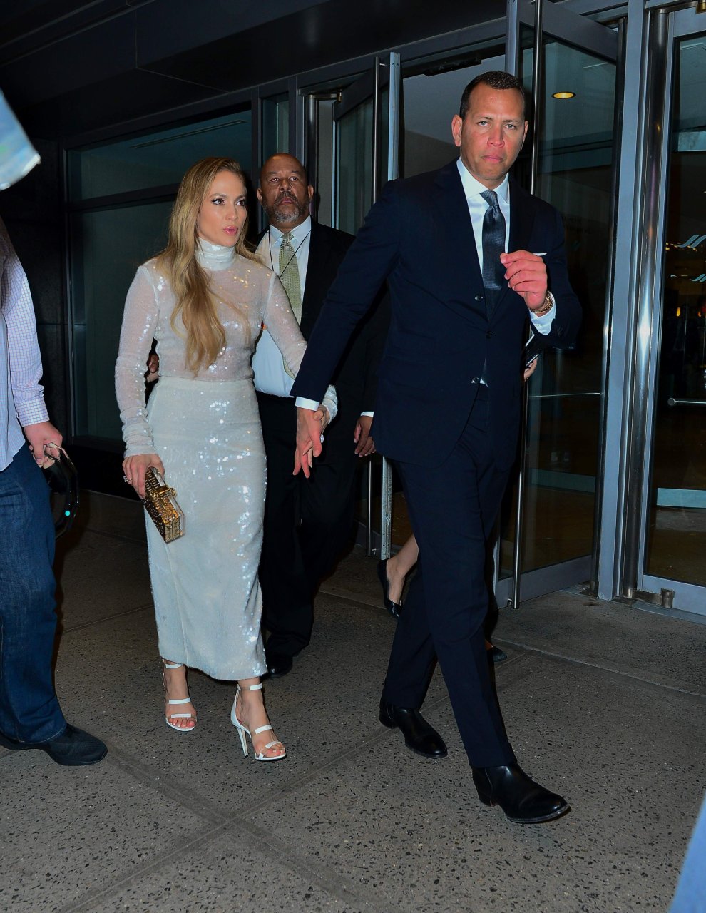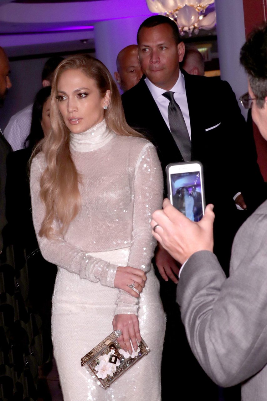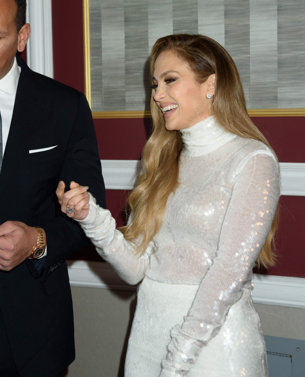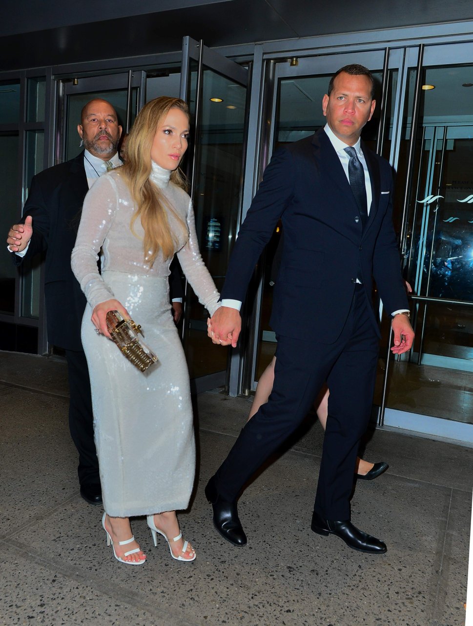 Superstar Jennifer Lopez (49) posa no tapete vermelho com o namorado Alex Rodriguez no 33º Jantar Anual dos Grandes Ícones do Esporte em Nova York, 24/09/2018.