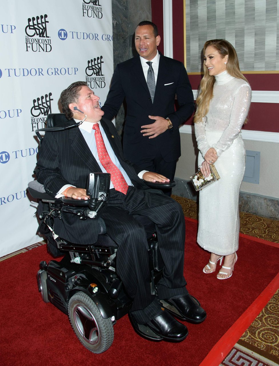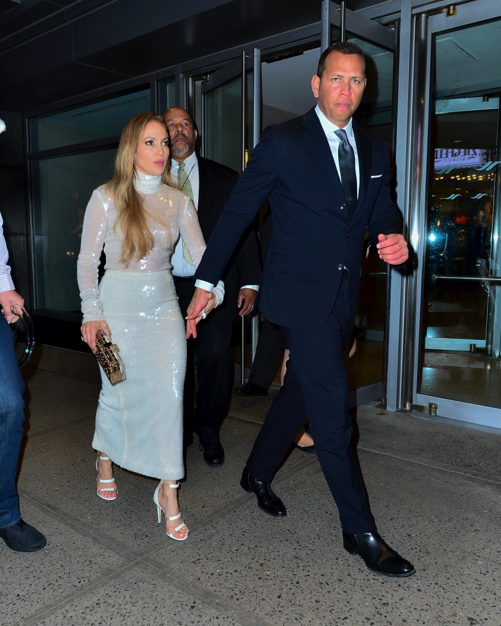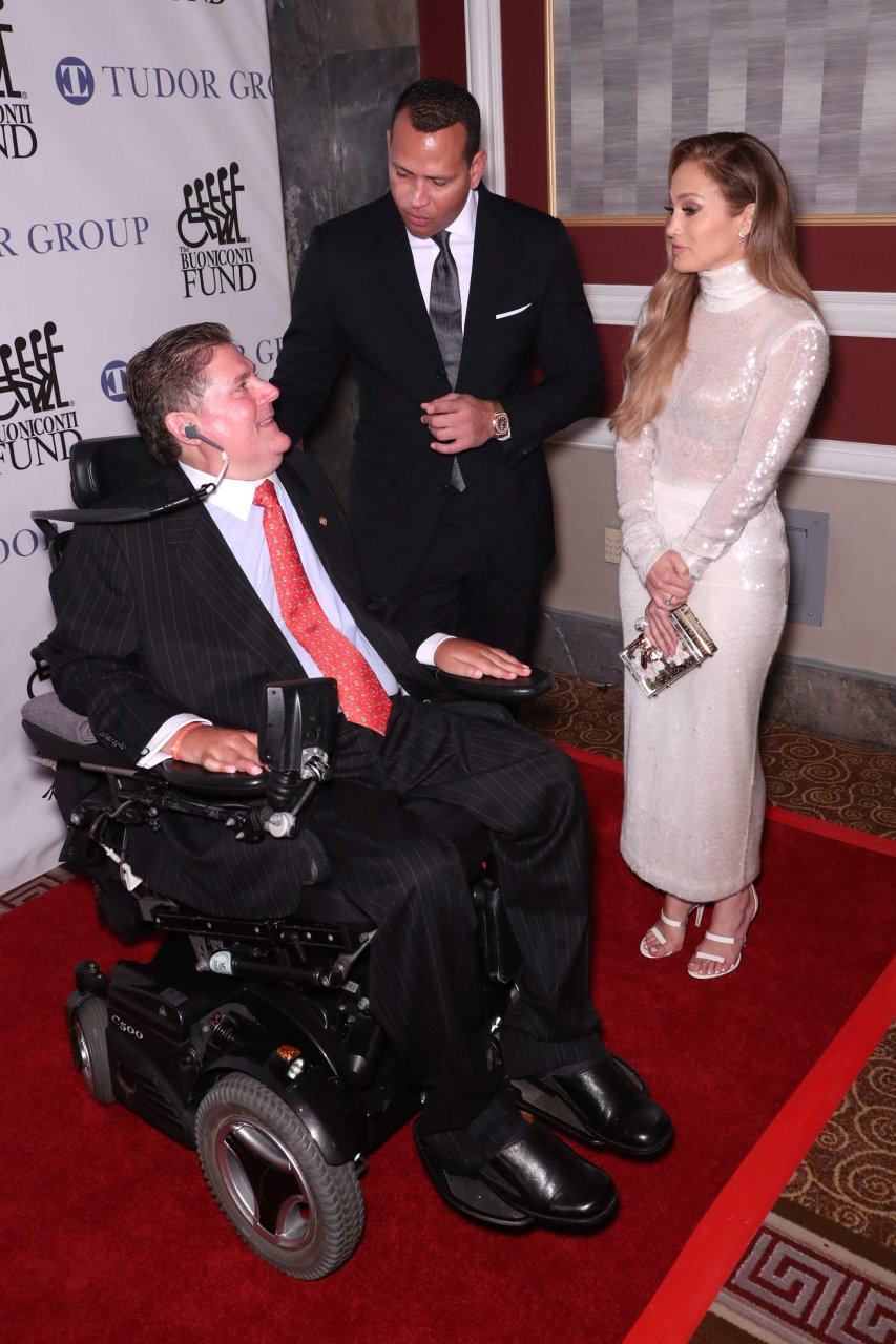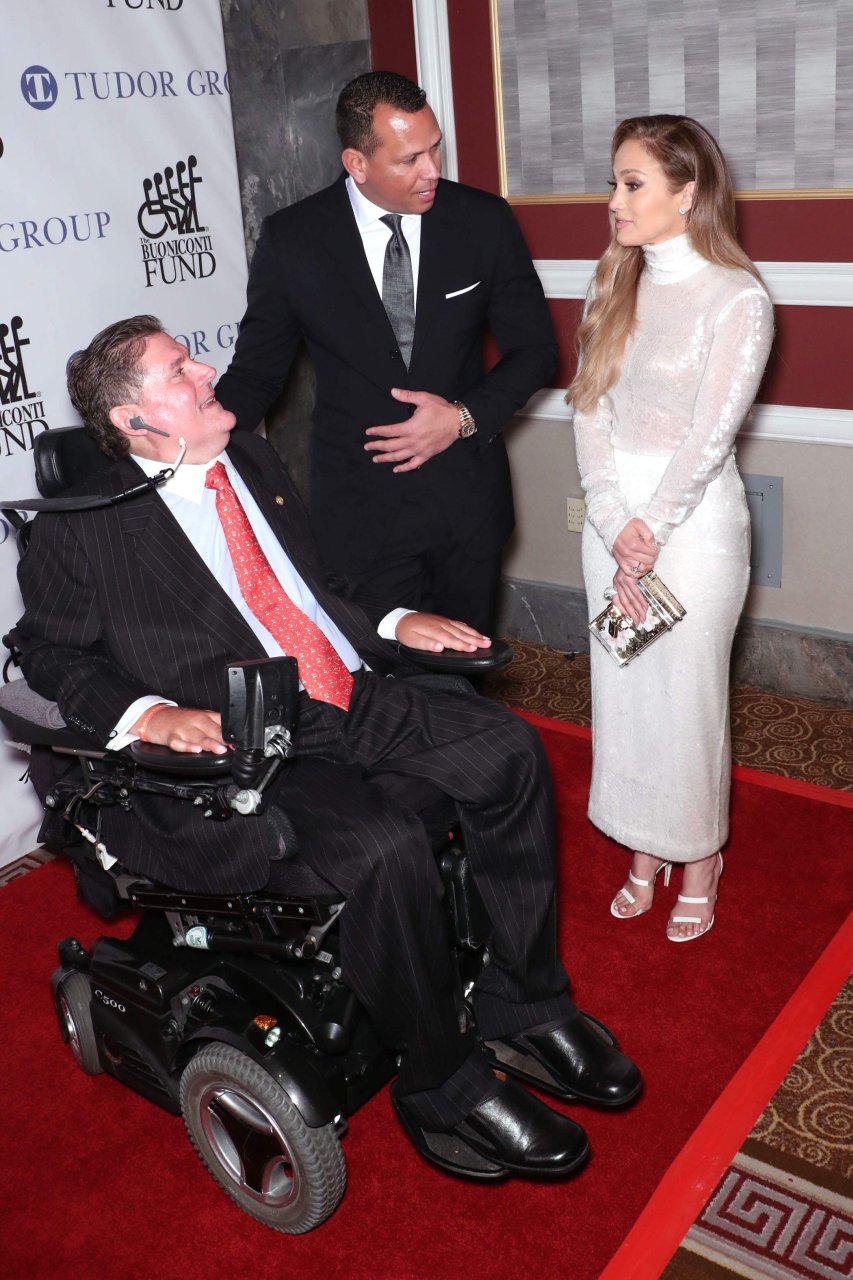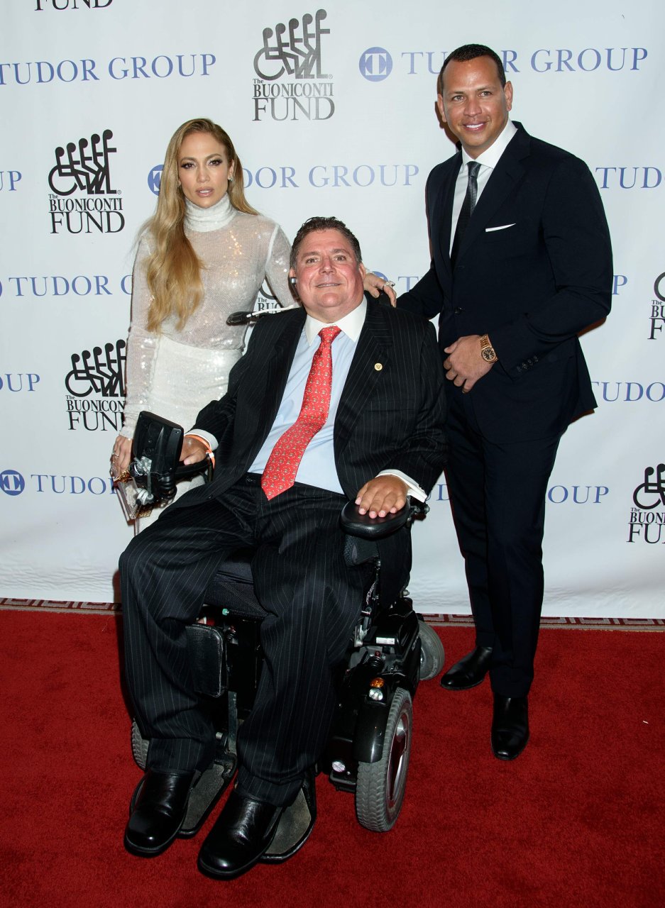 Superstar Jennifer Lopez (49) posa no tapete vermelho com o namorado Alex Rodriguez no 33º Jantar Anual dos Grandes Ícones do Esporte em Nova York, 24/09/2018.