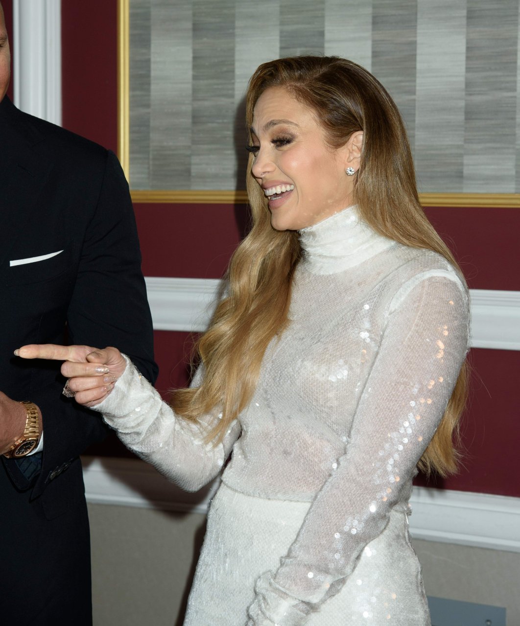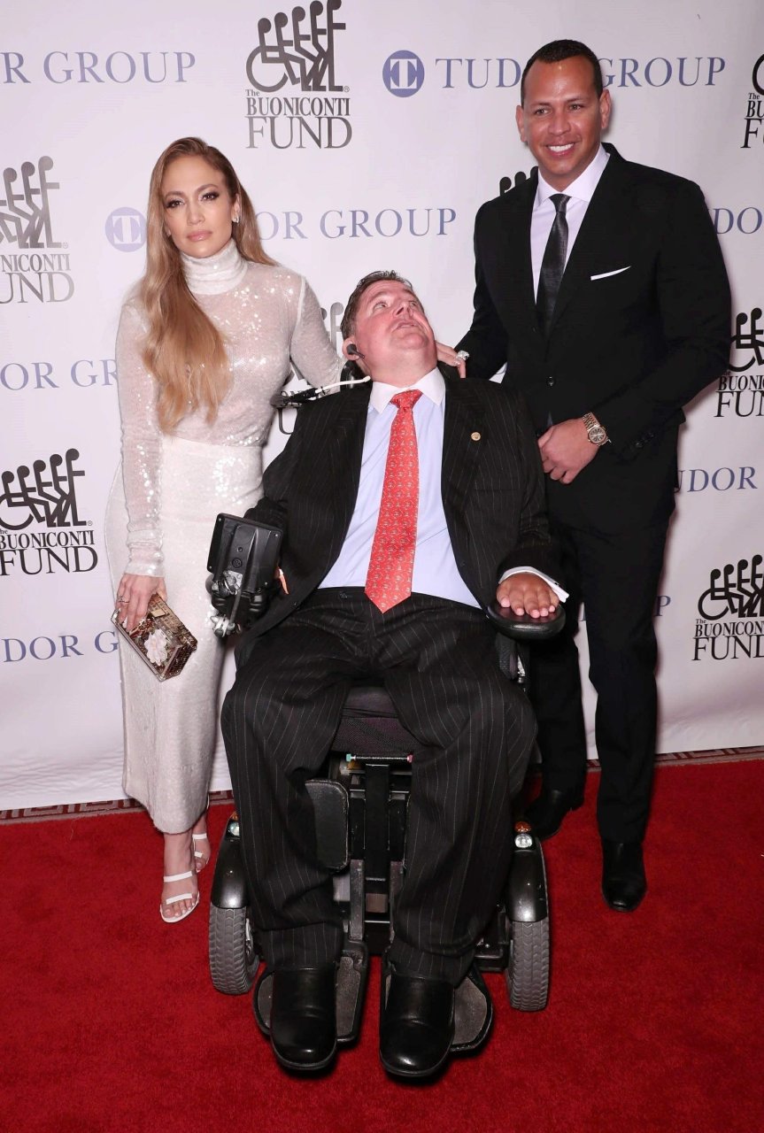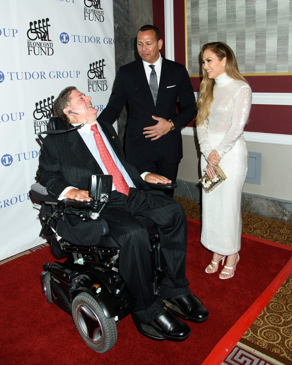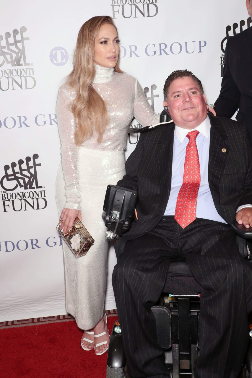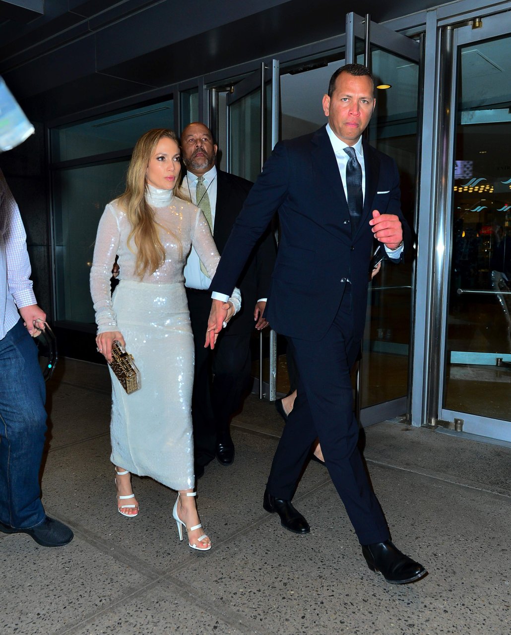 Superstar Jennifer Lopez (49) posa no tapete vermelho com o namorado Alex Rodriguez no 33º Jantar Anual dos Grandes Ícones do Esporte em Nova York, 24/09/2018.