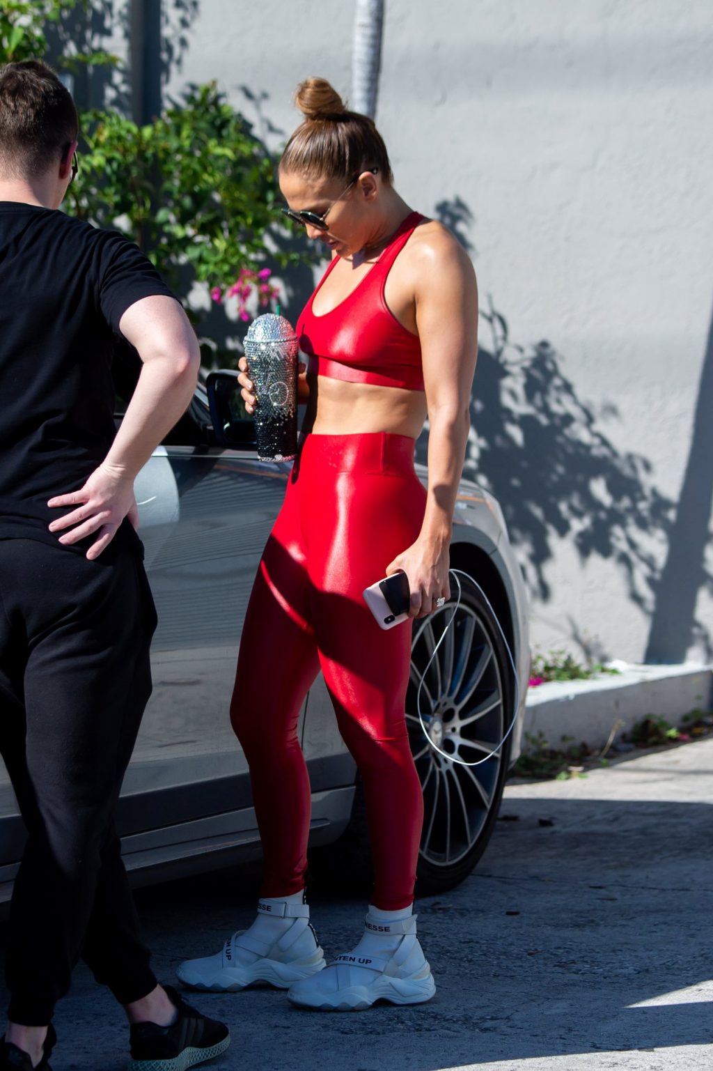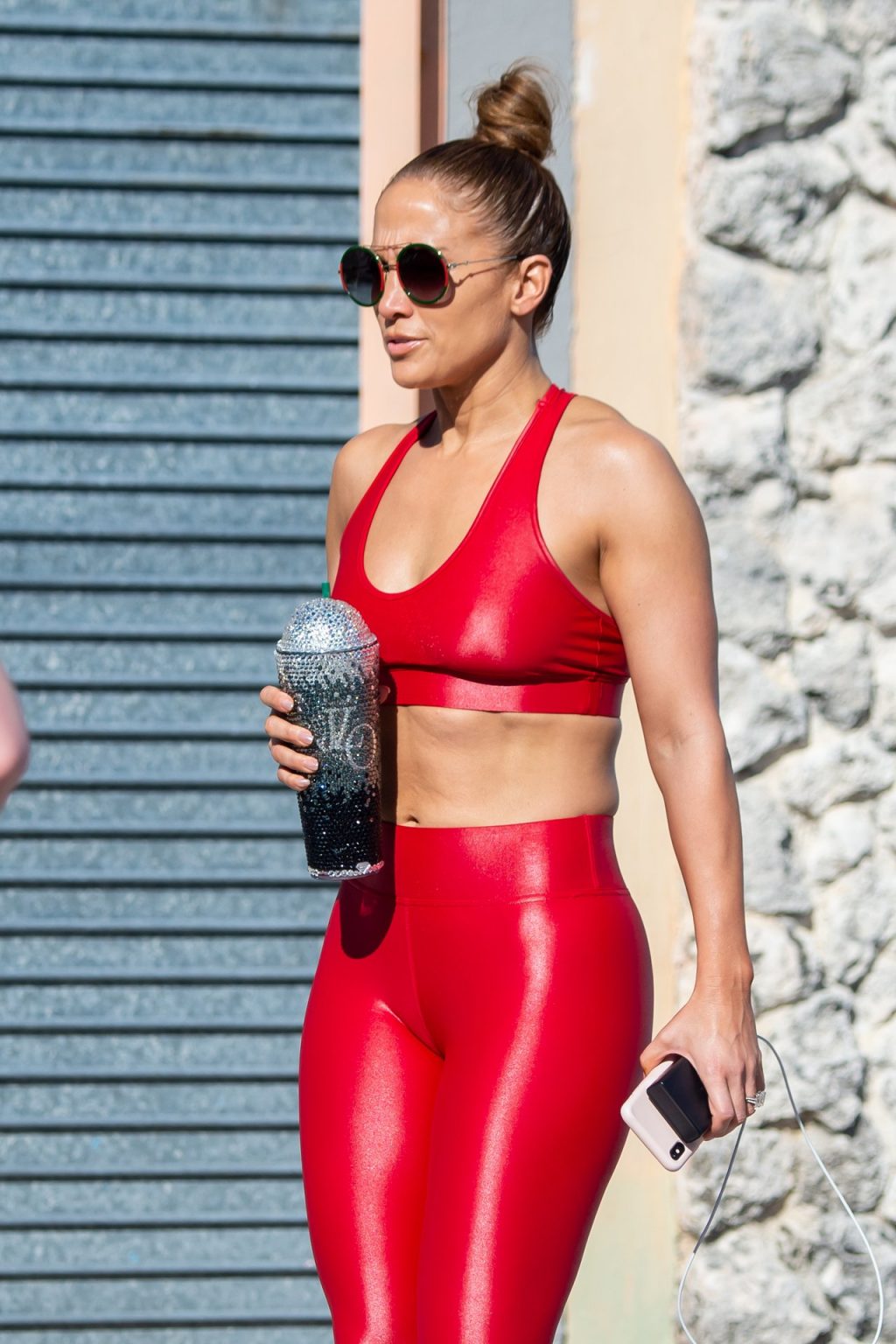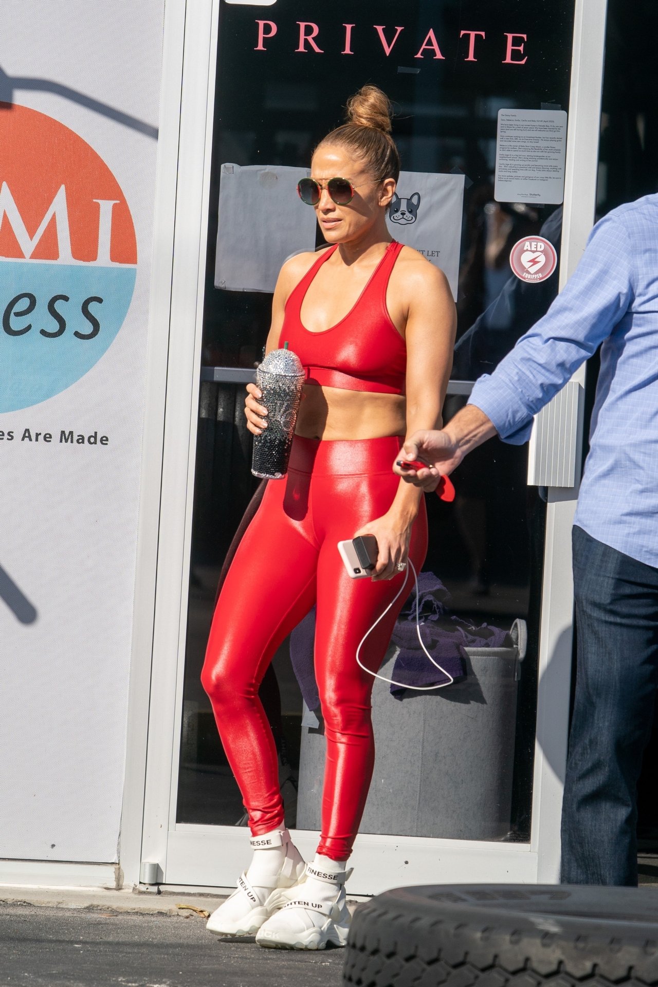 Jennifer Lopez foi vista saindo da academia com A-Rod na véspera de Natal em Miami, 24/12/2019. Jlo está ótima em um conjunto especial vermelho combinando para o Natal enquanto sai da academia e se dirige ao carro.