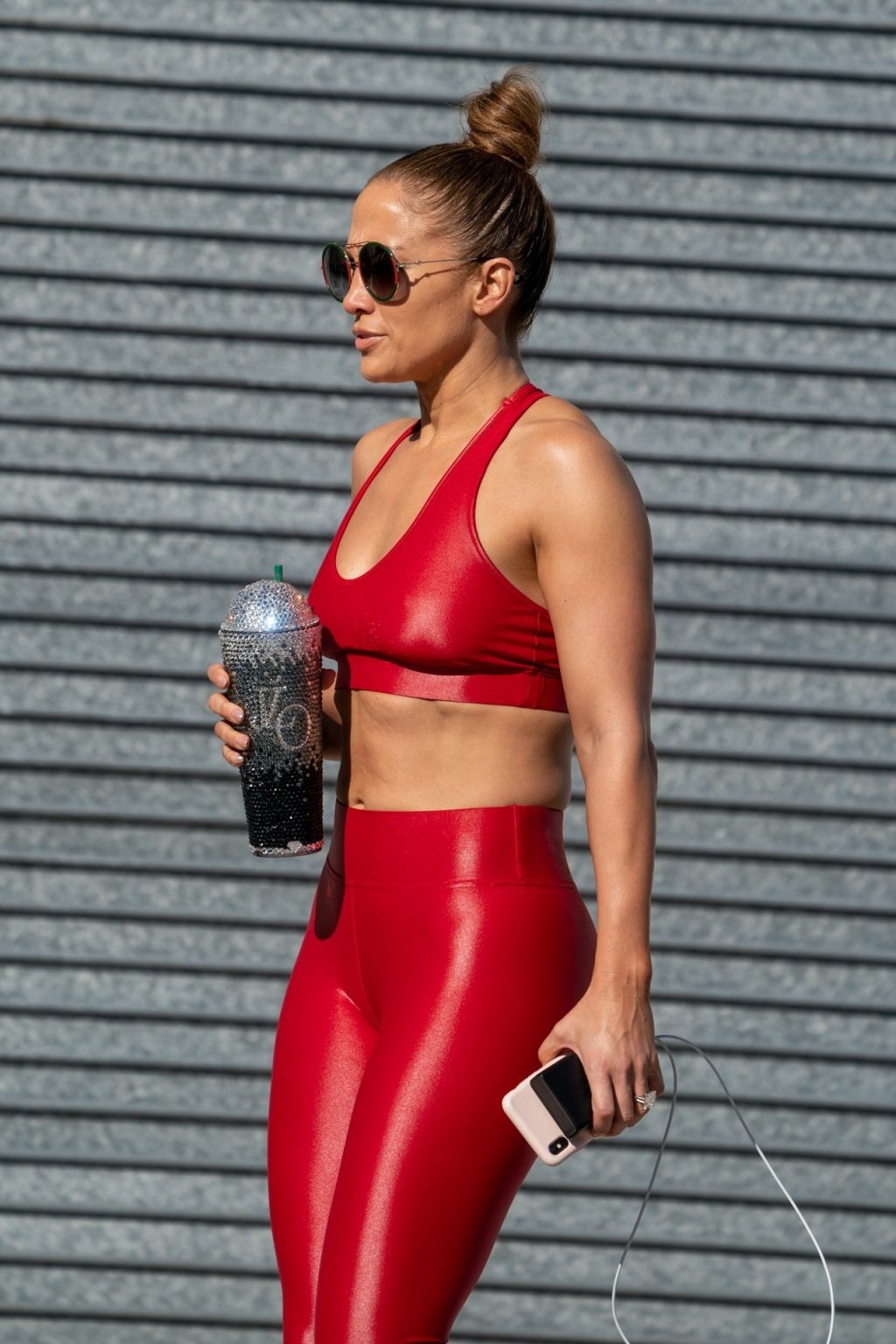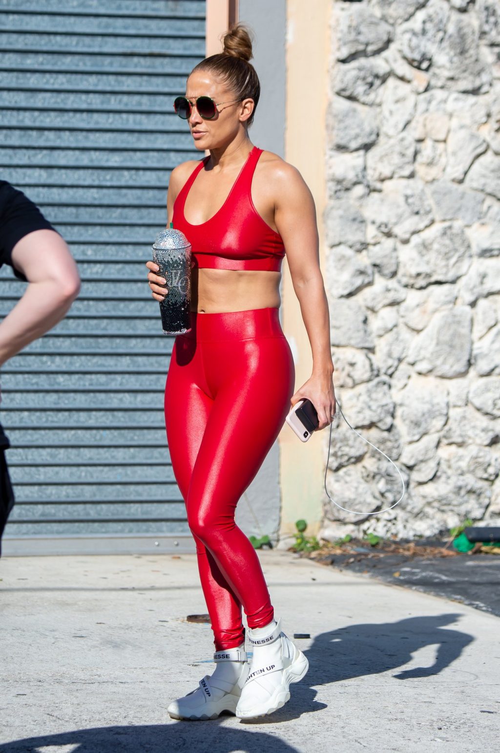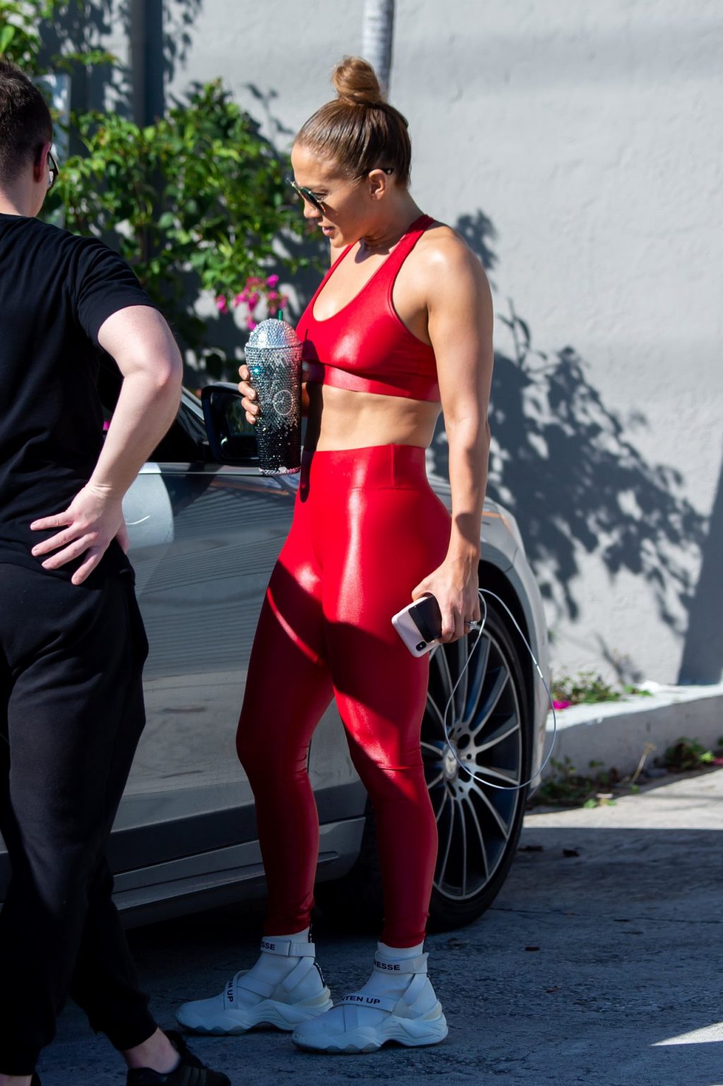 Jennifer Lopez foi vista saindo da academia com A-Rod na véspera de Natal em Miami, 24/12/2019. Jlo está ótima em um conjunto especial vermelho combinando para o Natal enquanto sai da academia e se dirige ao carro.