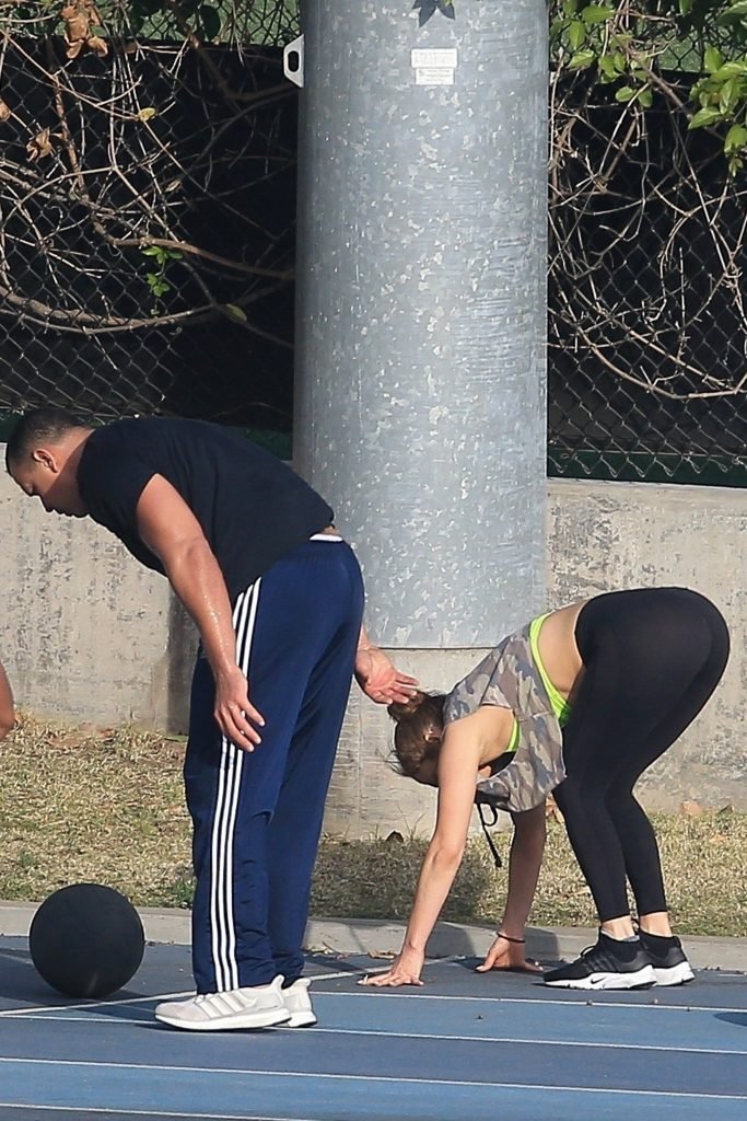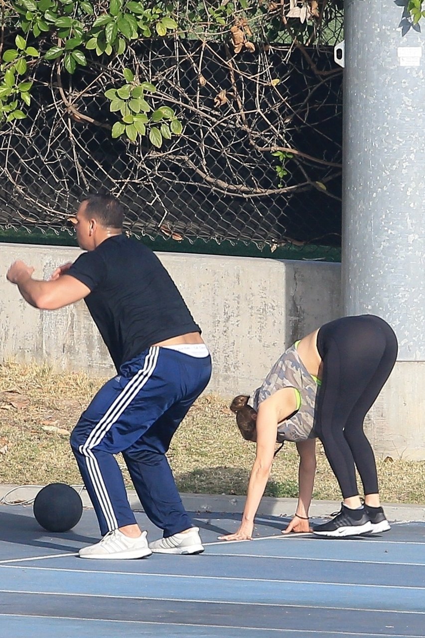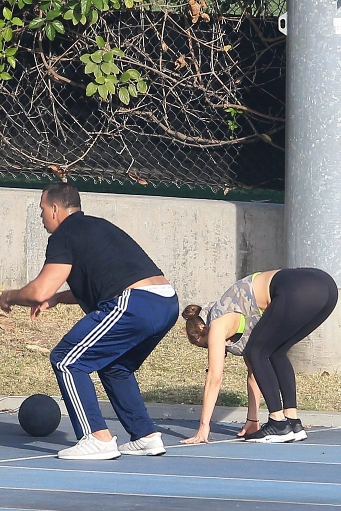 ennifer Lopez e seu namorado Alex Rodriguez se exercitam juntos em Los Angeles, 31/12/2017. Jennifer Lynn ‘JLo’ López é uma cantora americana, dançarina, atriz (Bye Bye Birdie Live!). Idade – 48.