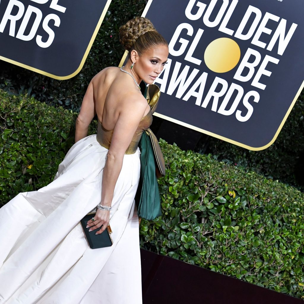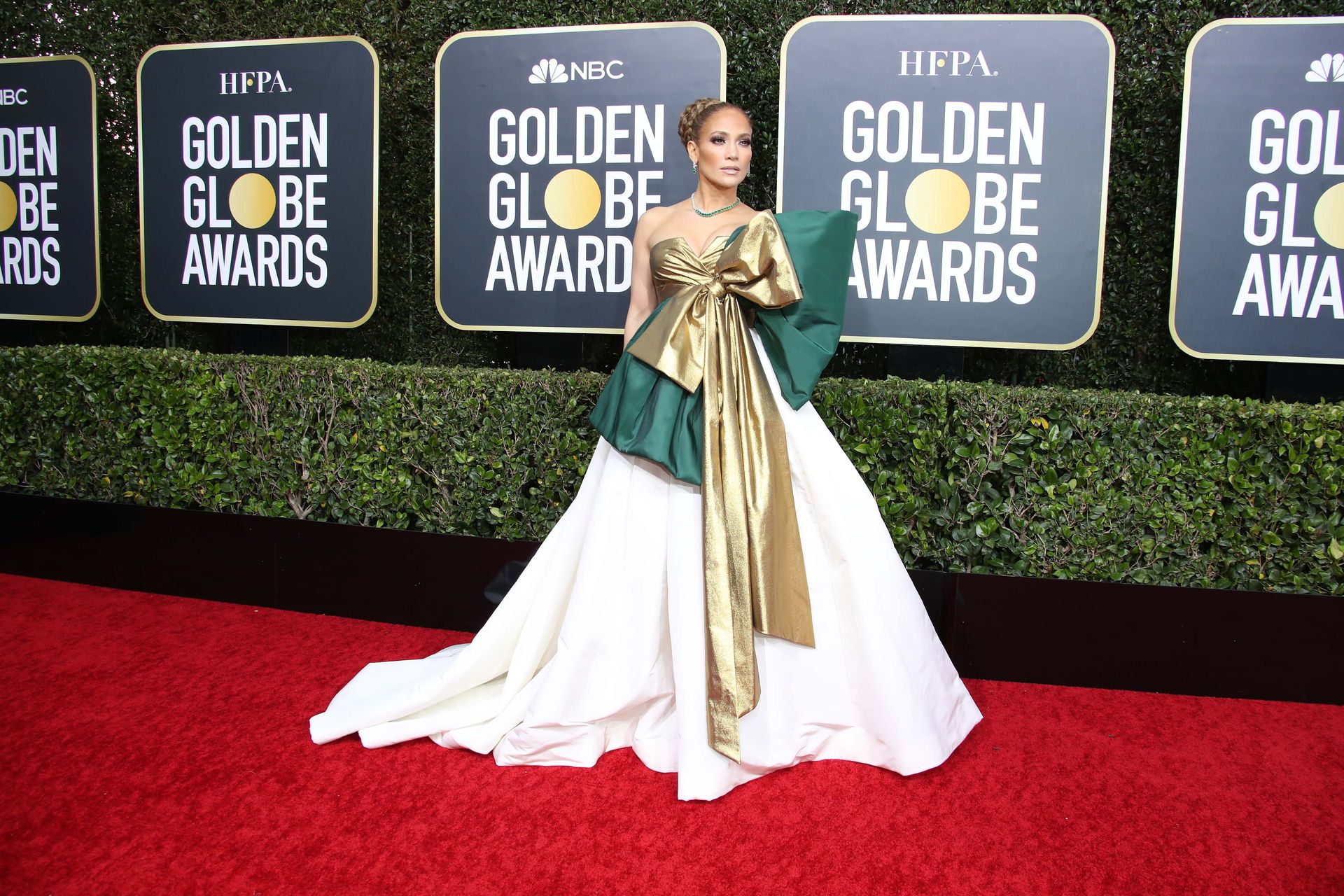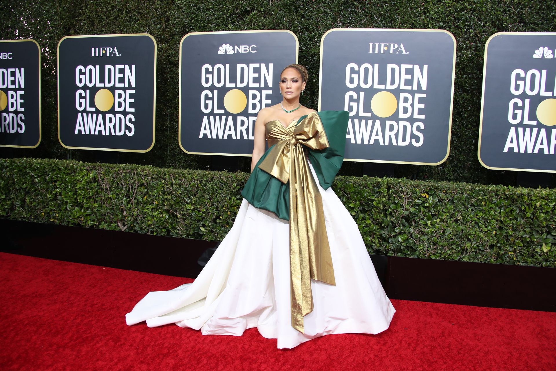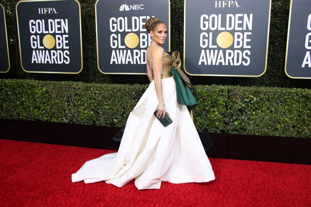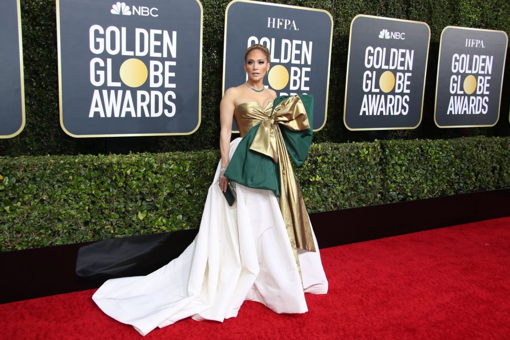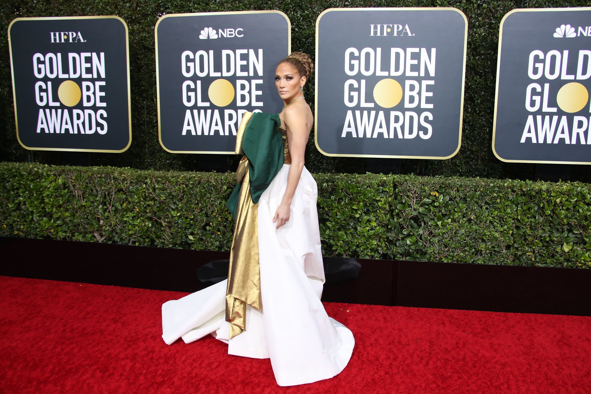 Cantora/atriz Jennifer Lopez chega ao tapete vermelho durante o 77º Prêmio Globo de Ouro Anual no The Beverly Hilton Hotel, 01/05/2020.