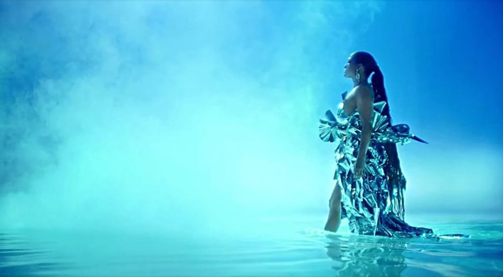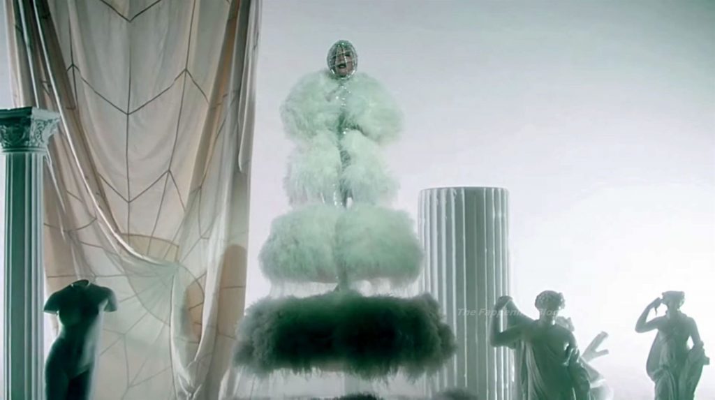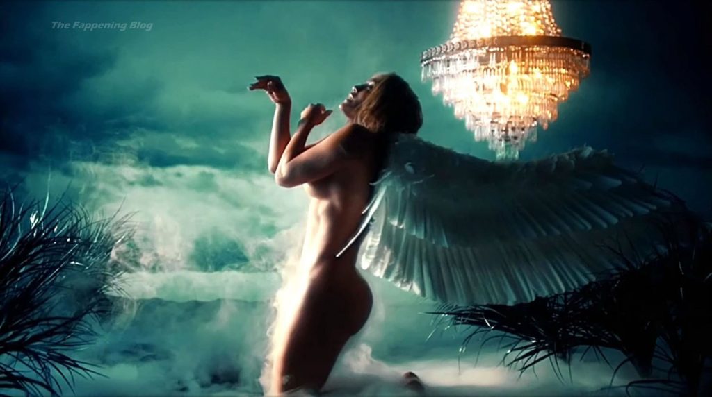 Seus abdominais impressionantes e figura musculosa foram exibidos nas cenas nuas, assim como vários outros looks etéreos que ela usou no vídeo.