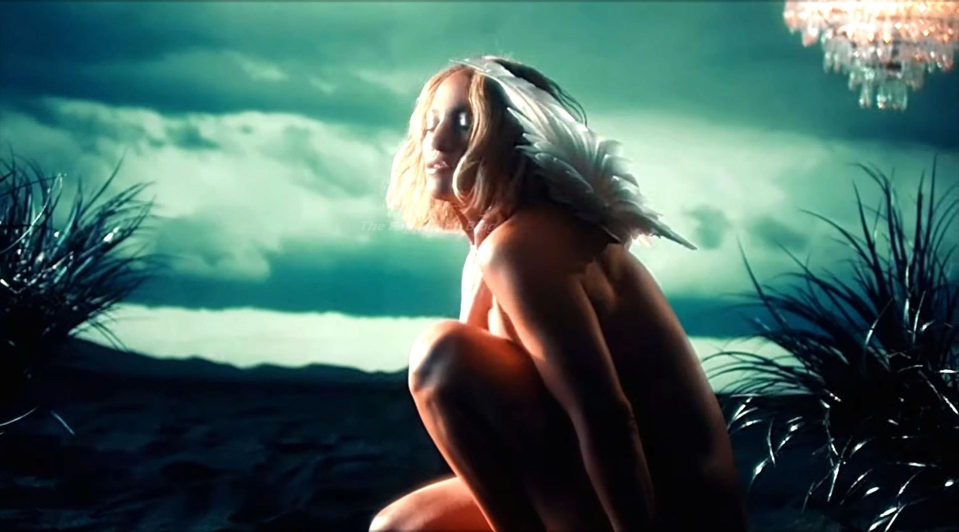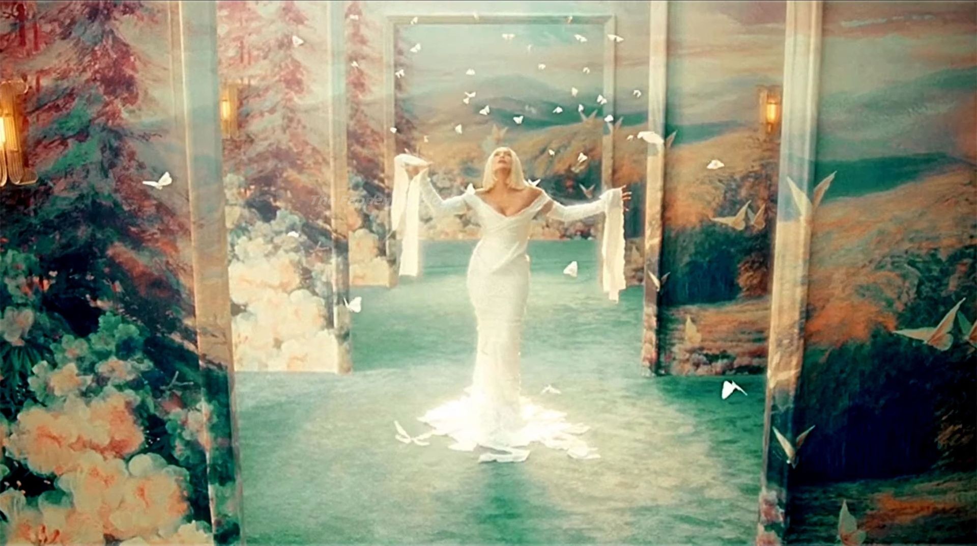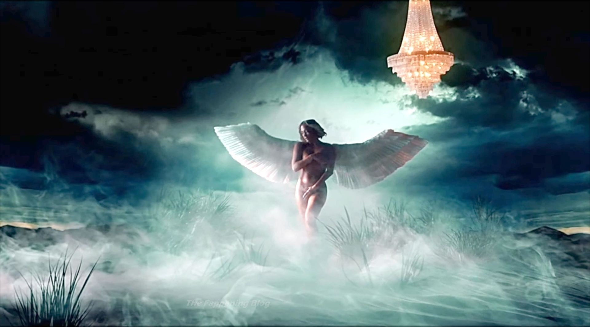 Seus abdominais impressionantes e figura musculosa foram exibidos nas cenas nuas, assim como vários outros looks etéreos que ela usou no vídeo.