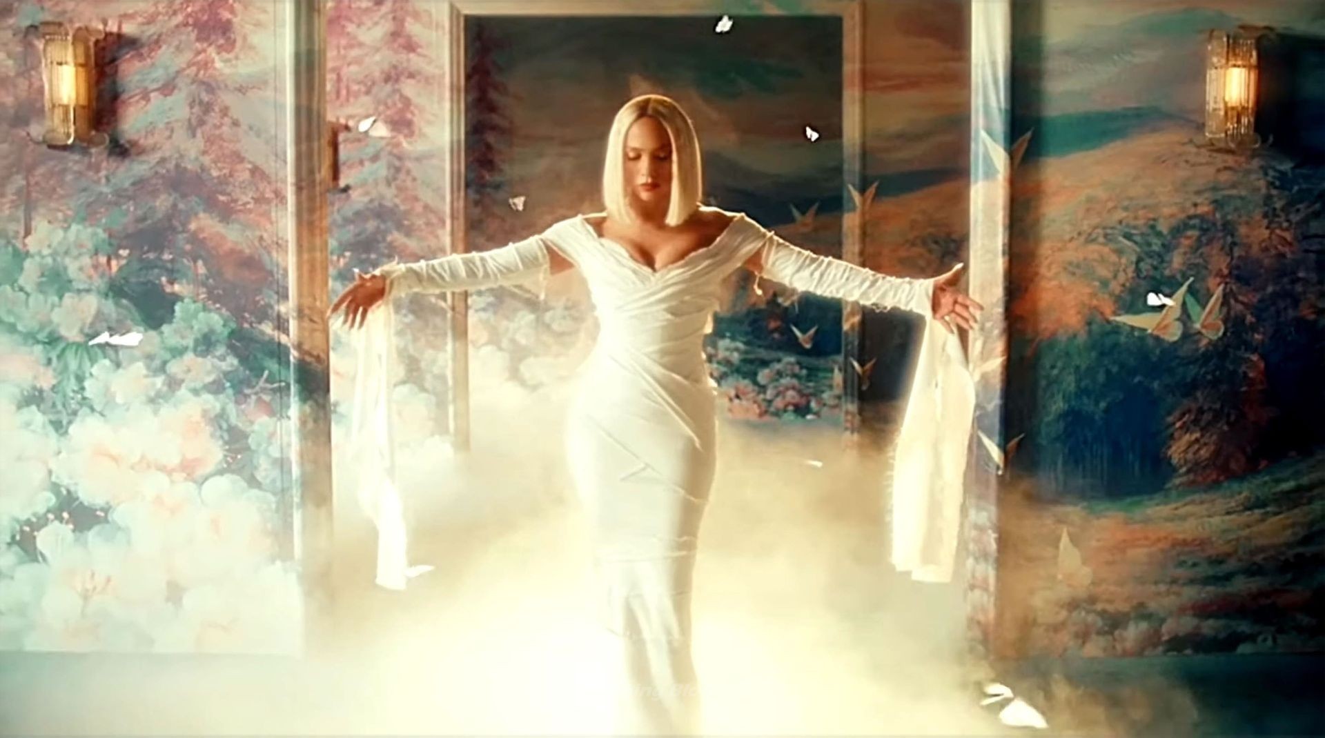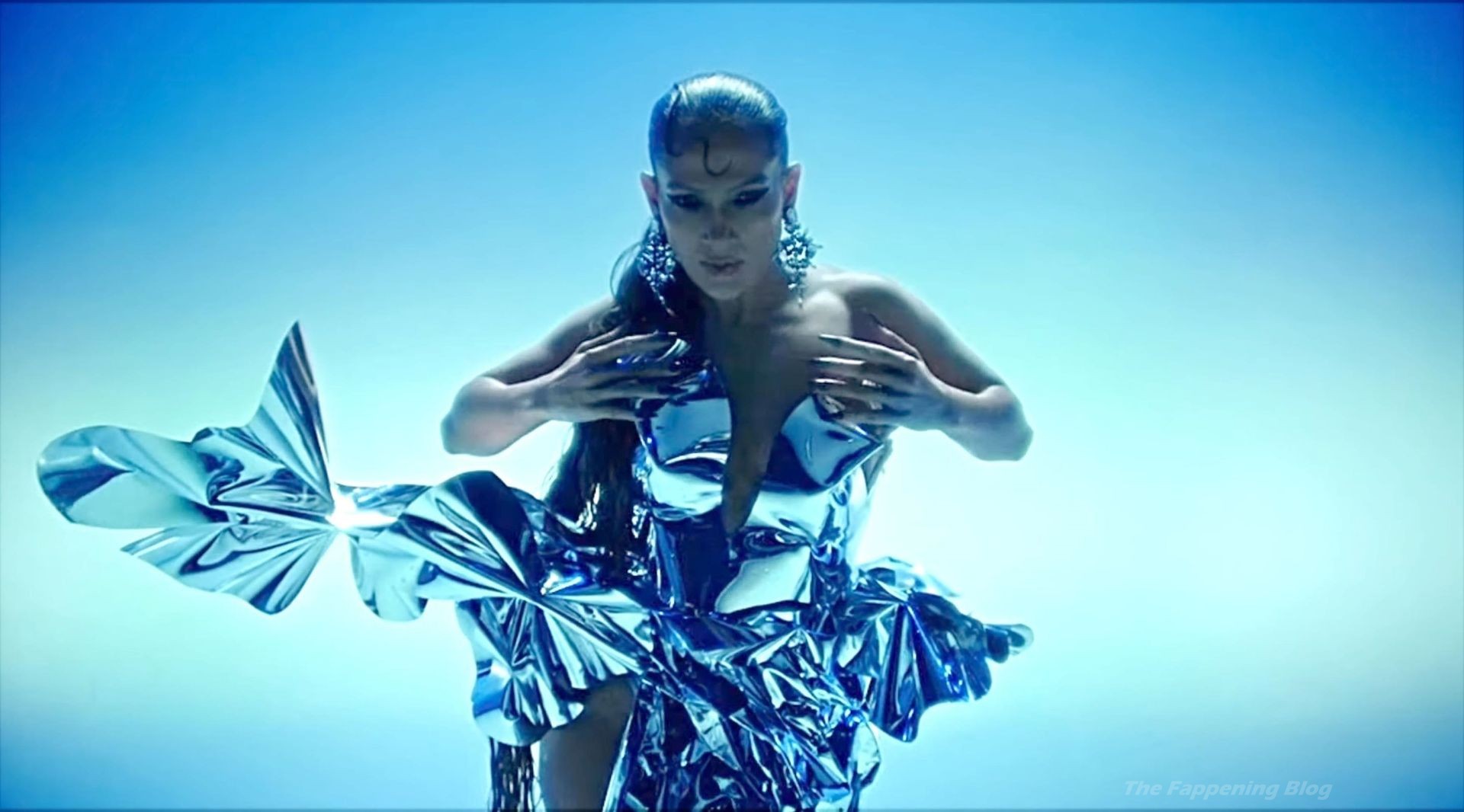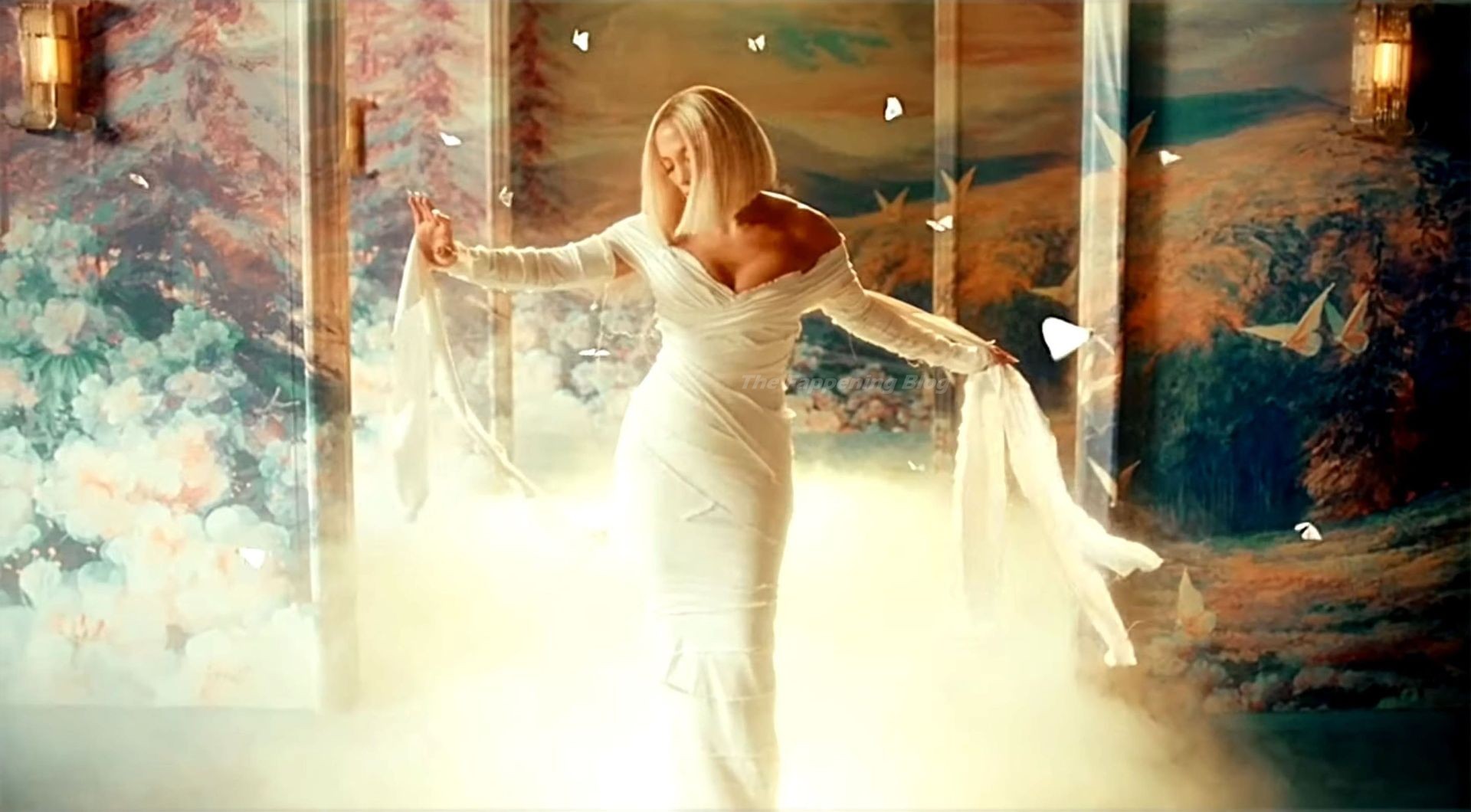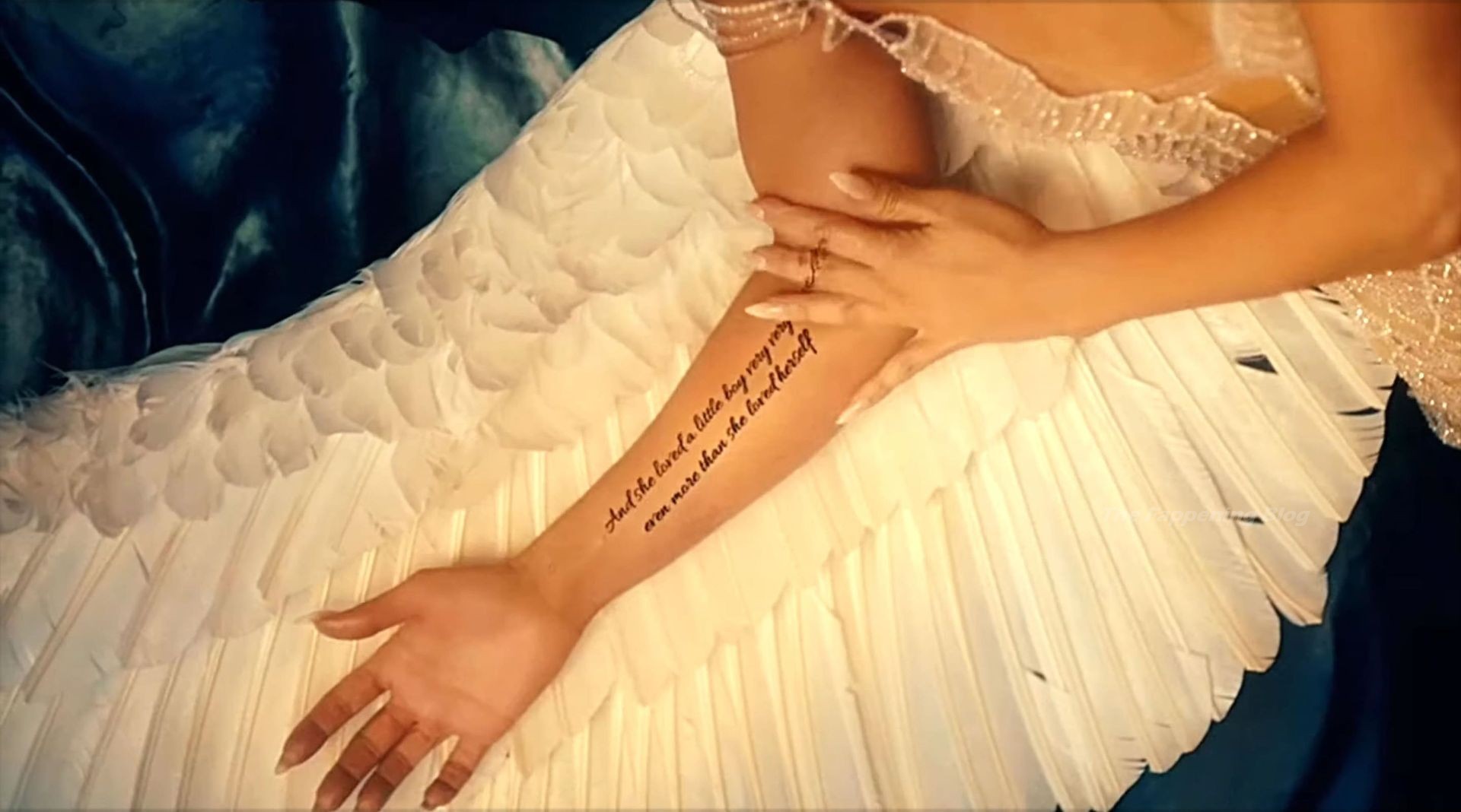 Seus abdominais impressionantes e figura musculosa foram exibidos nas cenas nuas, assim como vários outros looks etéreos que ela usou no vídeo.