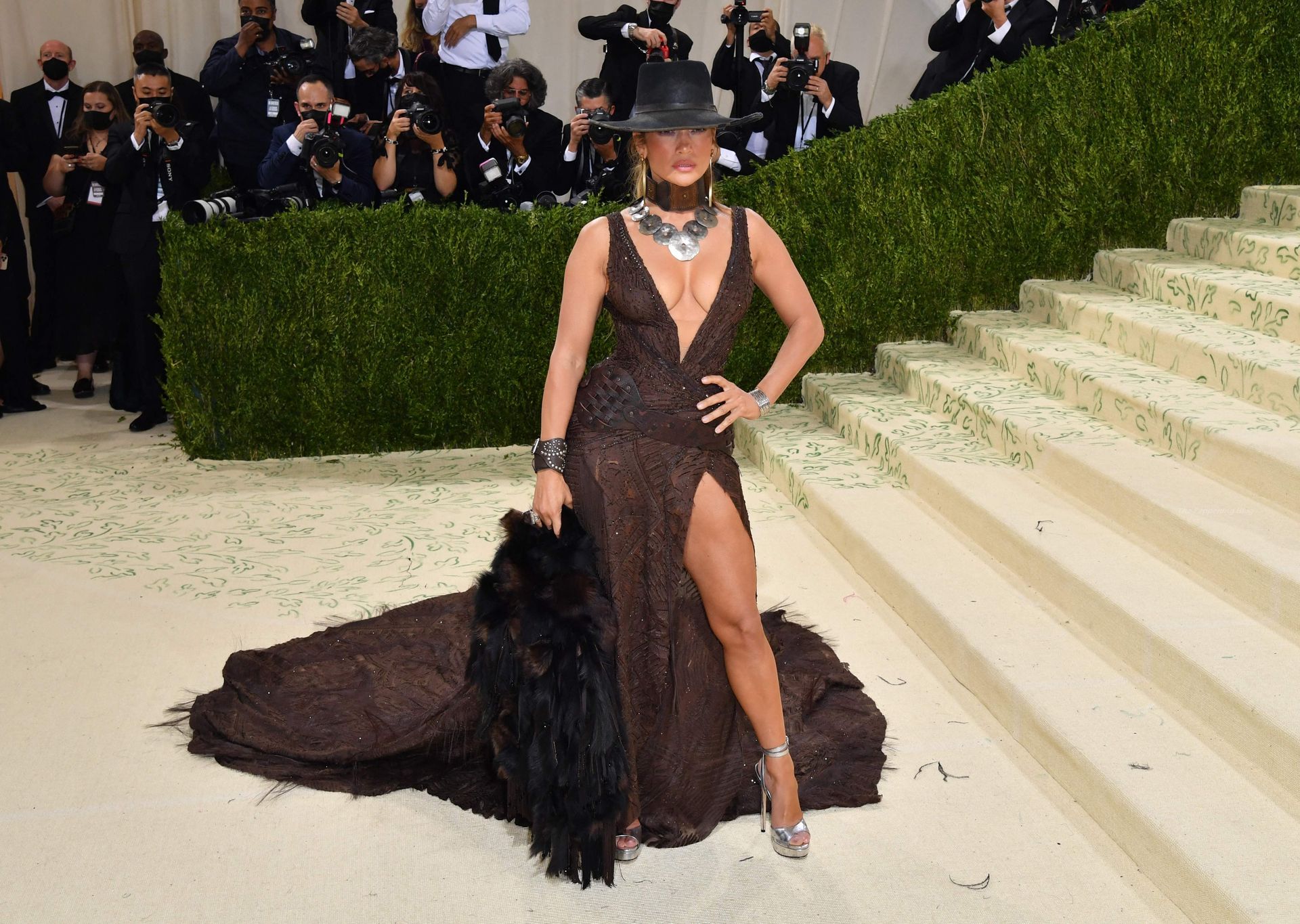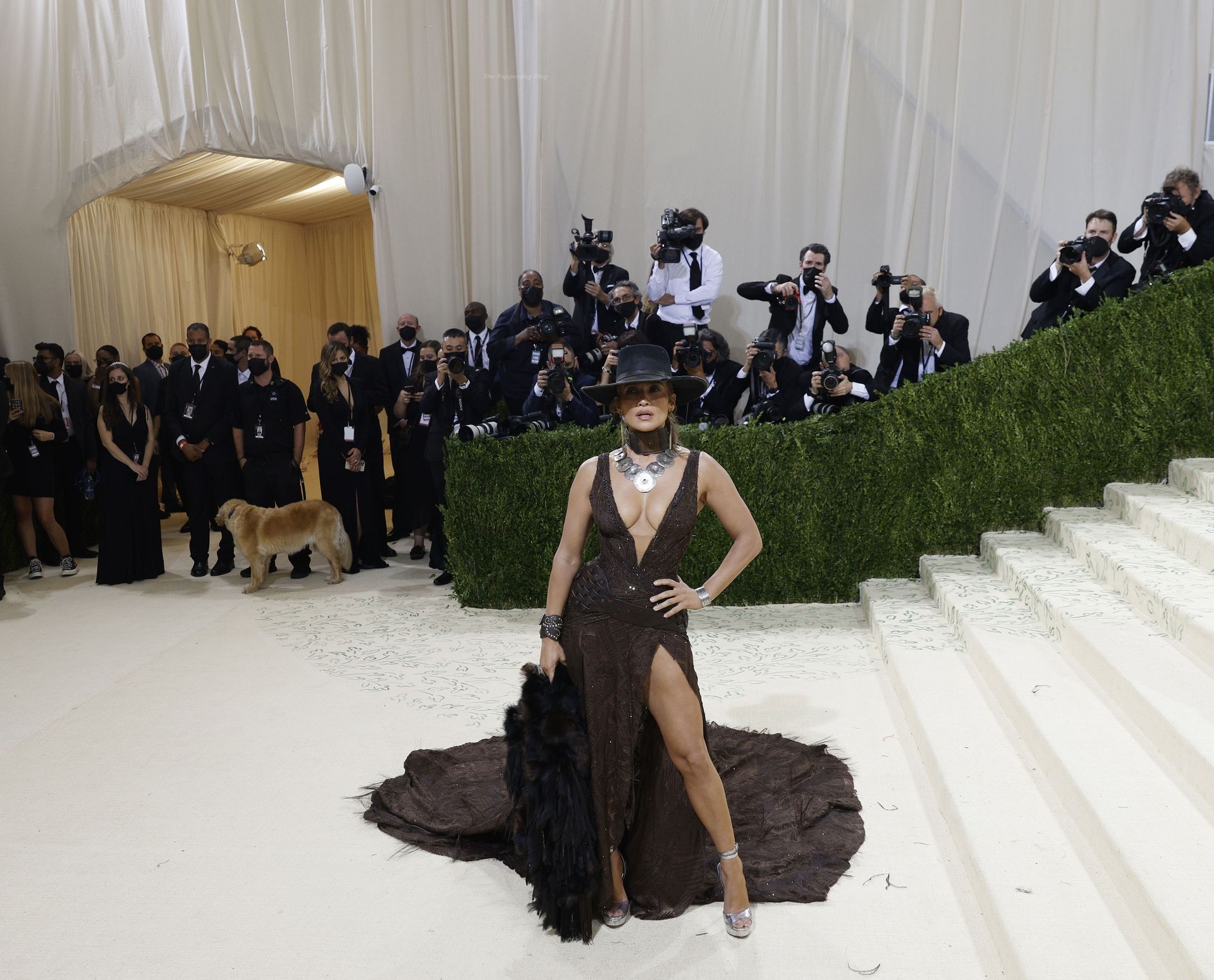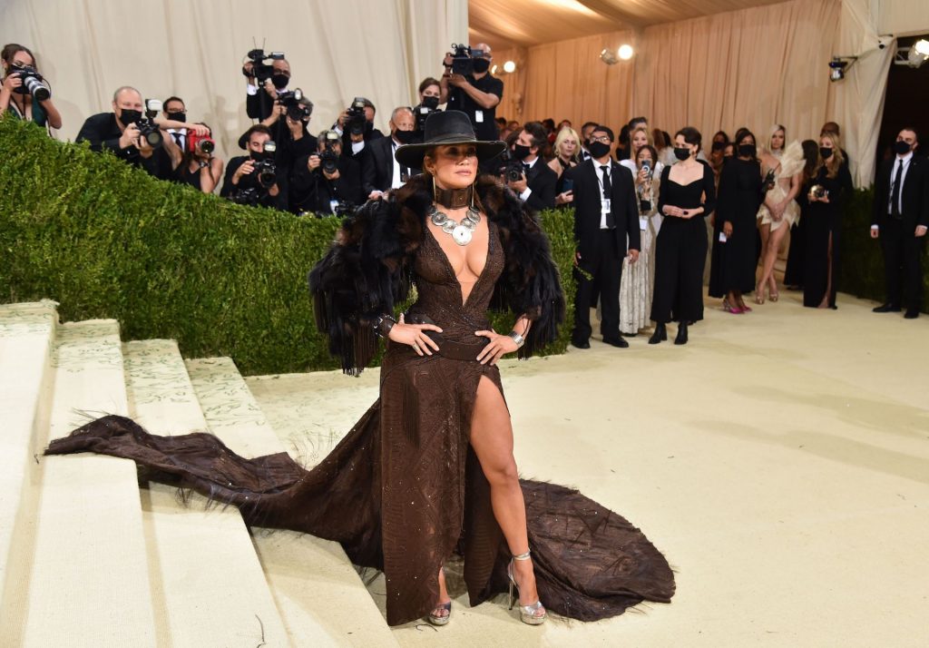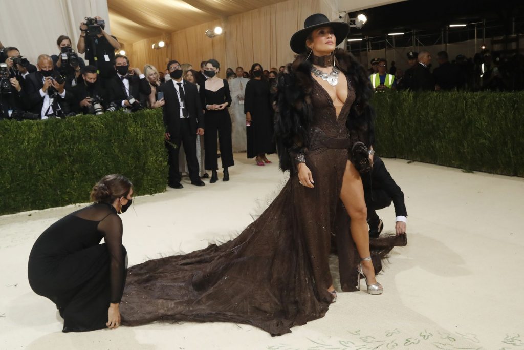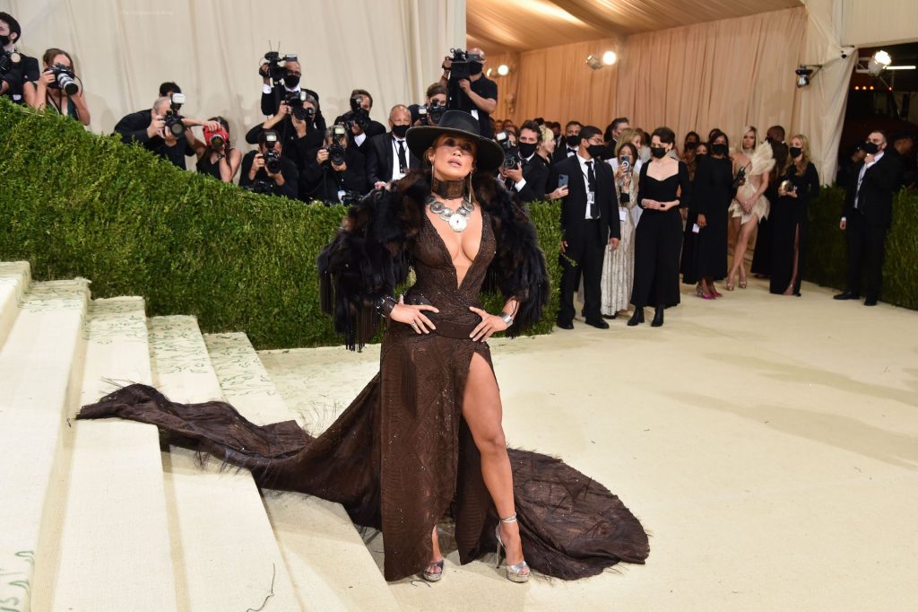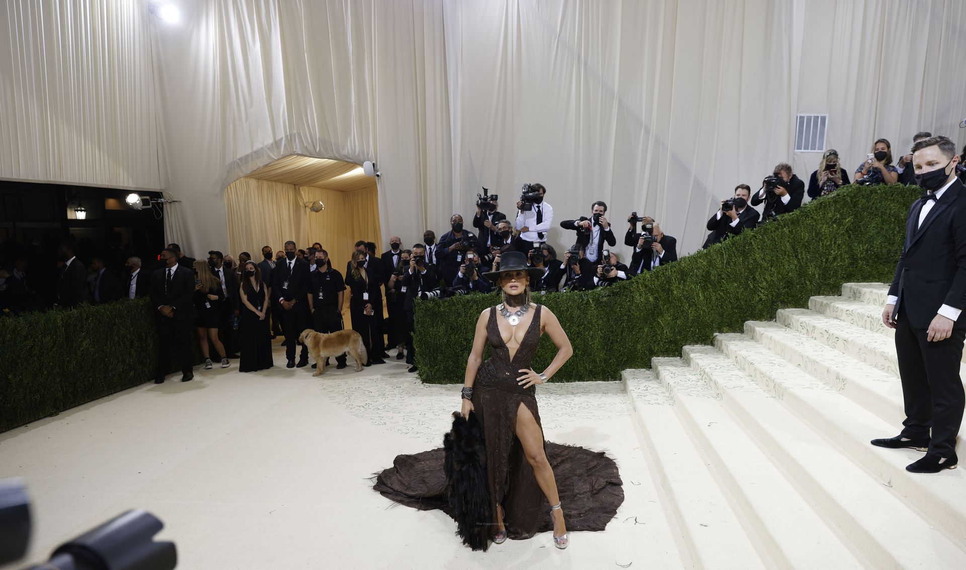 Cantora/atriz Jennifer Lopez participa do Met Gala 2021 Celebrando na América: Um Léxico da Moda no Metropolitan Museum of Art em Nova York, 13/09/2021.