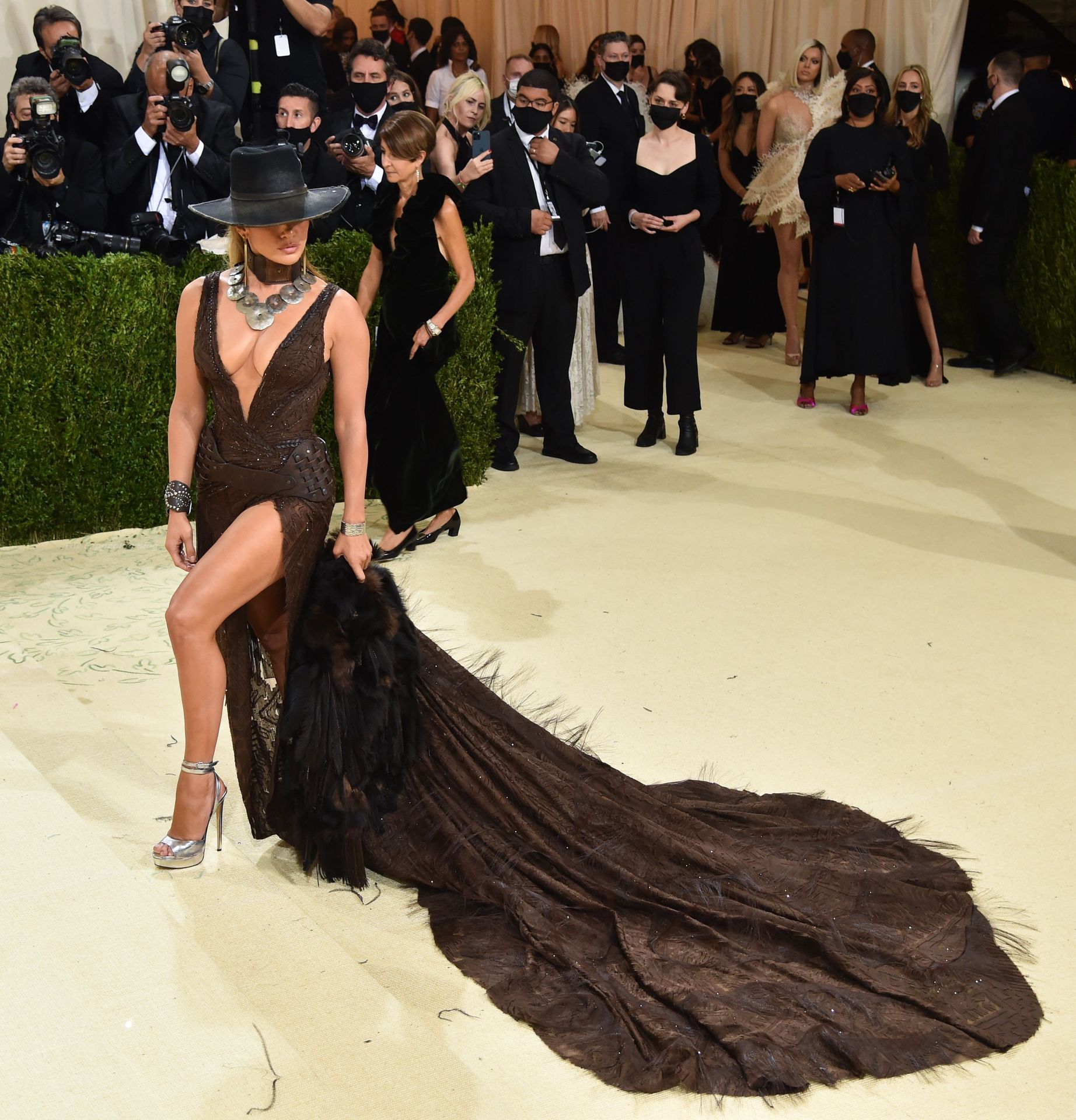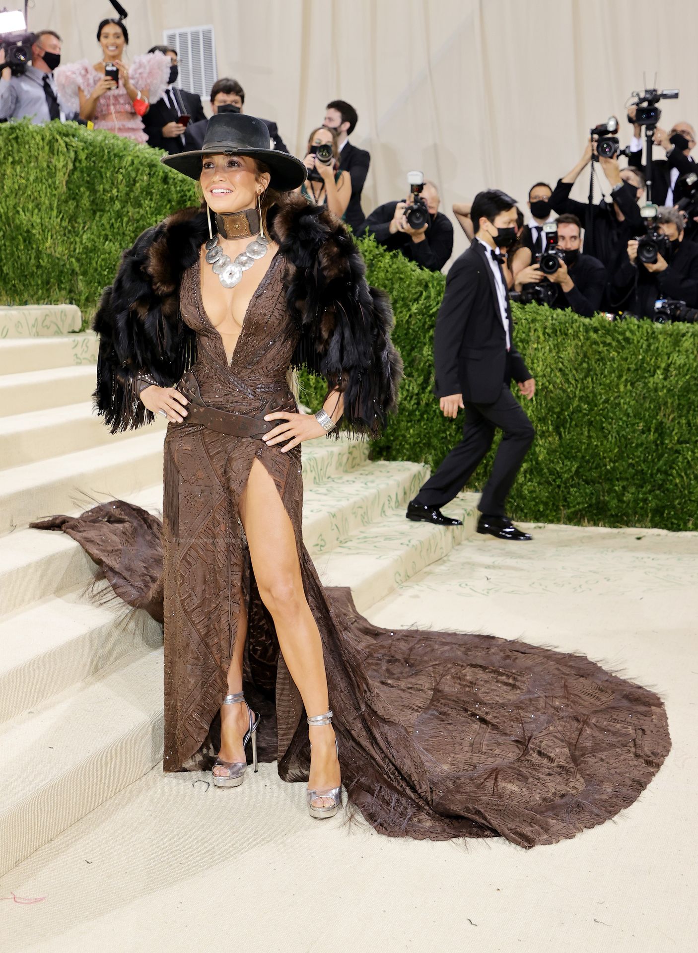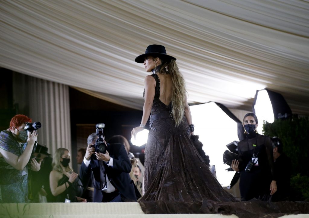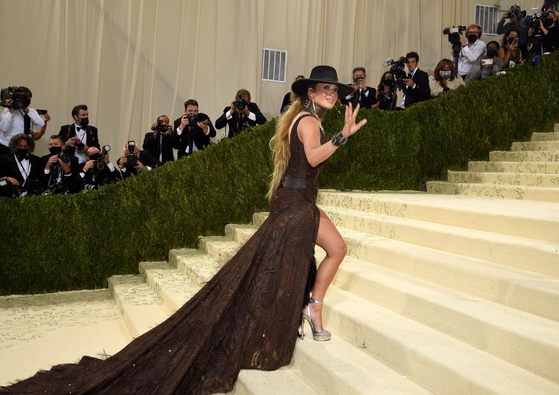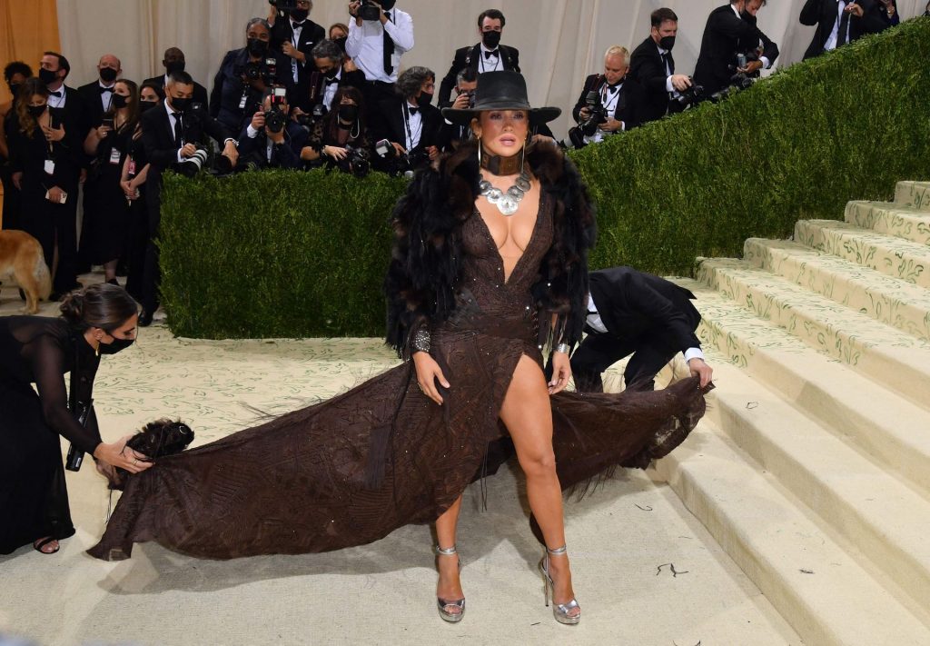 Cantora/atriz Jennifer Lopez participa do Met Gala 2021 Celebrando na América: Um Léxico da Moda no Metropolitan Museum of Art em Nova York, 13/09/2021.