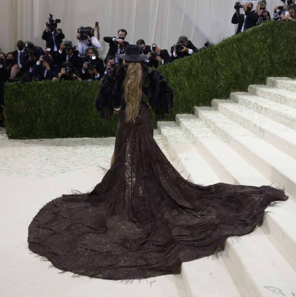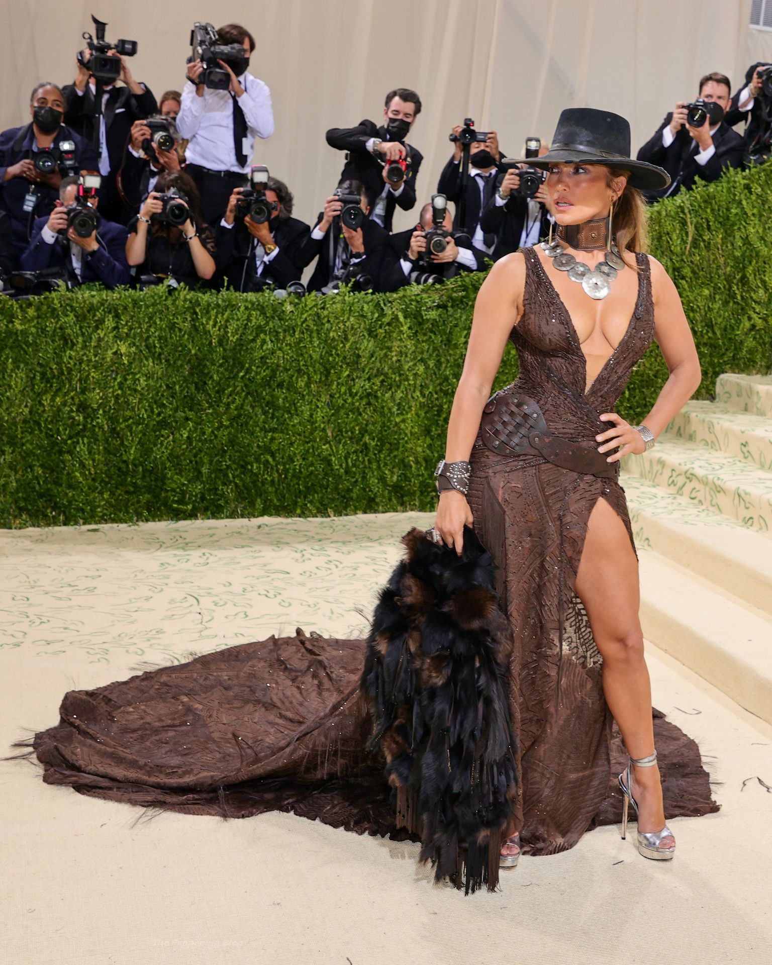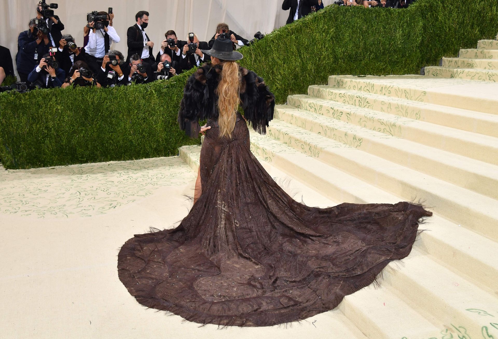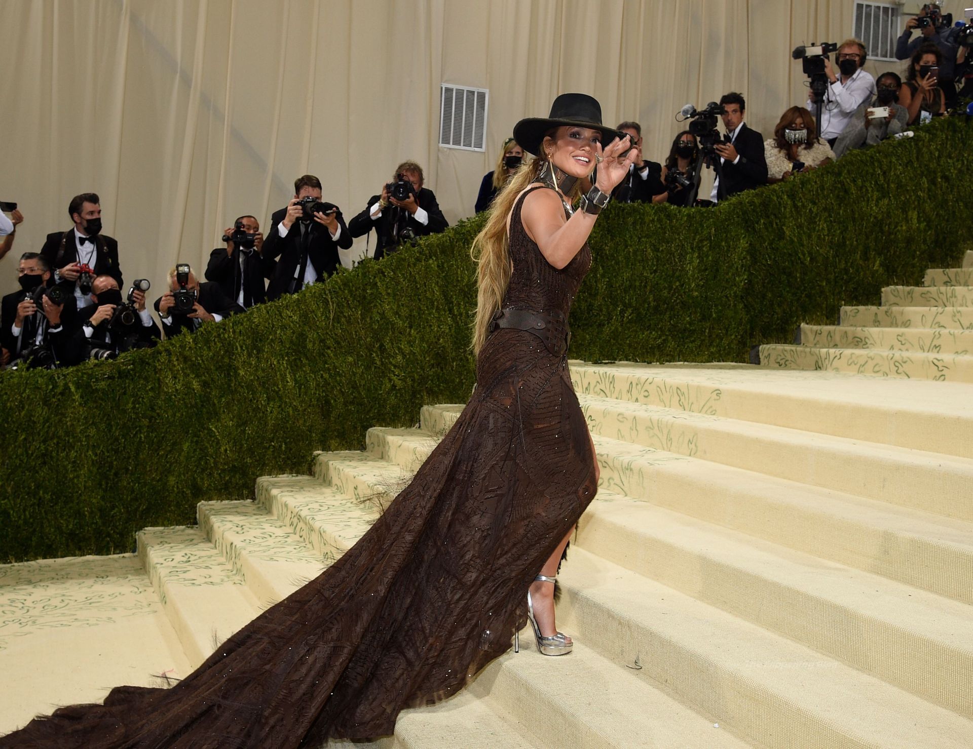 Cantora/atriz Jennifer Lopez participa do Met Gala 2021 Celebrando na América: Um Léxico da Moda no Metropolitan Museum of Art em Nova York, 13/09/2021.