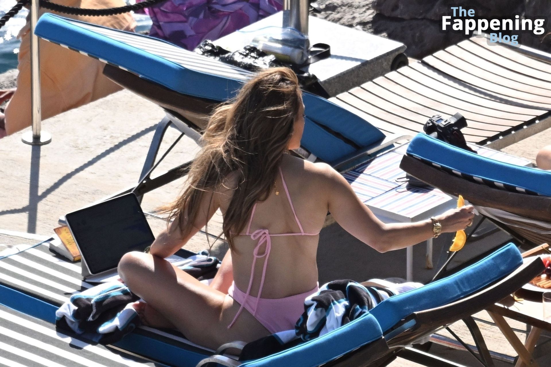 A atriz e cantora americana Jennifer Lopez tira a roupa para mostrar seu fofo biquíni rosa enquanto aproveita o glorioso sol italiano durante suas férias em Positano, 08/09/2023.