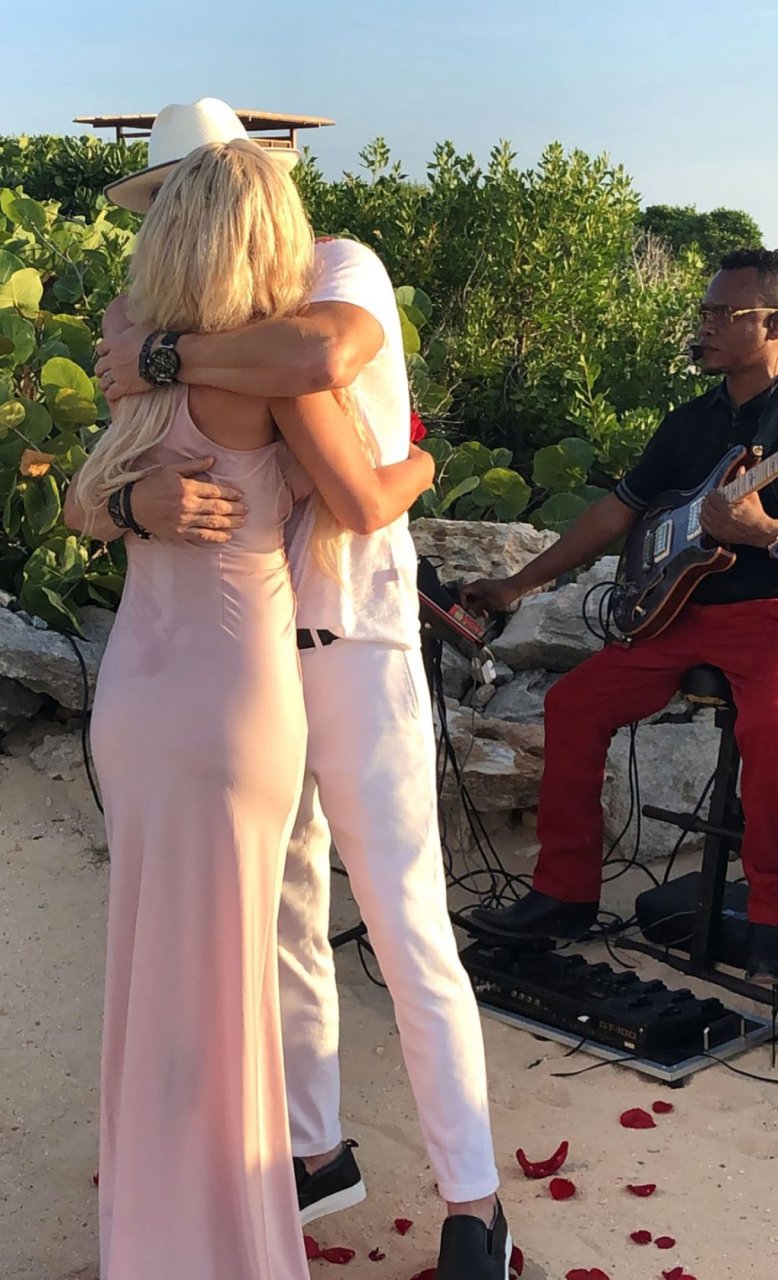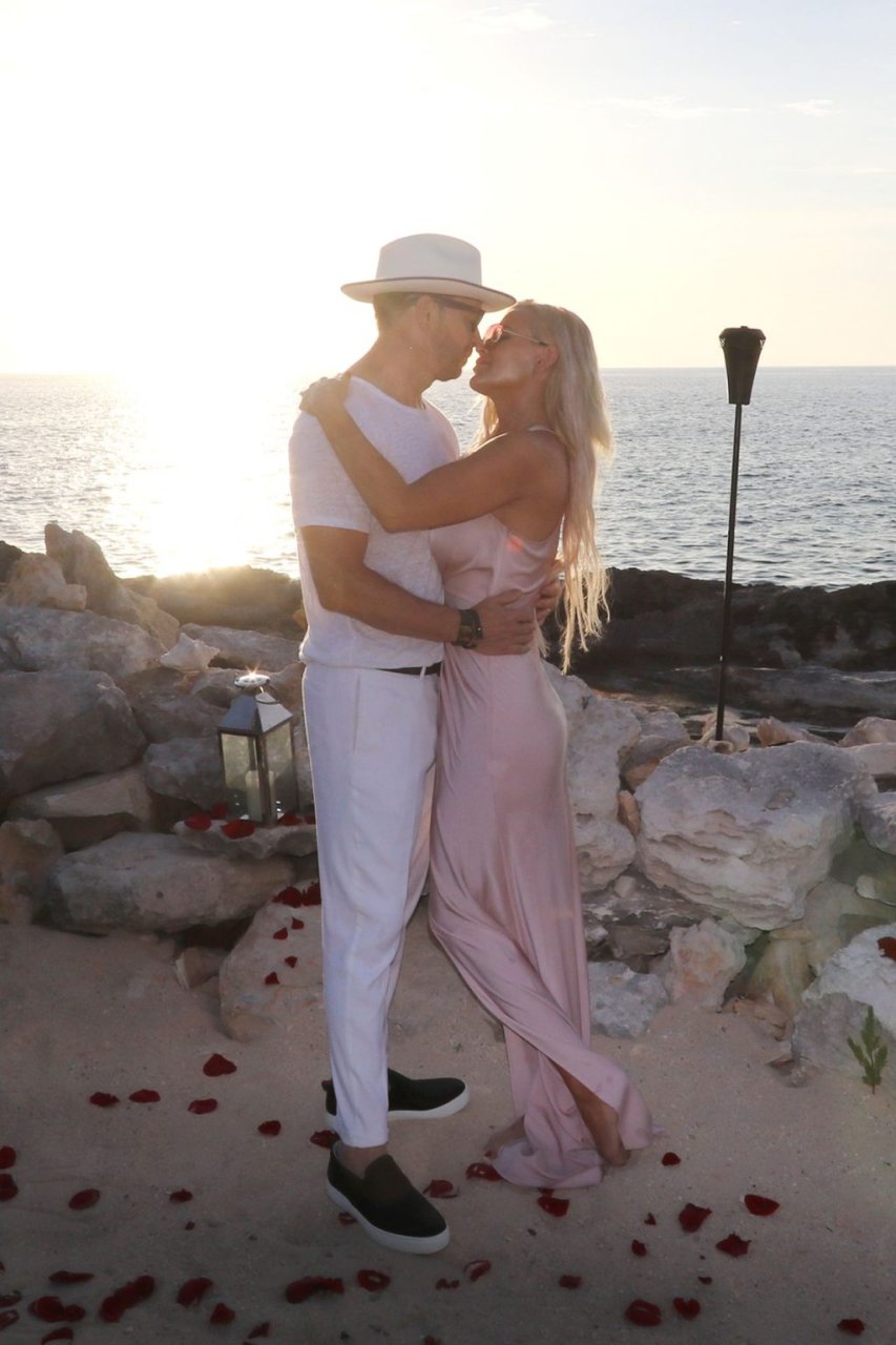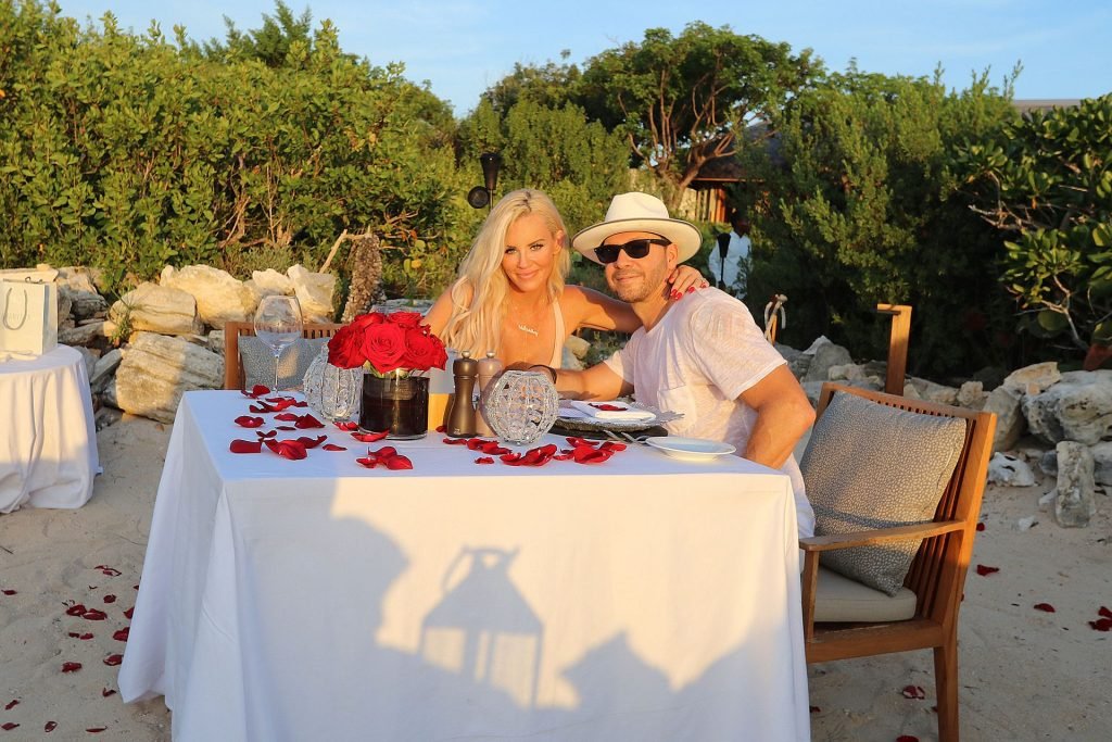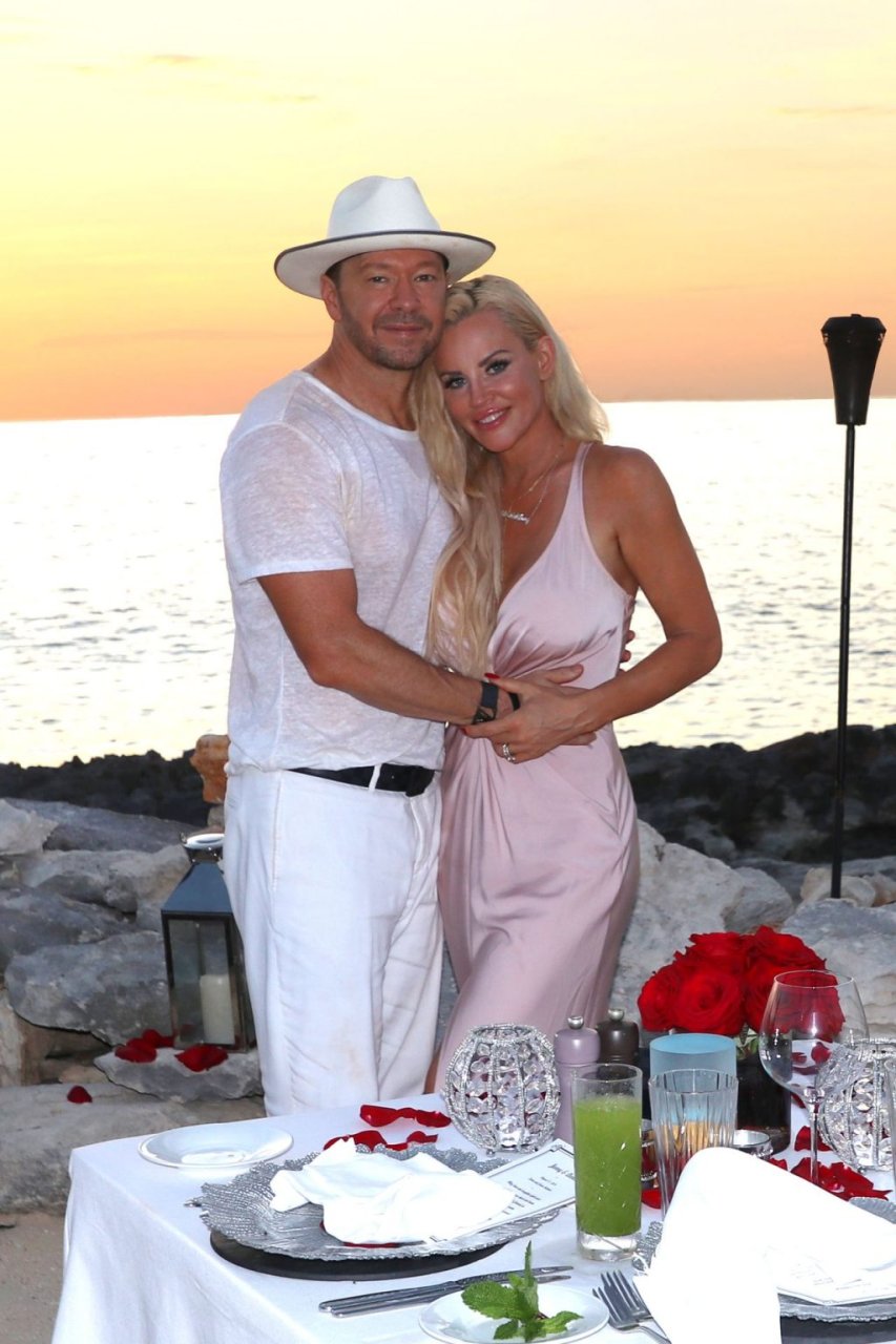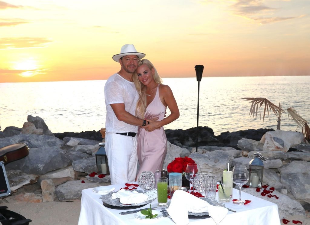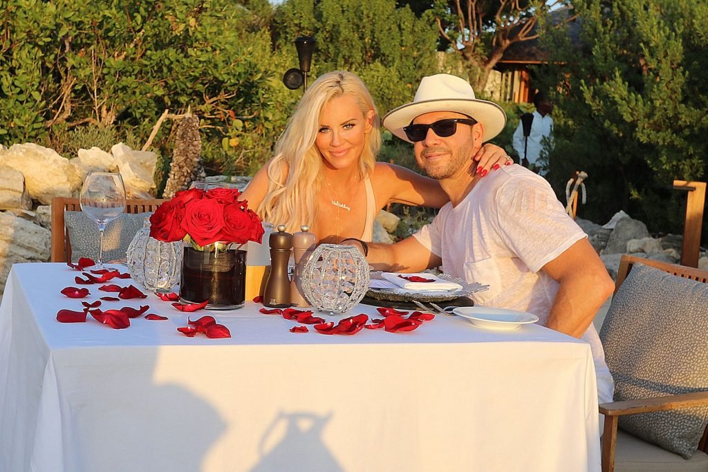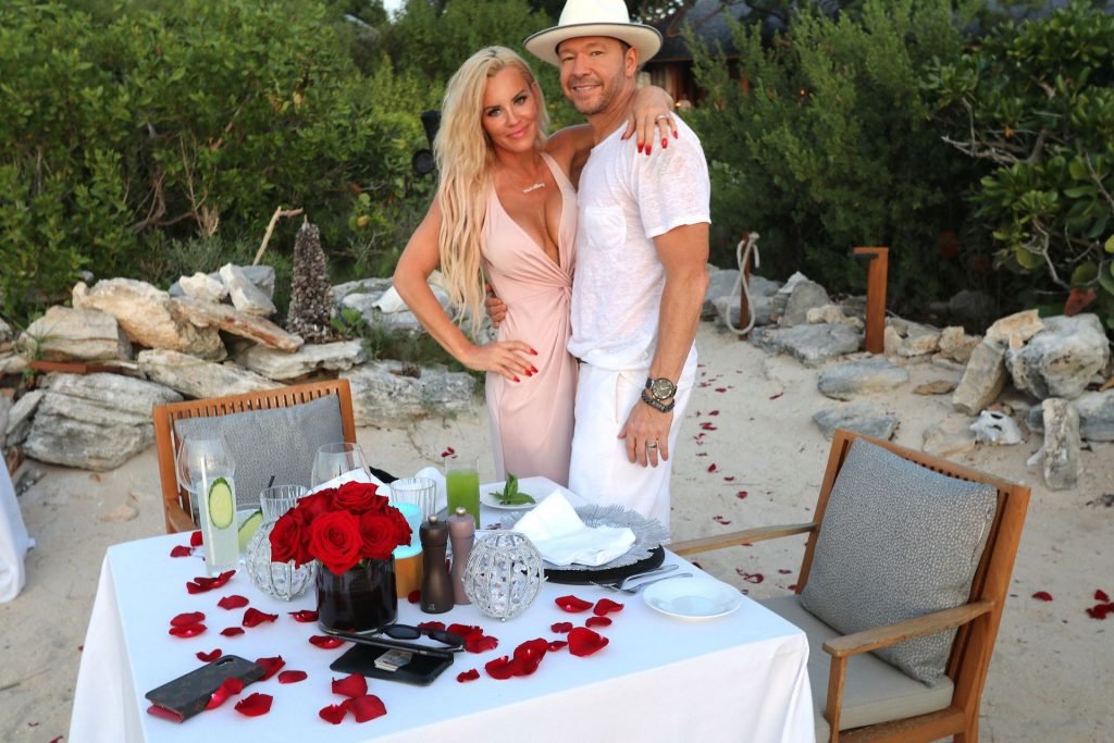 Jenny McCarthy e o marido Donnie Wahlberg em Turks e Caicos para celebrar seu 5º aniversário de casamento em 31 de agosto. Enquanto estavam lá, Donnie surpreendeu Jenny com uma cerimônia de renovação de votos.
