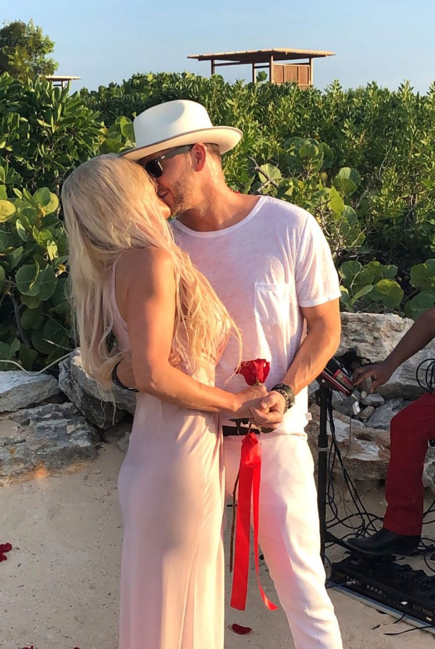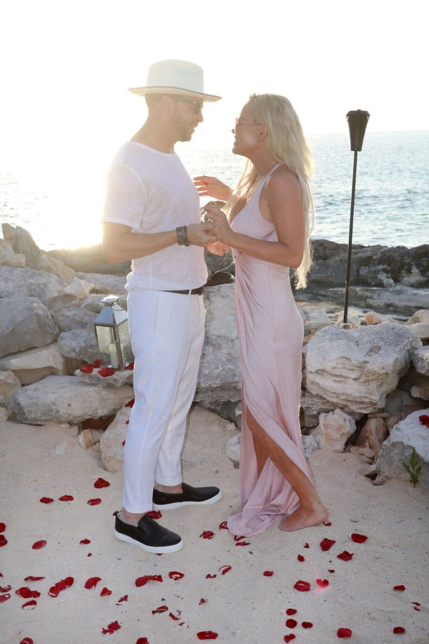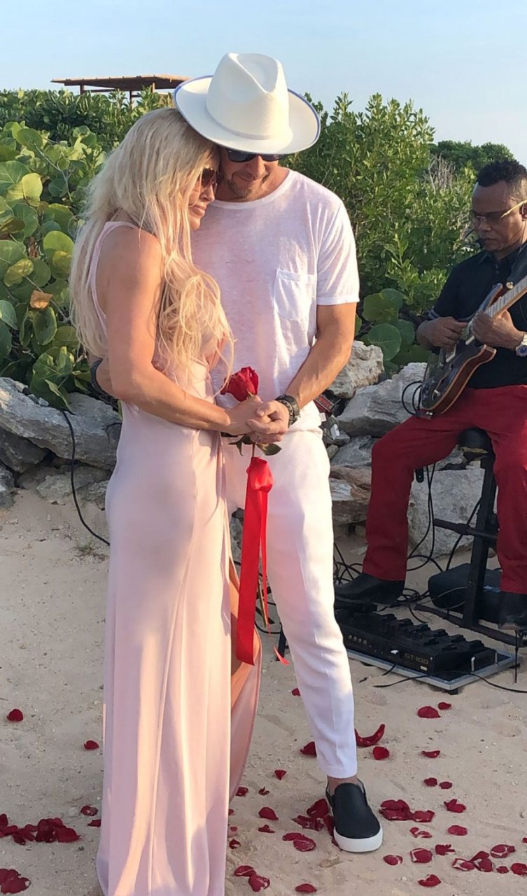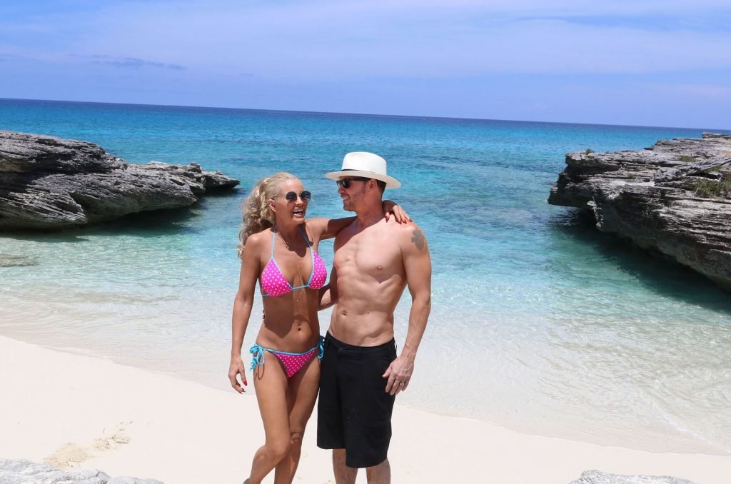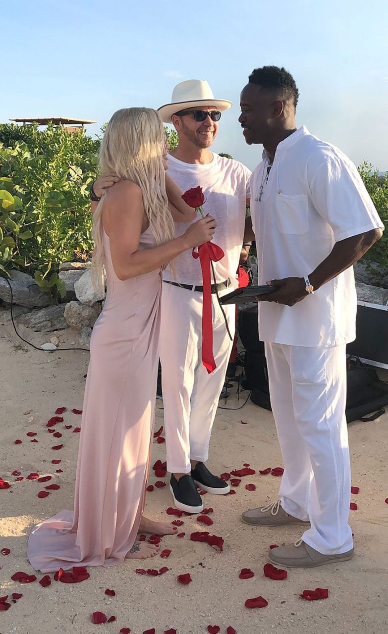 Jenny McCarthy e o marido Donnie Wahlberg em Turks e Caicos para celebrar seu 5º aniversário de casamento em 31 de agosto. Enquanto estavam lá, Donnie surpreendeu Jenny com uma cerimônia de renovação de votos.