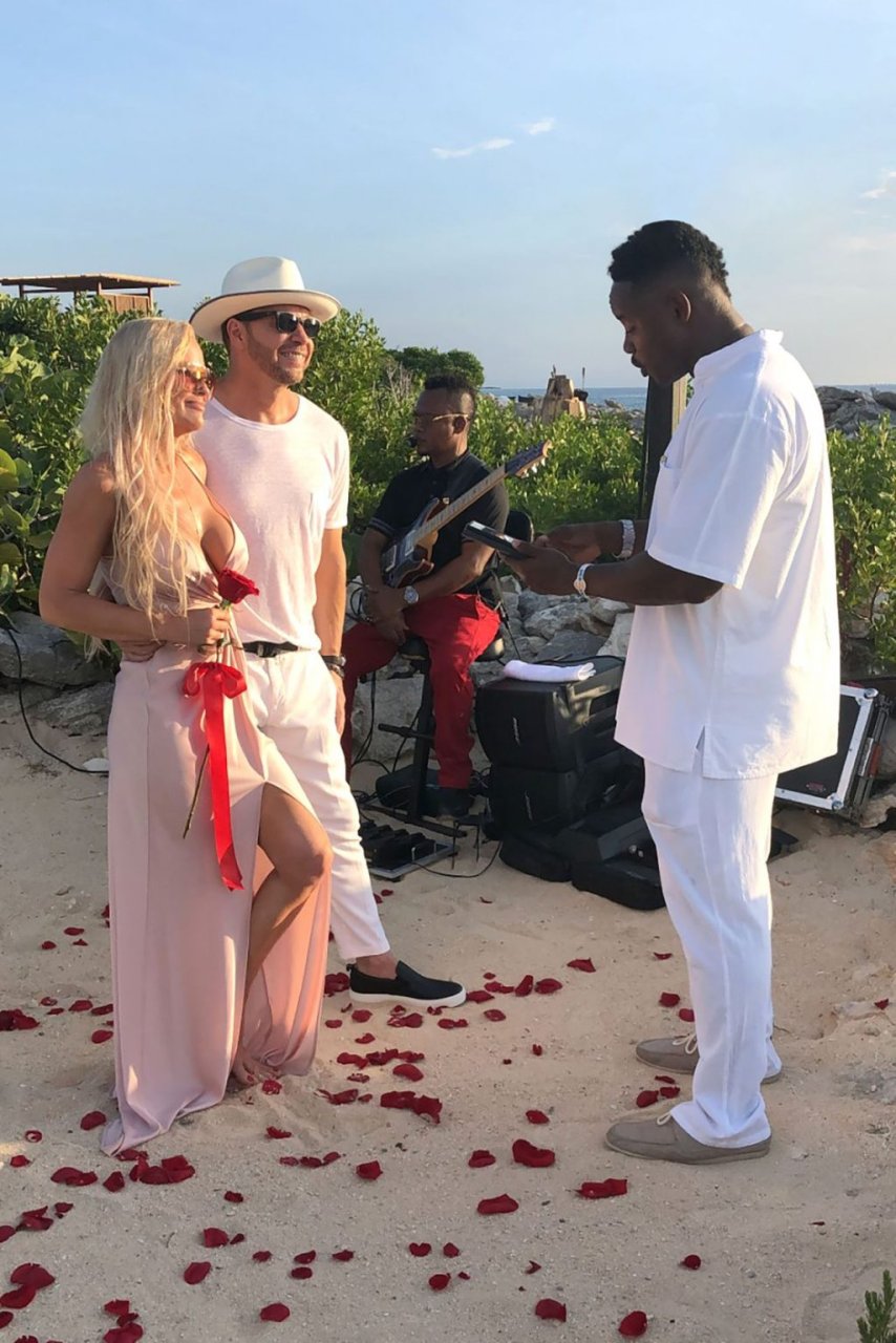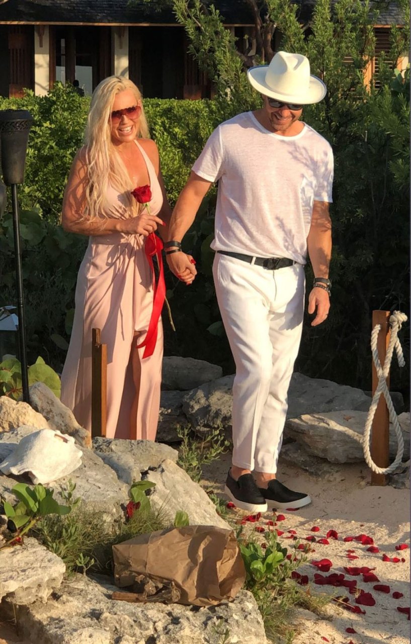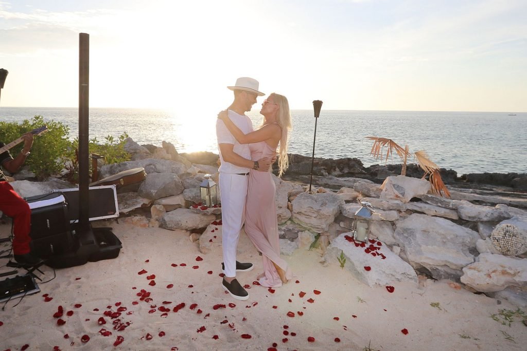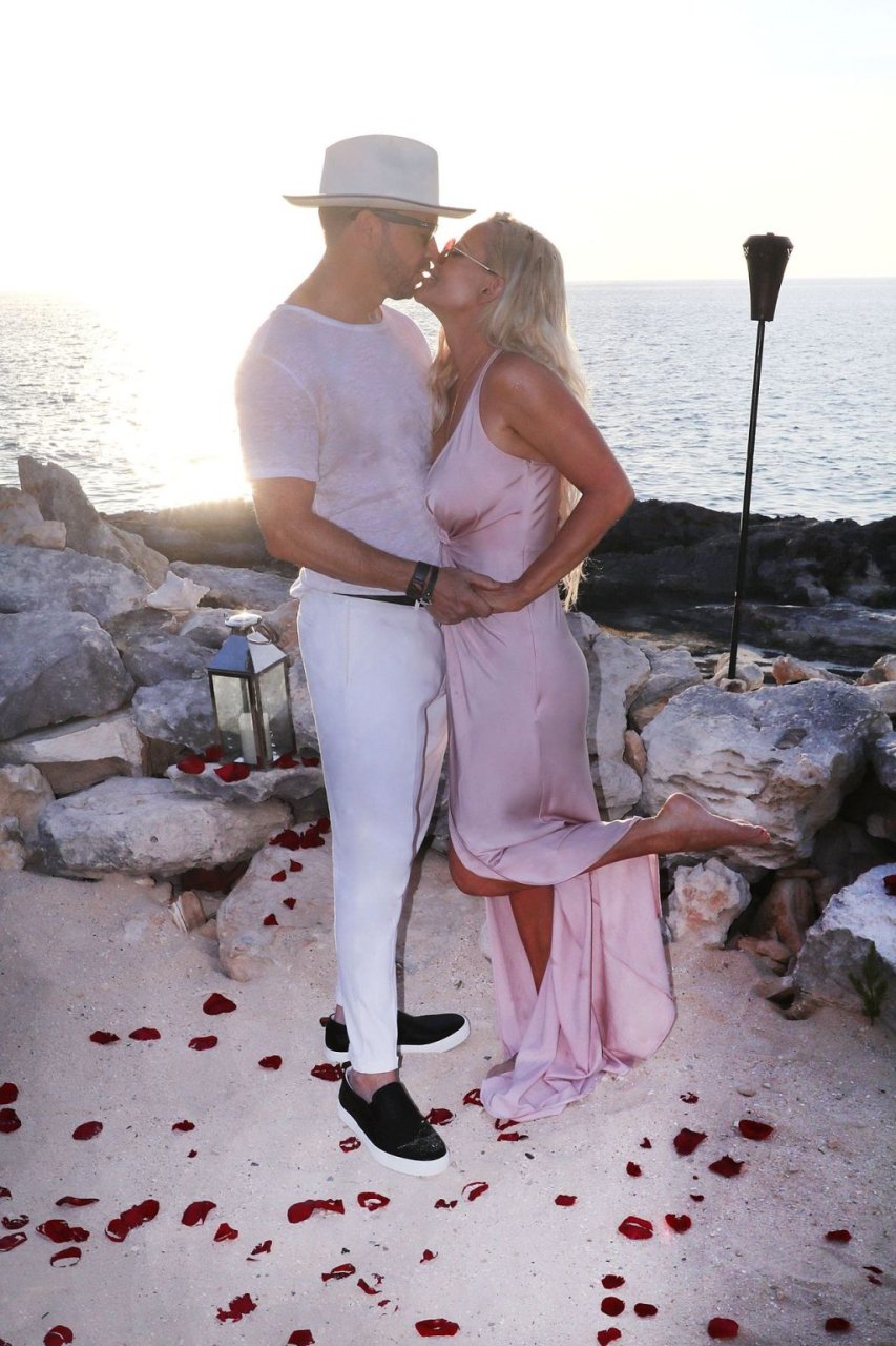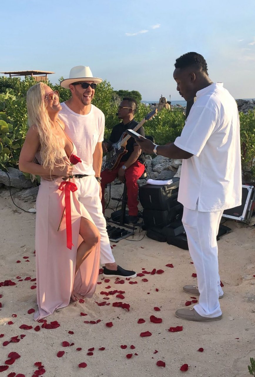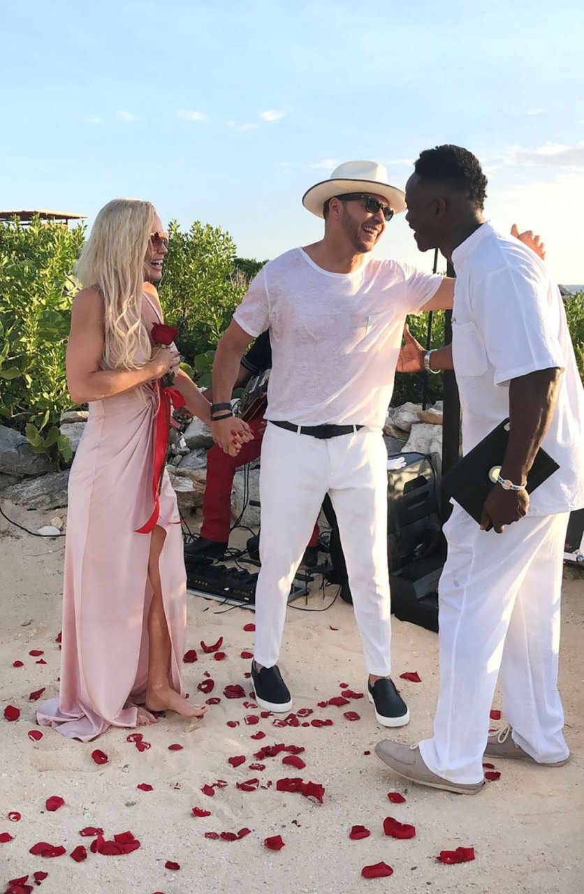 Jenny McCarthy e o marido Donnie Wahlberg em Turks e Caicos para celebrar seu 5º aniversário de casamento em 31 de agosto. Enquanto estavam lá, Donnie surpreendeu Jenny com uma cerimônia de renovação de votos.