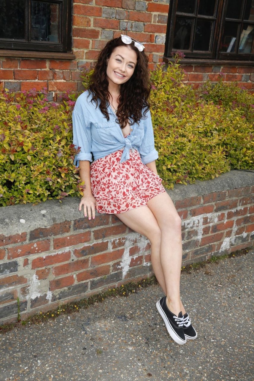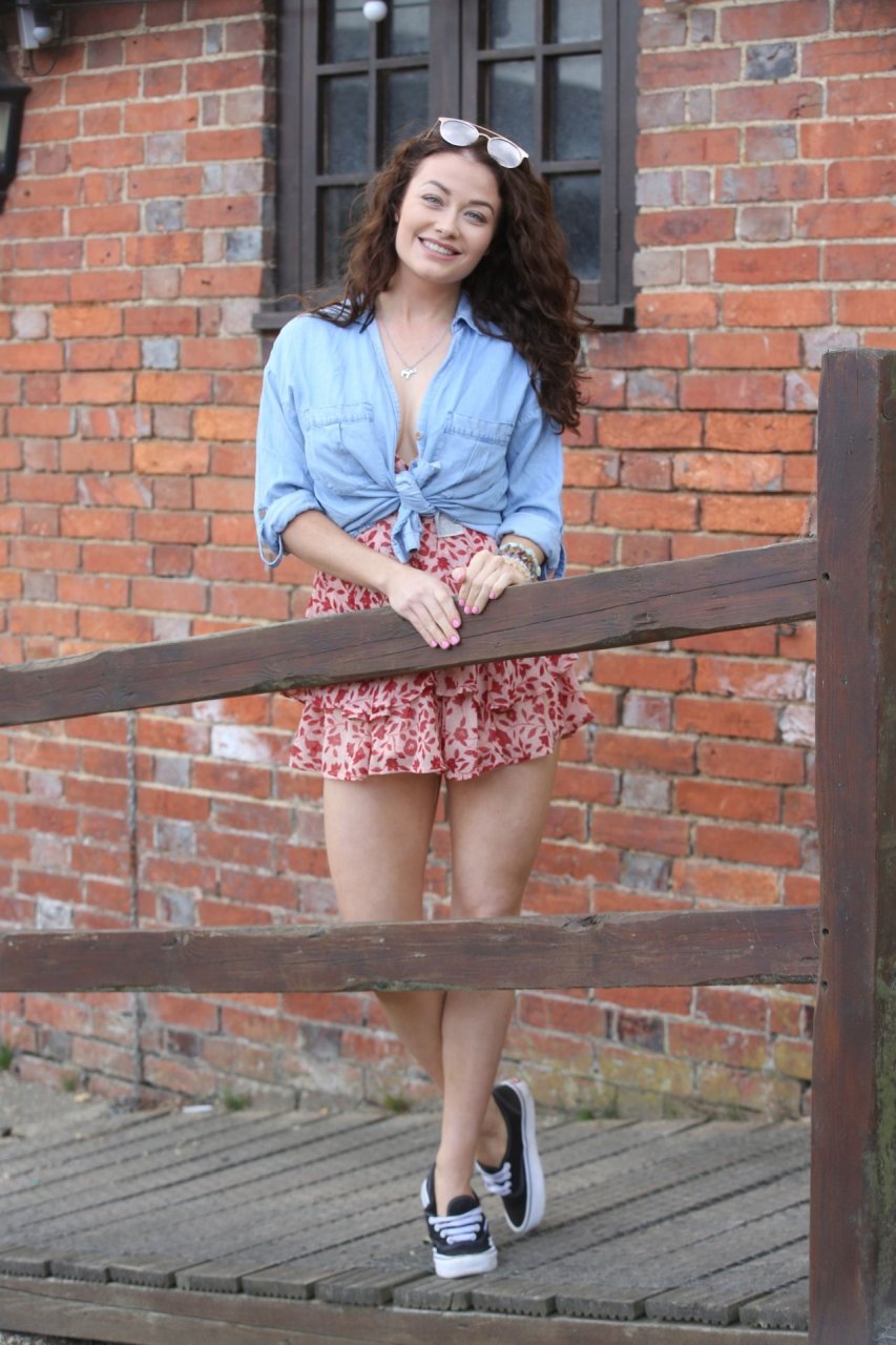 Jess Impiazzi visita as Tulleys Escape Rooms na Tulleys Farm em Crawley, 25/05/2019. A estrela de reality show e modelo de 30 anos mostrou suas pernas sexy enquanto posava para o fotógrafo.