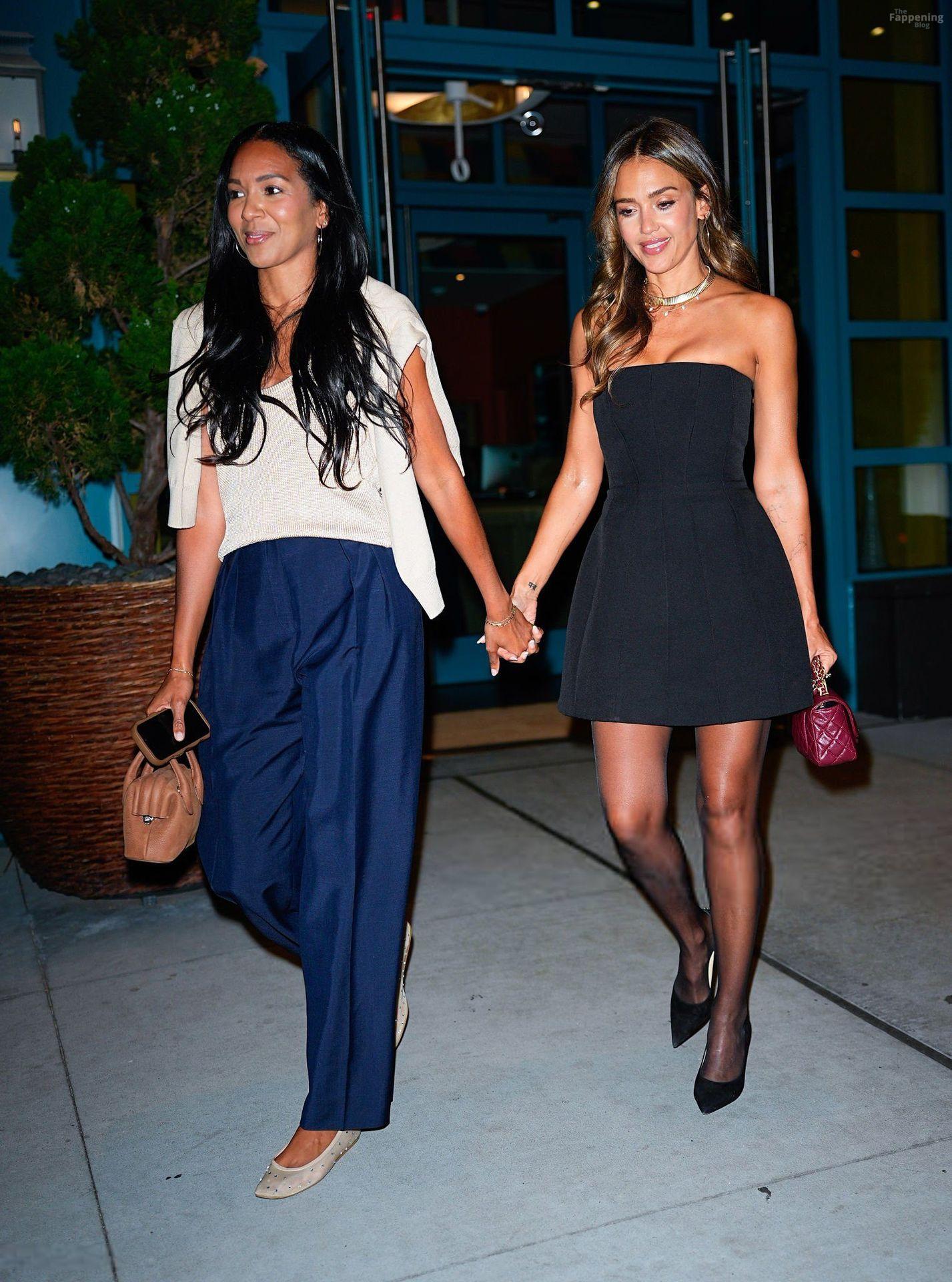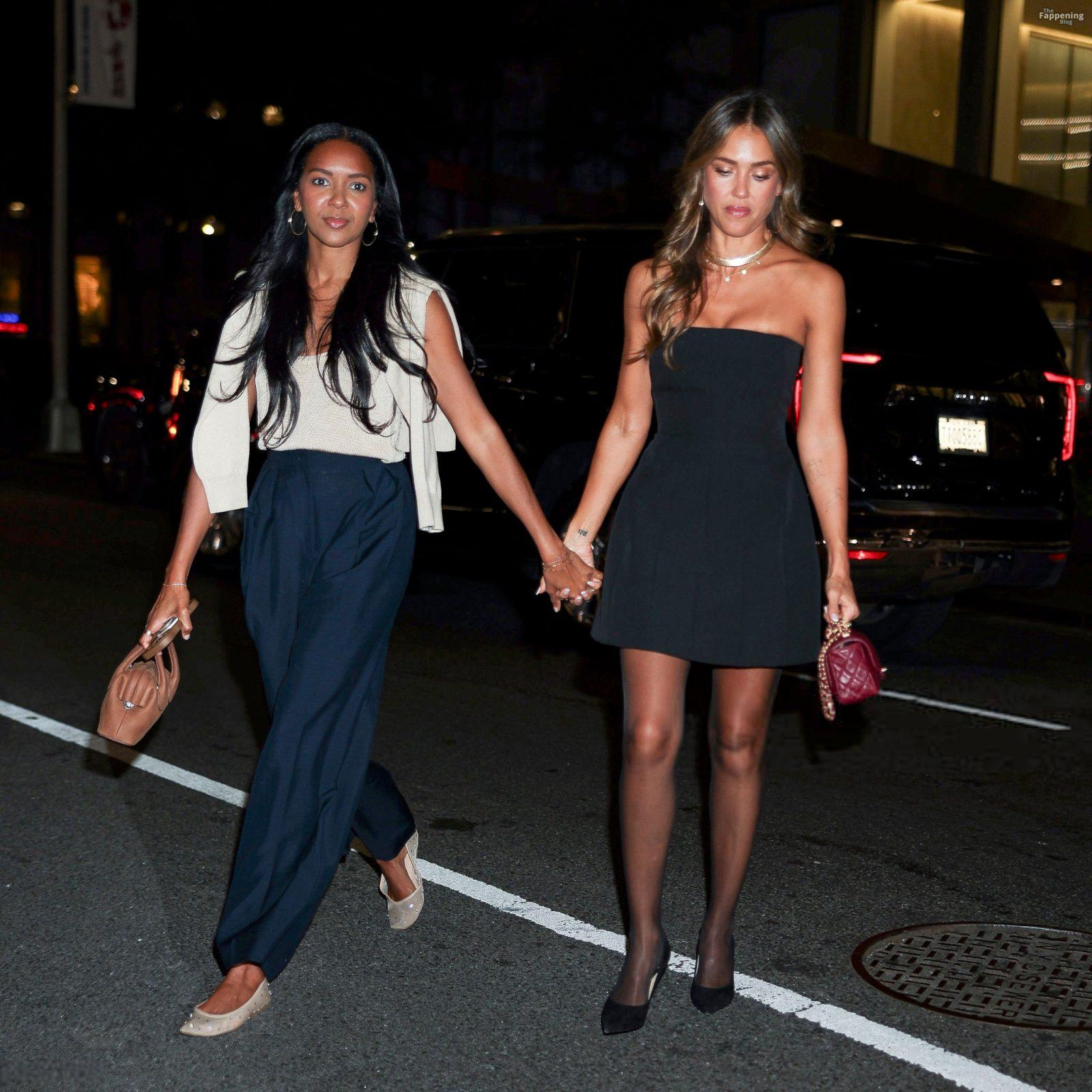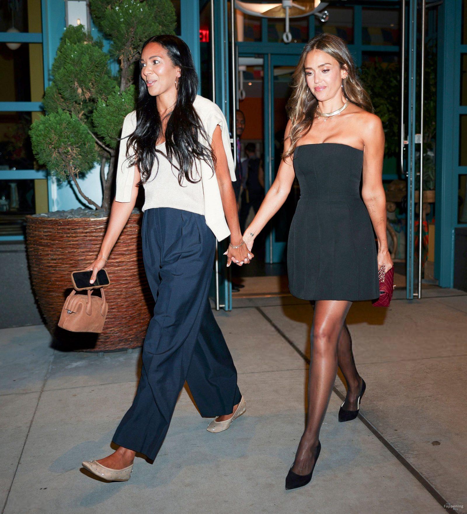 Jessica Alba e Lizzy Mathis saíram para jantar em NYC, fazendo uma pausa na divulgação da nova série “Honest Renovations.” Jessica Alba arrasa com um vestidinho preto tomara que caia, meia-calça transparente e saltos altos, exibindo pernas impecáveis.