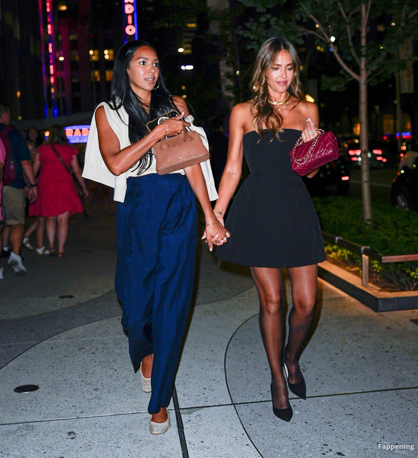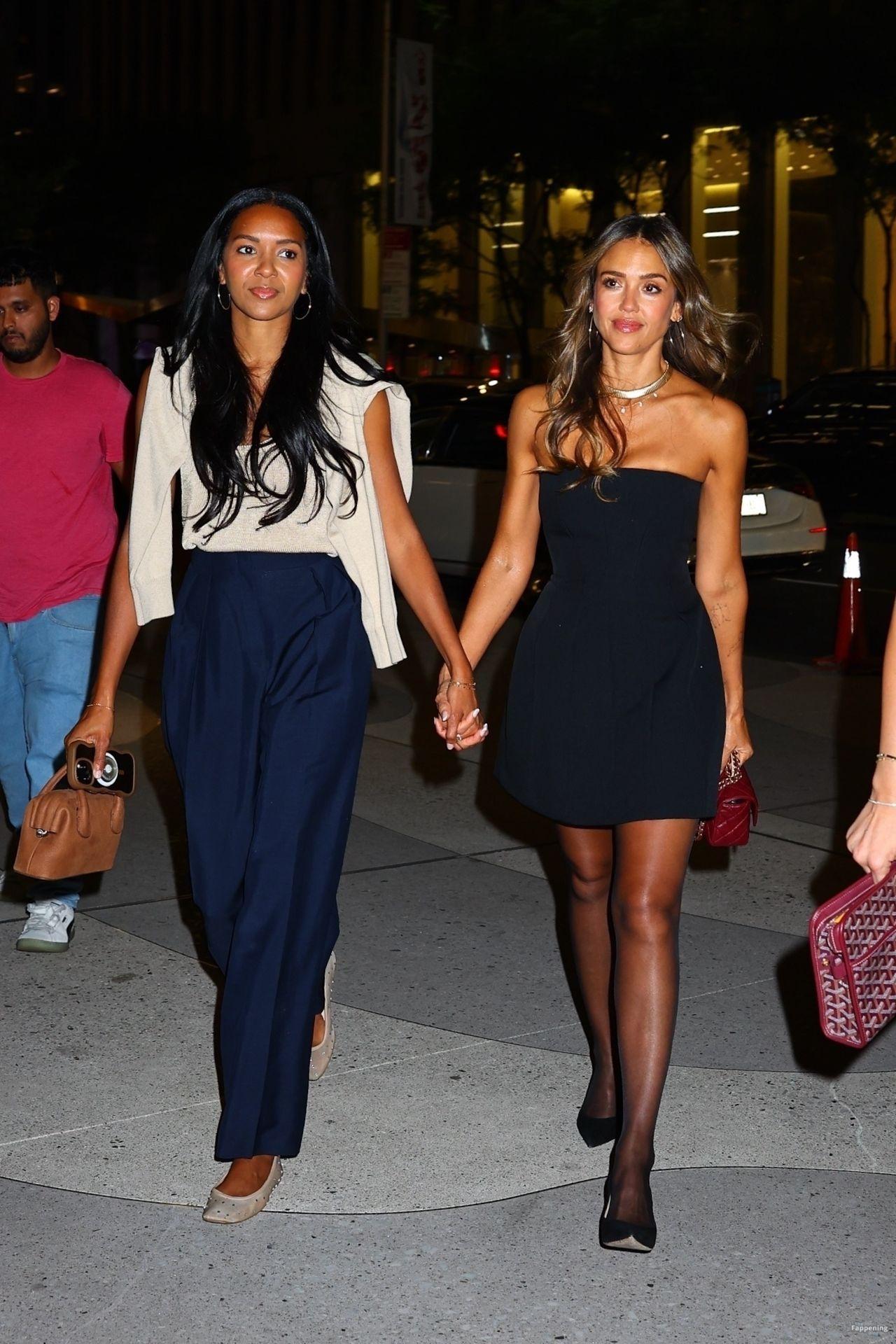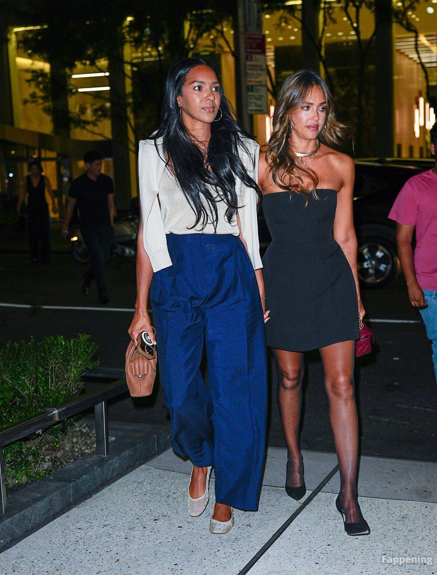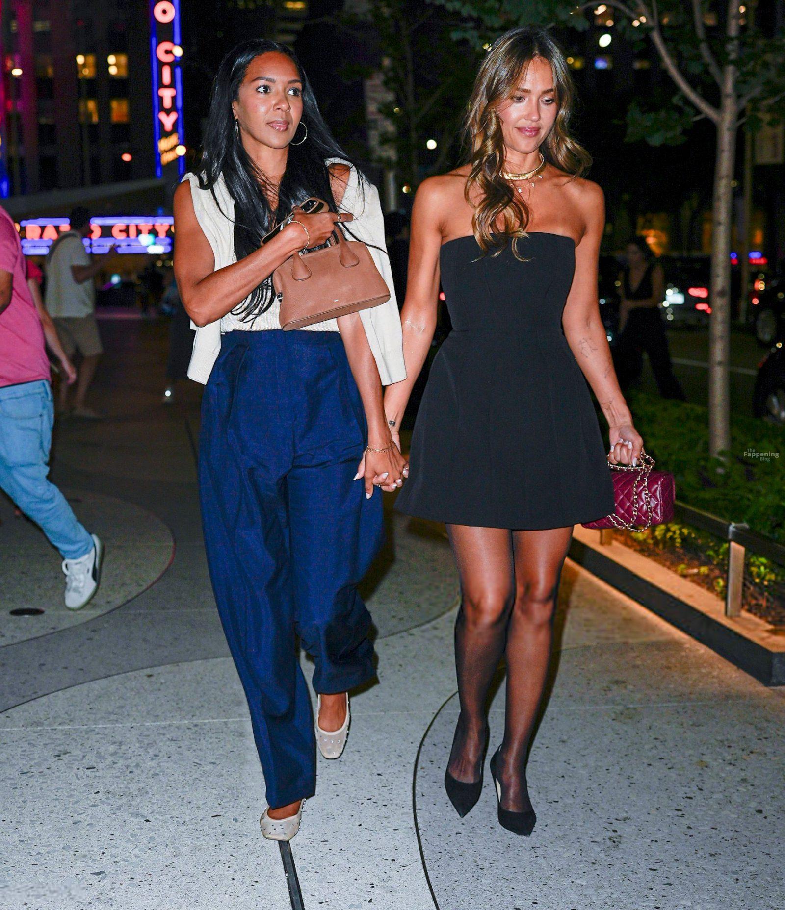 Jessica Alba e Lizzy Mathis saíram para jantar em NYC, fazendo uma pausa na divulgação da nova série “Honest Renovations.” Jessica Alba arrasa com um vestidinho preto tomara que caia, meia-calça transparente e saltos altos, exibindo pernas impecáveis.