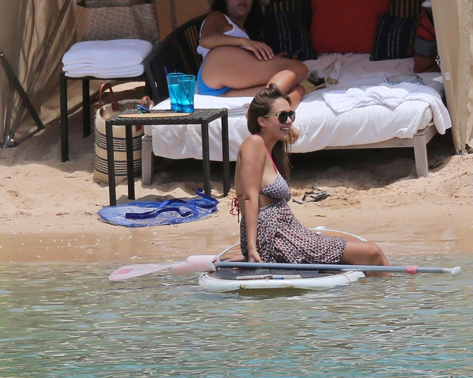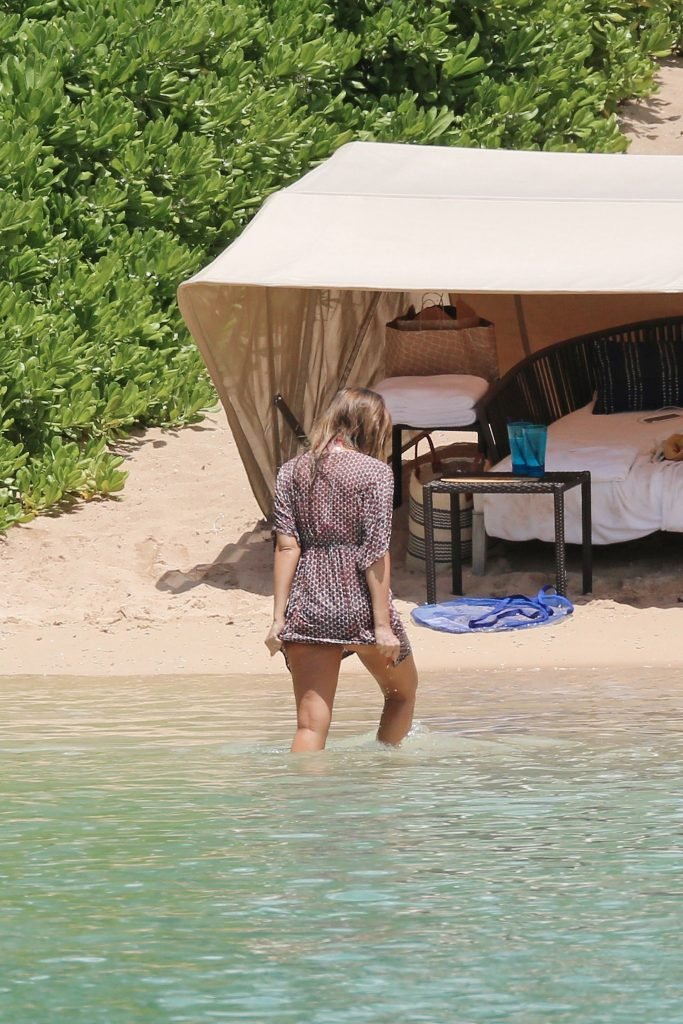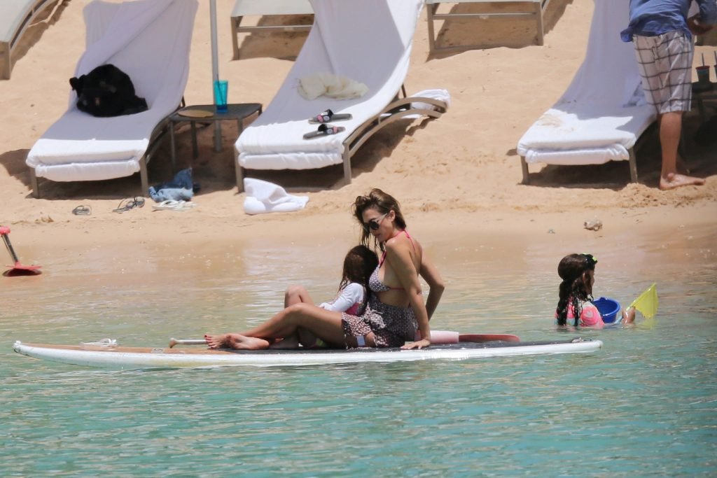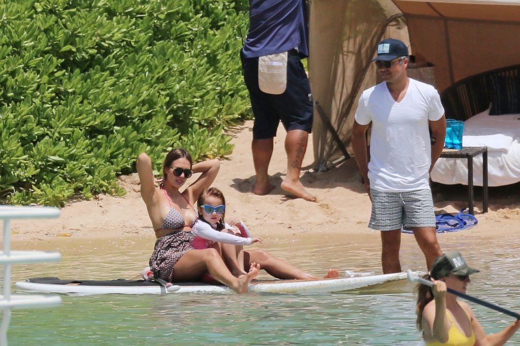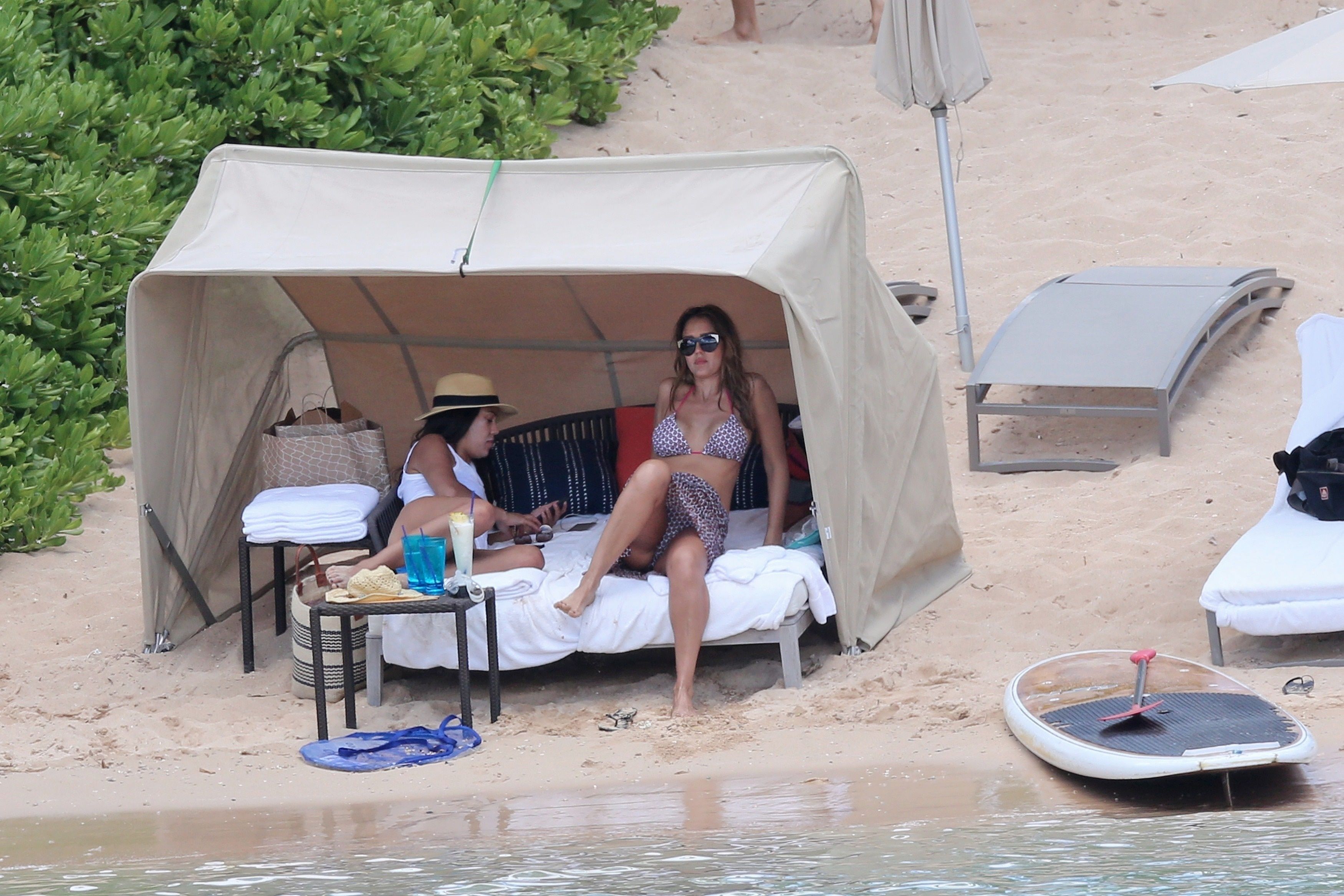 Jessica Alba vai à praia com uma pequena barriguinha de grávida. A estrela morena está de férias com sua família, 17/07/2017.