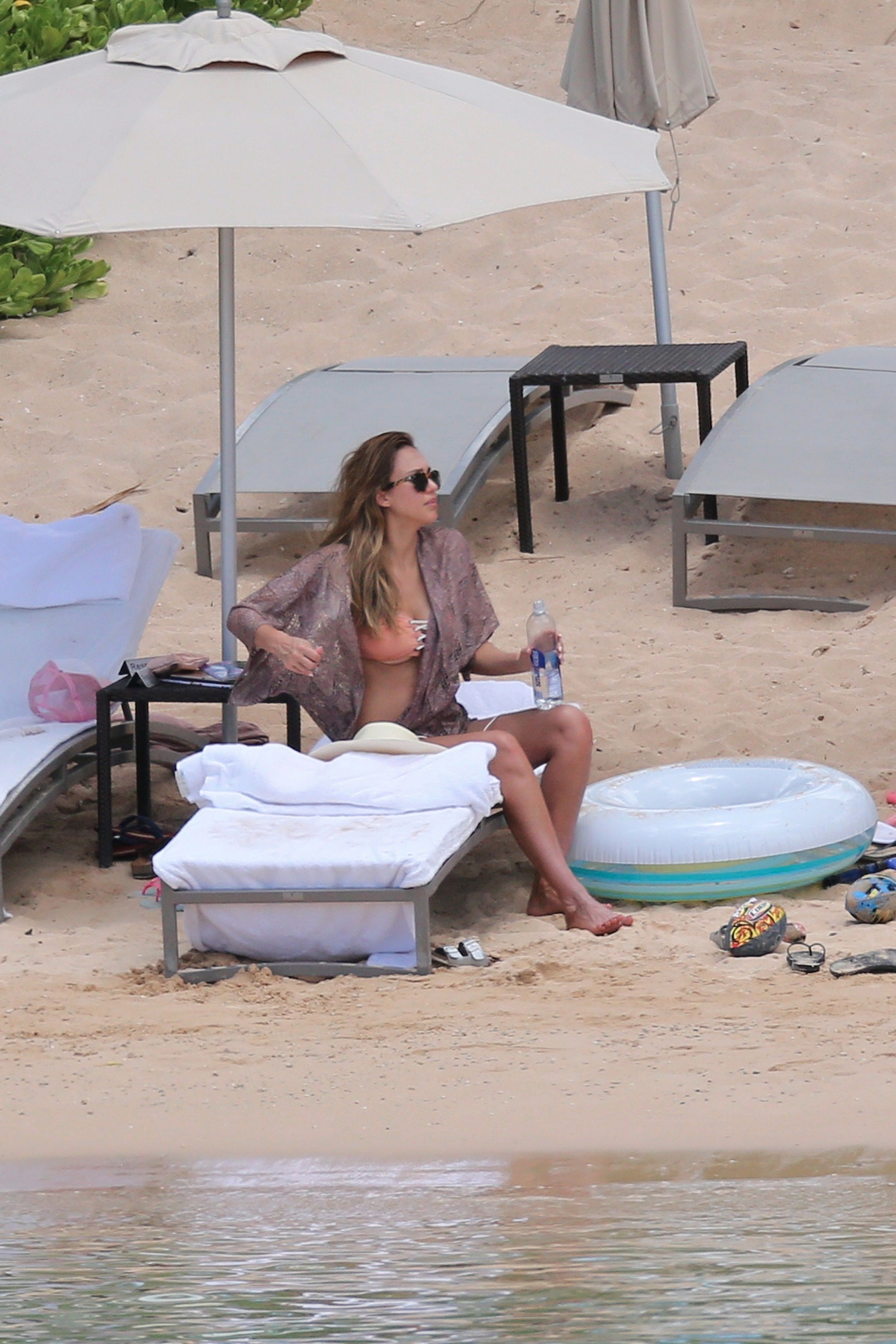 Jessica Alba de biquíni foi vista relaxando de férias no Havaí, 16/07/2017. Jessica Alba é uma atriz americana (Good Luck Chuck), modelo. Idade: 36.