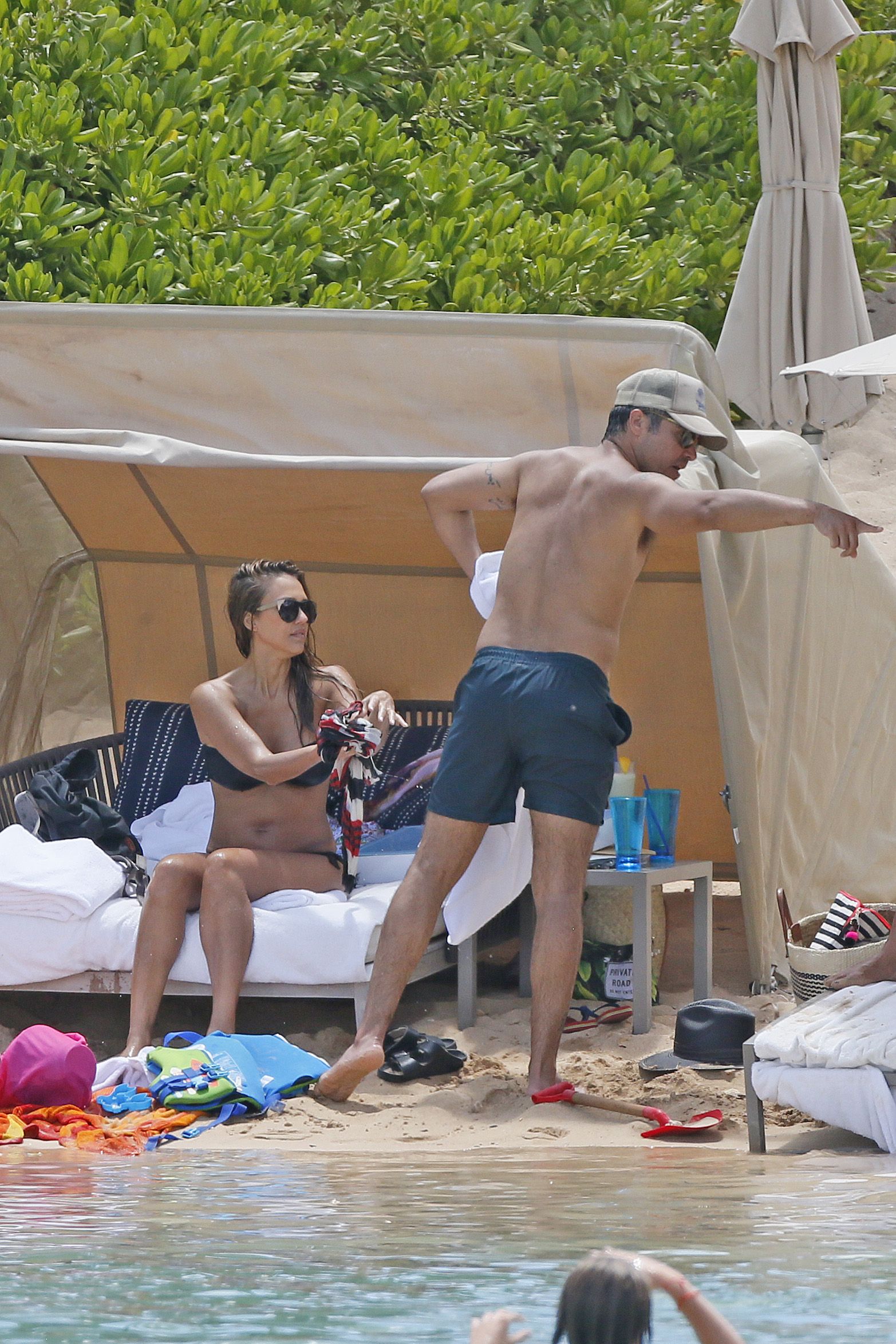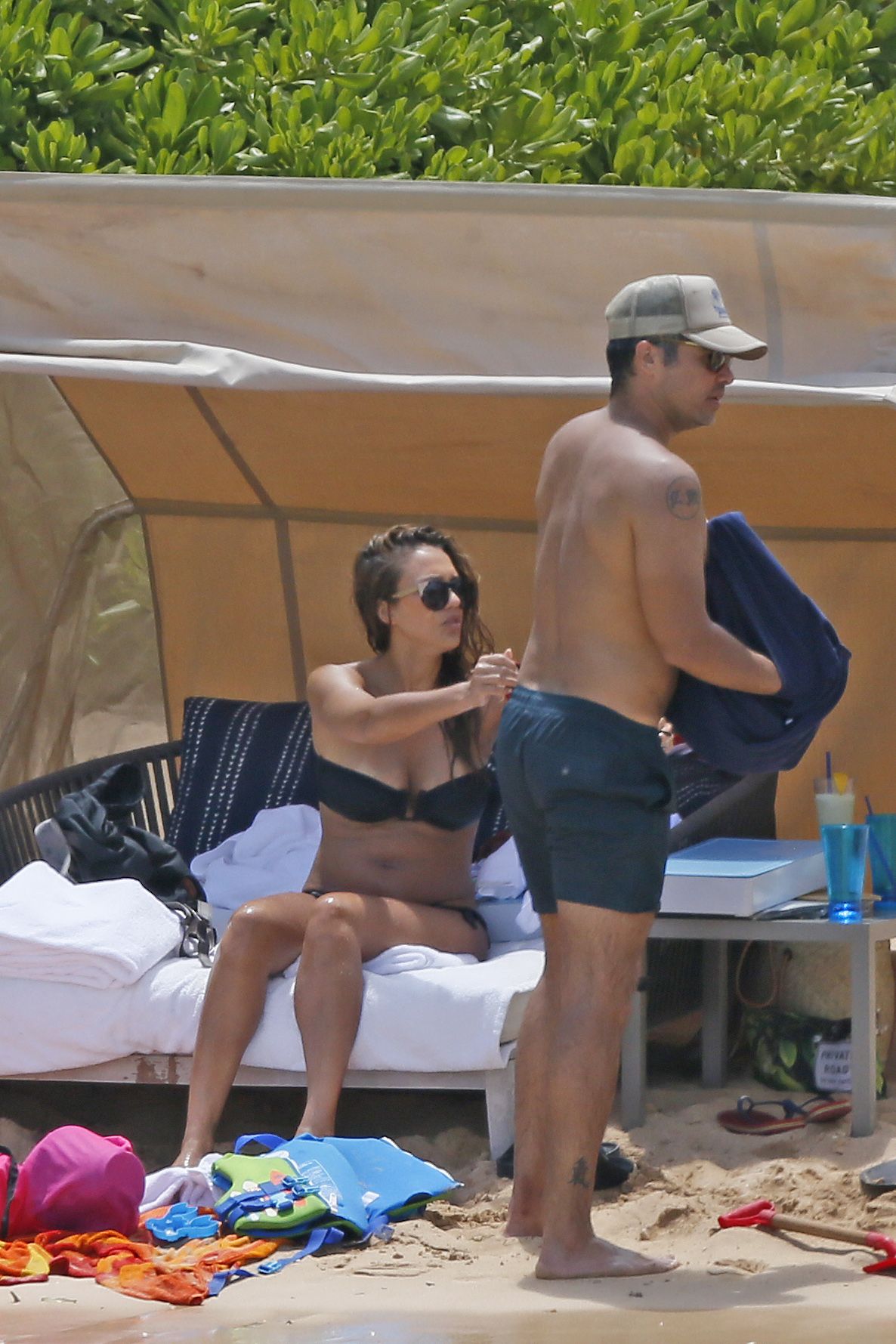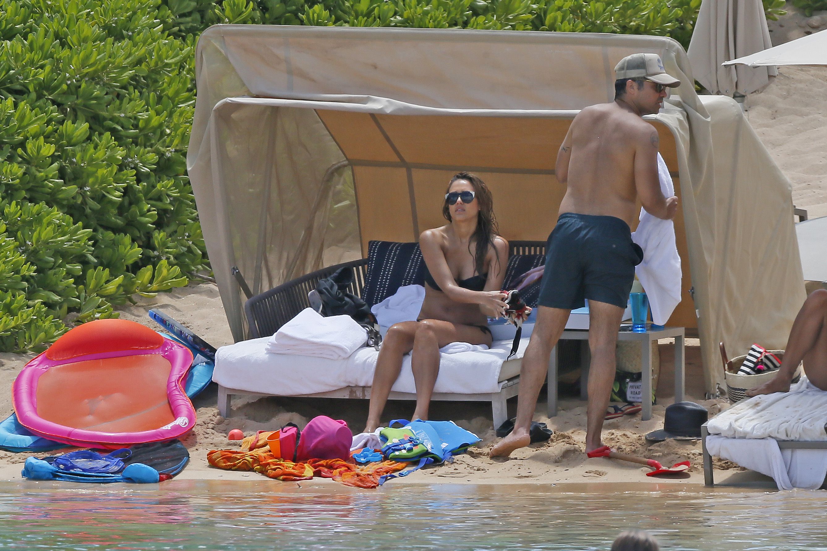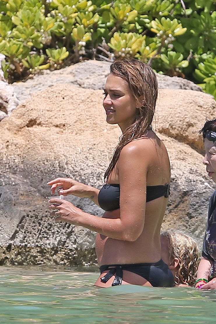 Jessica Alba usa um biquíni preto de férias com a família na praia no Havaí, 24/07/2017. Jessica Alba é uma atriz americana (The Killer Inside Me (2010)) e modelo. Idade: 36 anos.