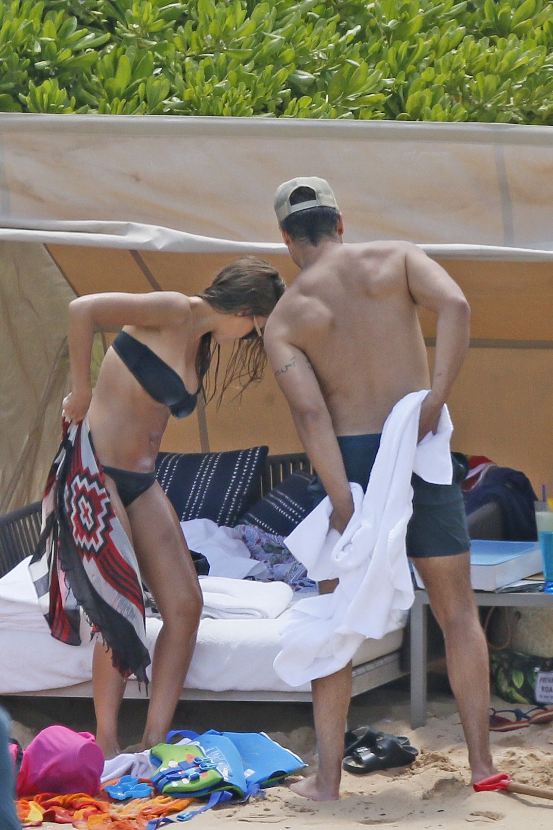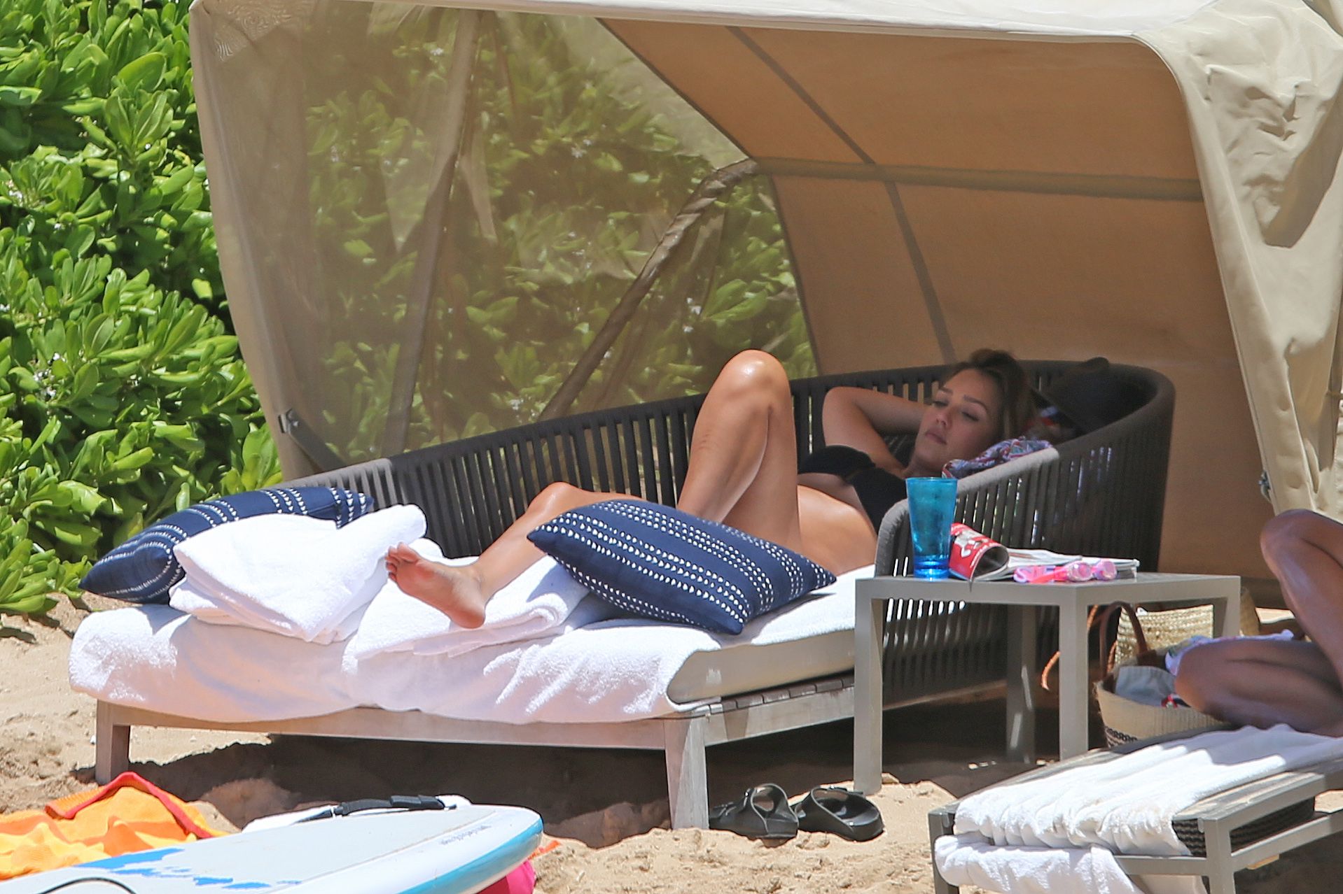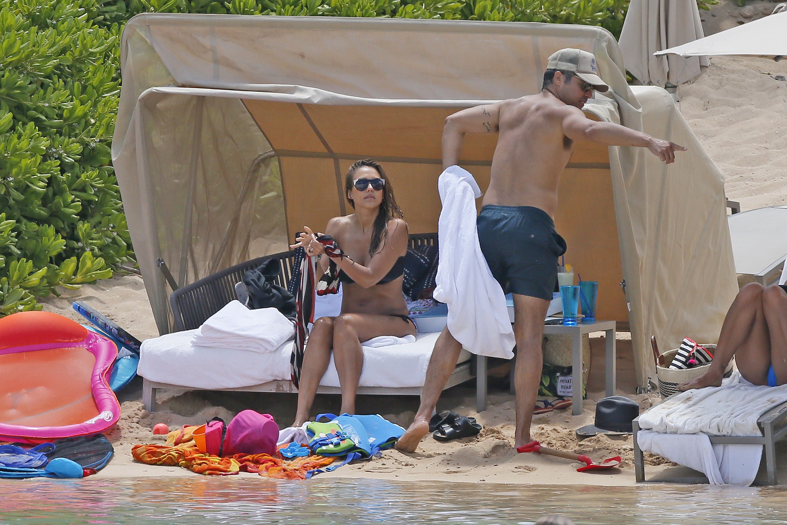 Jessica Alba usa um biquíni preto de férias com a família na praia no Havaí, 24/07/2017. Jessica Alba é uma atriz americana (The Killer Inside Me (2010)) e modelo. Idade: 36 anos.