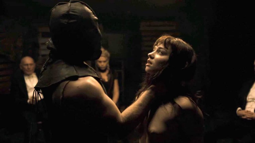 Jessica Barden tem uma cena nua em “Penny Dreadful” (2016) Temporada 3 Episódio 2 (s03e02), onde você pode ver essa gata sendo capturada e torturada por um grupo de pessoas. Ela está completamente nua quando o homem a leva para uma sala cheia de mulheres e homens que olham para Jessica como se ela fosse a presa! Então o homem bate no rosto dela e tenta encontrar algo para chutá-la, depois a mulher se levanta e encara Barden nos olhos! A linda Jessica mostrou seus seios e sua pubis!