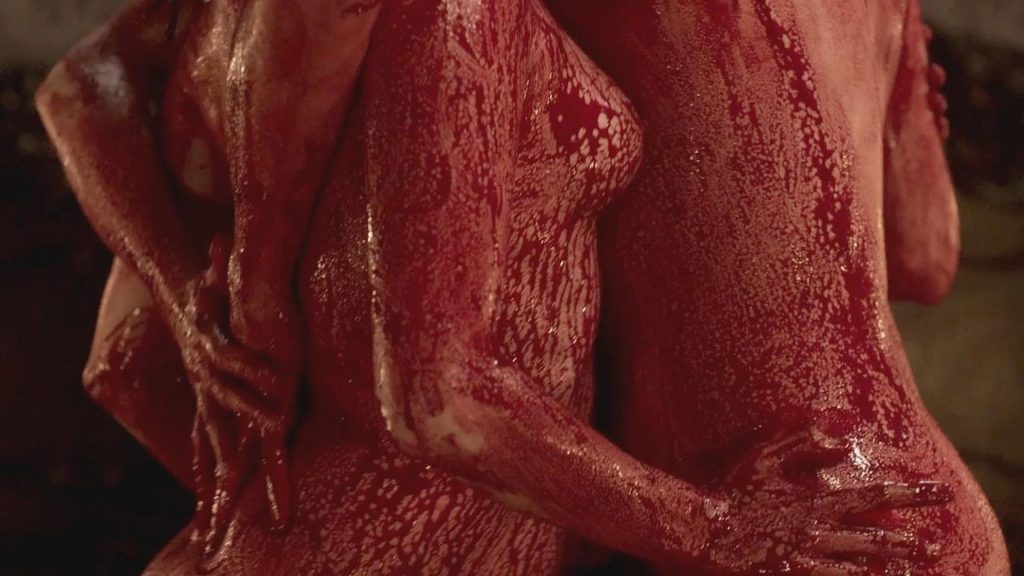 Ela e Billie Piper estavam nuas em um ménage à trois coberto de sangue com um homem na cama, fazendo sexo com ele enquanto vemos o bumbum e os seios de Jessica. A personagem de Billie também mostra nudez algumas vezes. Jessica estava sentada nua em uma cama ensanguentada, seu bumbum e seios visíveis enquanto ela senta de frente para Billie, que está envolvida em um lençol ensanguentado. As garotas conversam um pouco antes de Billie se inclinar para lhe dar um beijo lésbico.