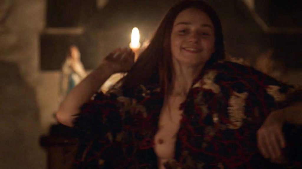 Jessica also showed her tit in the nude scene from “Lambs of God” (2019) Season 1 Episode 2 (s01e02). She dances around braless in an open robe, her right boob visible, and all of this in a dude’s jerk fantasy! She’s hot!