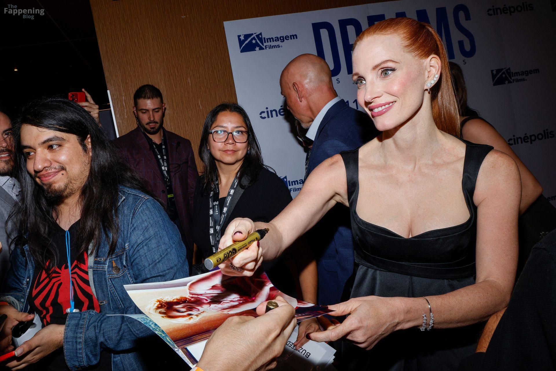 A atriz Jessica Chastain comparece ao tapete vermelho do filme “Dreams” no Cinepolis Plaza Miyana na Cidade do México, México.