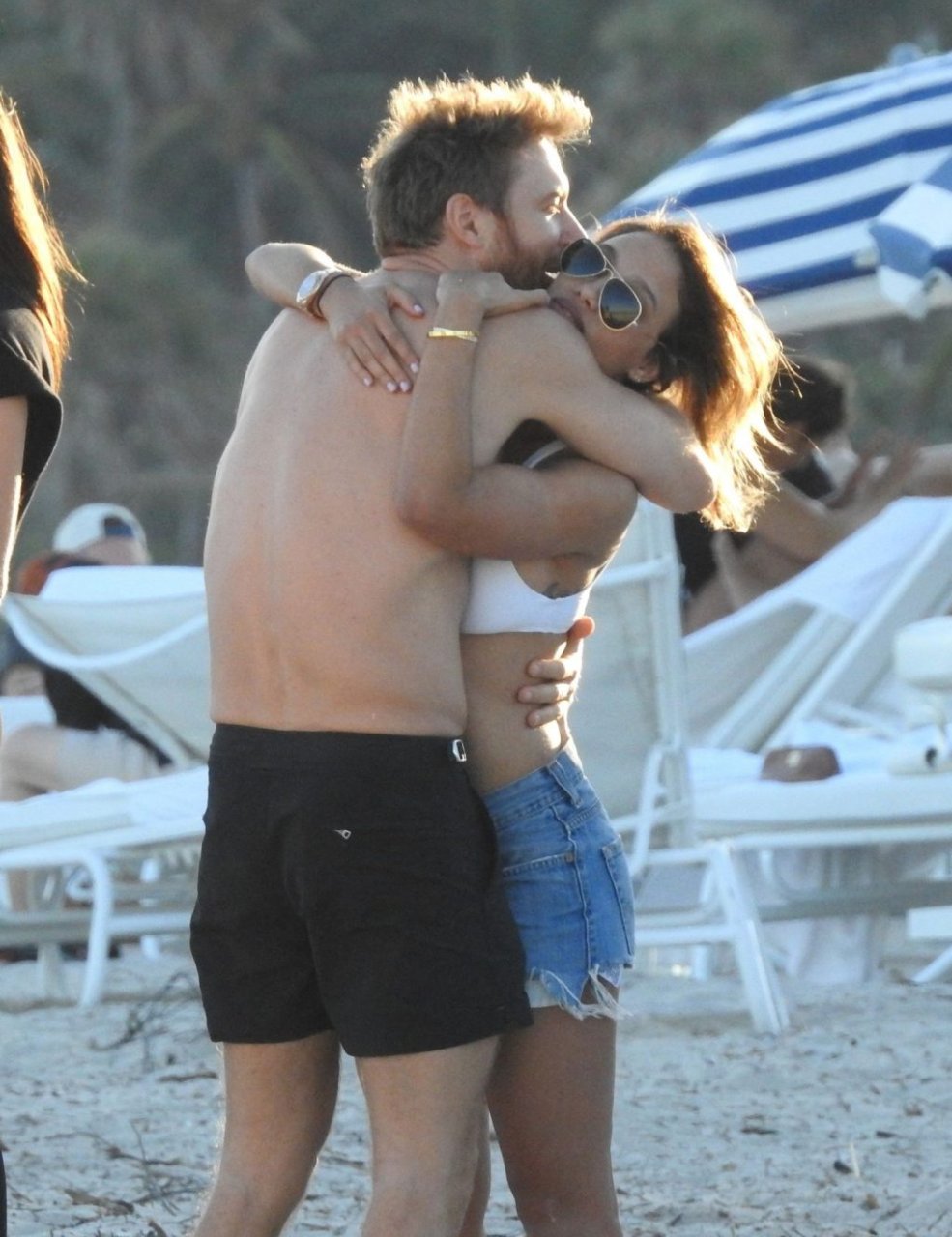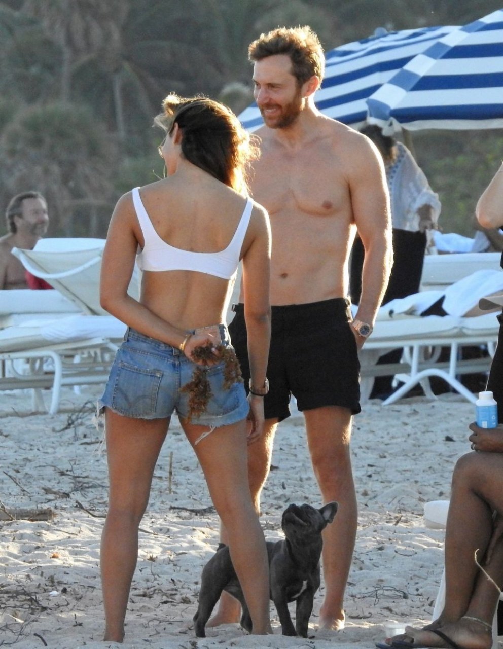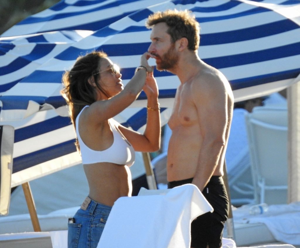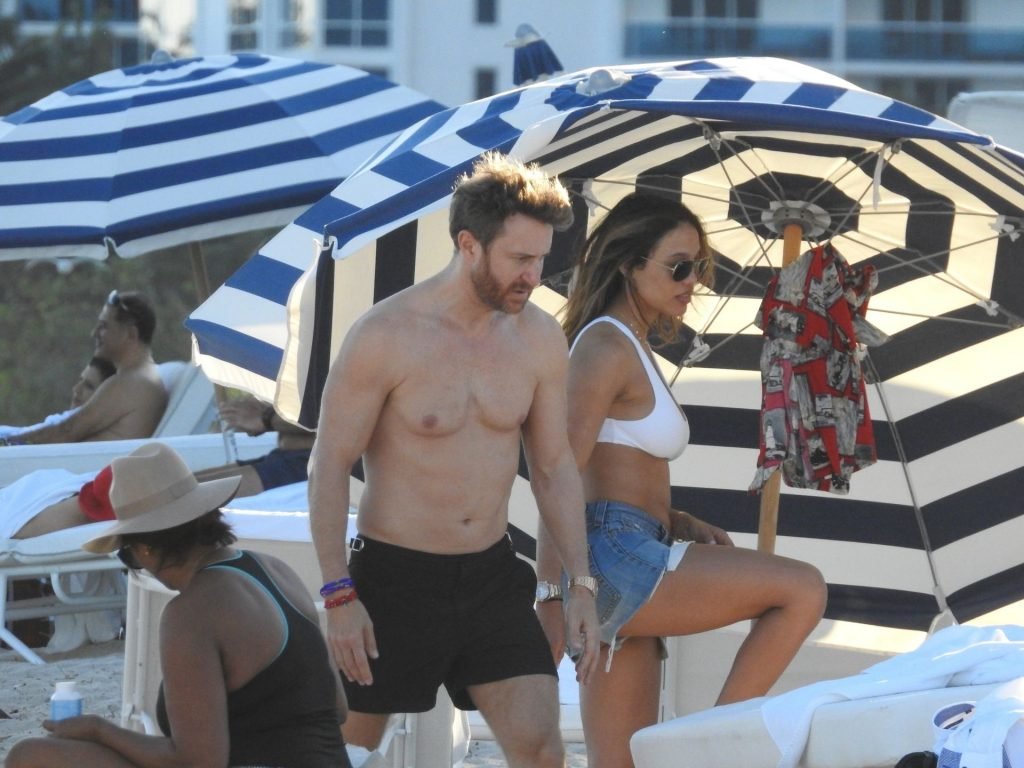 O DJ francês e ícone da pop/dance David Guetta foi fotografado parecendo mais em forma do que nunca, sem camisa, aos 50 anos, no dia de Natal na praia em Miami, 25/12/2017. Ele foi visto abraçando e acariciando sua linda namorada, a modelo latina Jessica Ledon. Embora ela seja muito mais jovem, eles pareciam adoráveis enquanto se abraçavam e posavam juntos, e ela também o ajudou a aplicar loção no nariz.