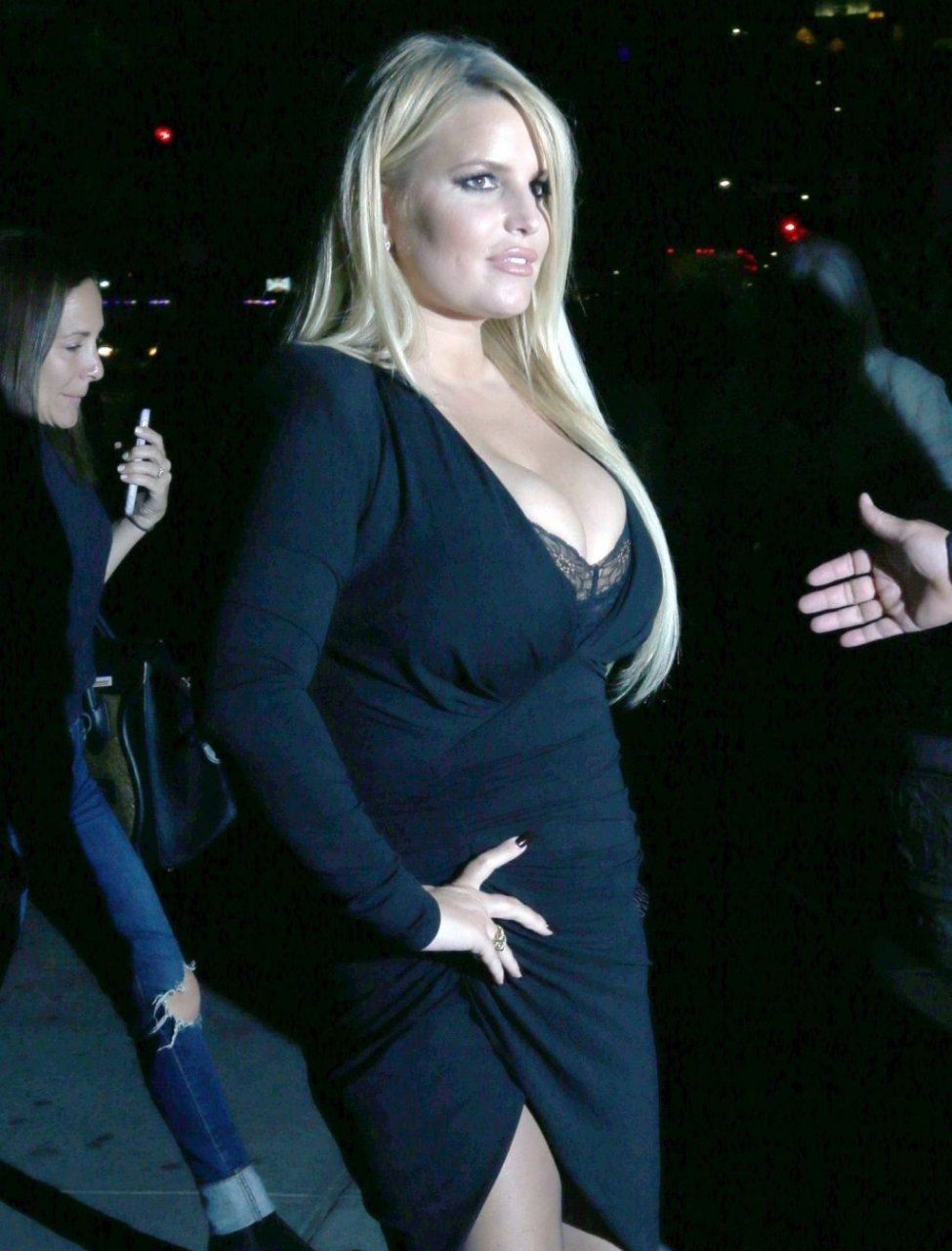 A atriz/cantora/apresentadora de TV americana Jessica Simpson exibe um decote profundo enquanto a estrela mostra a recente perda de peso em Nova York, 25/09/2019. Ela sofre um pequeno problema de figurino em seu vestido revelador ao retornar ao hotel após o jantar