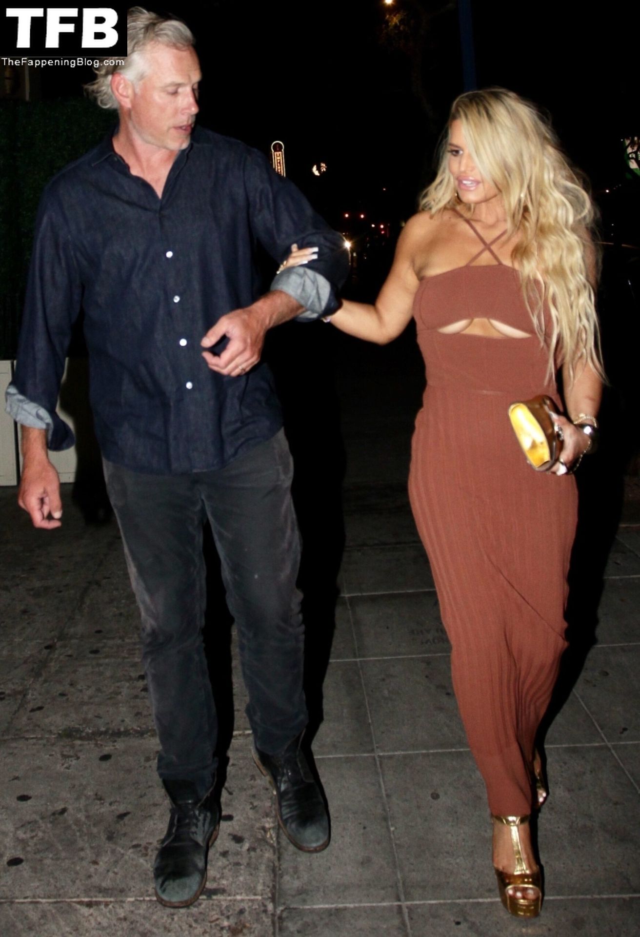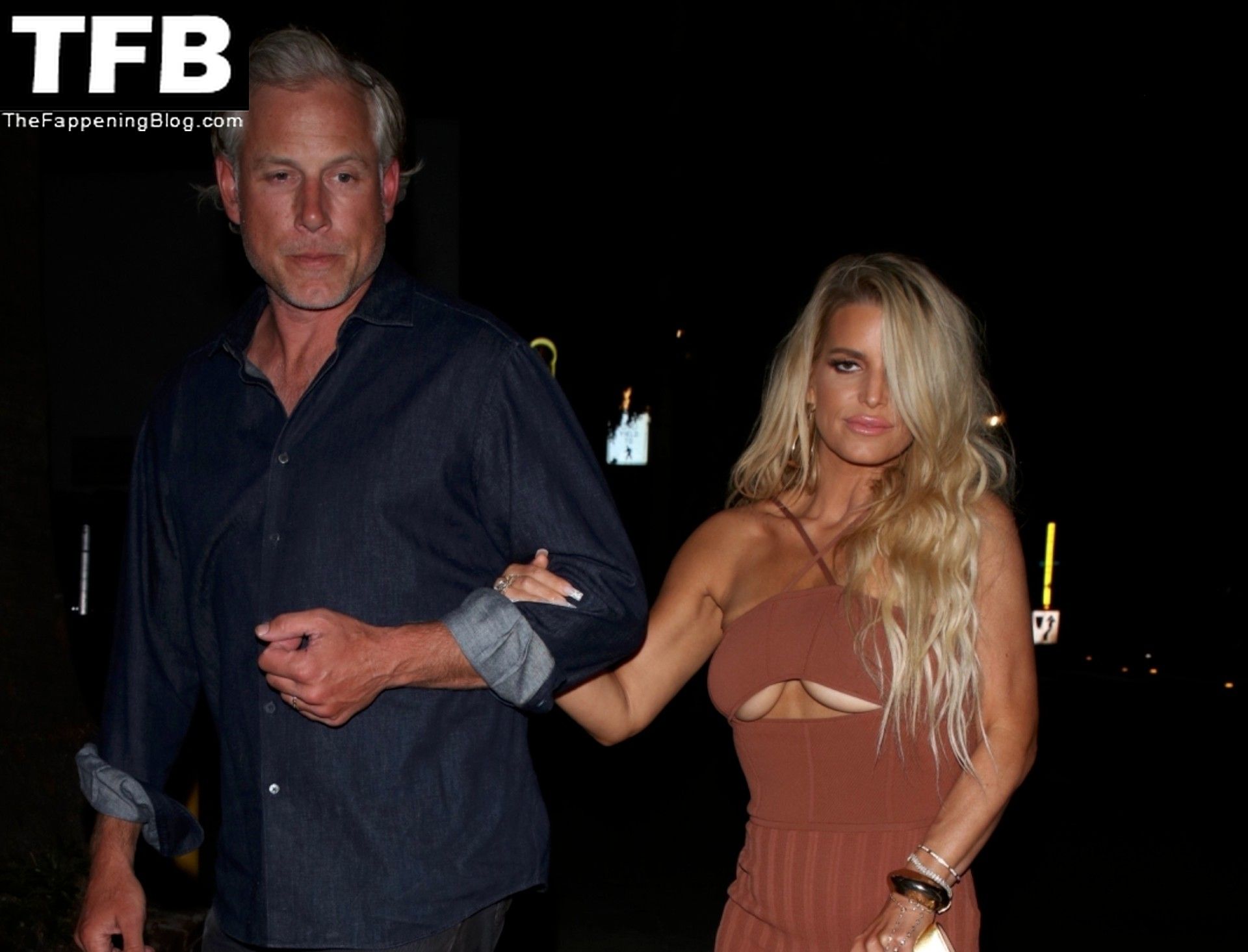 Hot loira Jessica Simpson é vista sem sutiã durante uma noite no Delilah em West Hollywood, 28/04/2022.