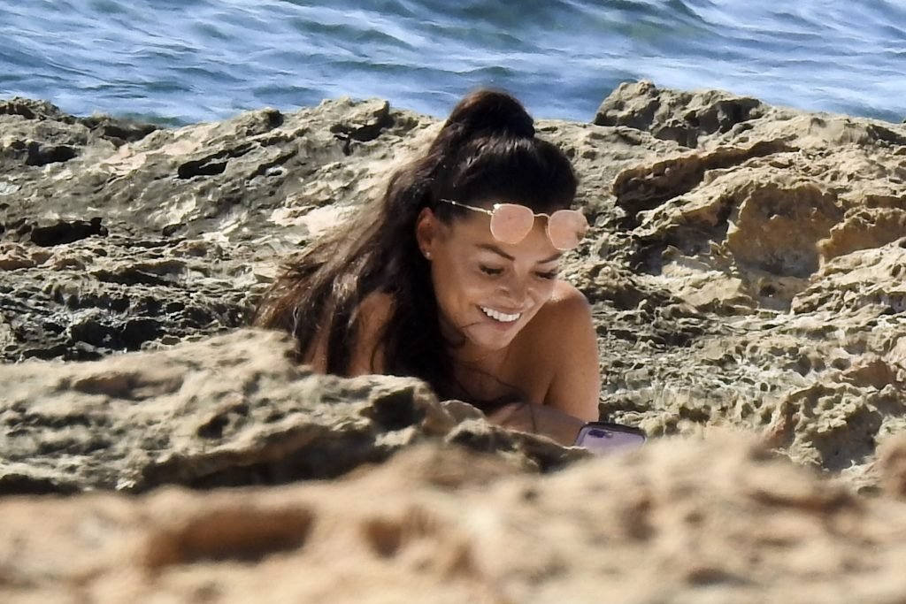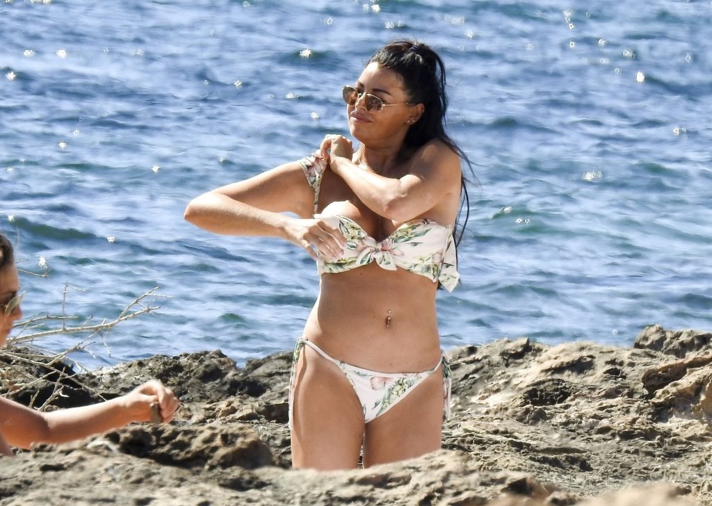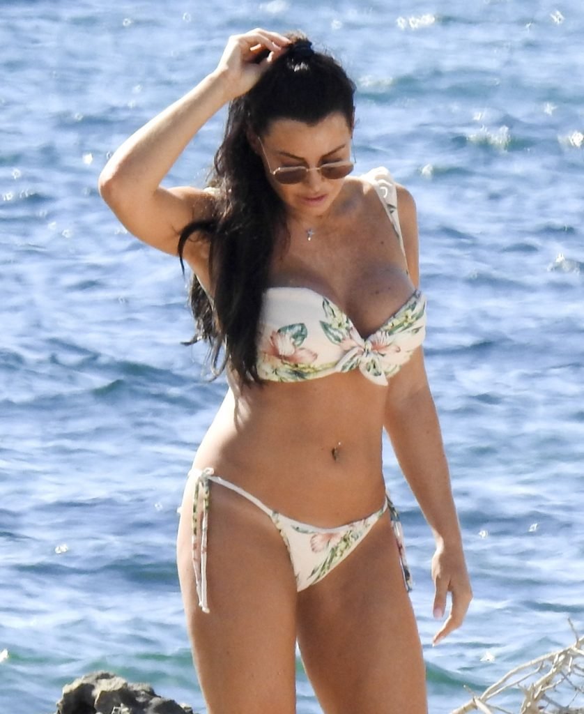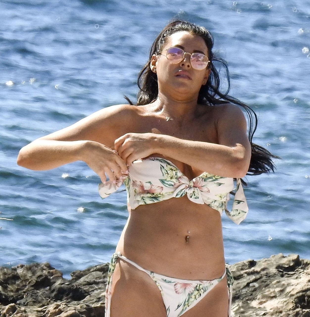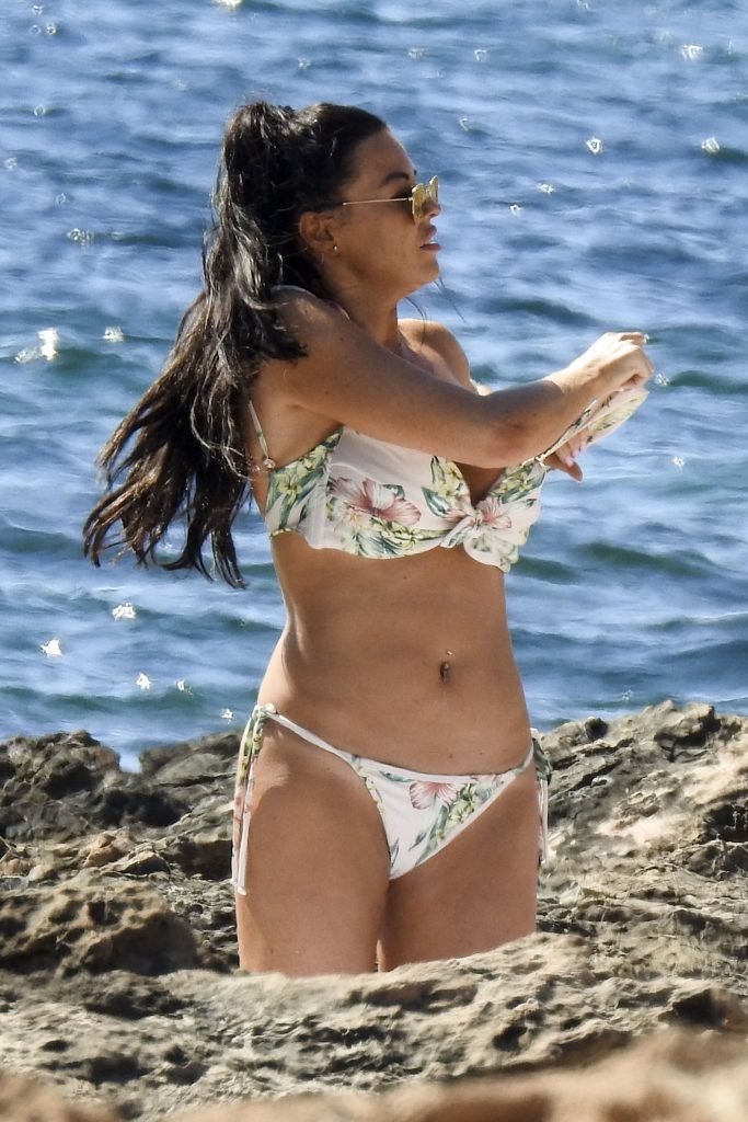 Jessica Wright exibe sua figura bronzeada de corpo de praia e parecia sensacional em um biquíni florido, passando um dia na praia de férias em Ibiza, 07/02/2018. A sexy estrela do TOWIE, que recentemente terminou com o namorado do Strictly Come Dancing, Giovanni Pernice, estava acompanhada por uma amiga enquanto as duas relaxavam nas praias rochosas, encontrando algo um pouco divertido em seus telefones.