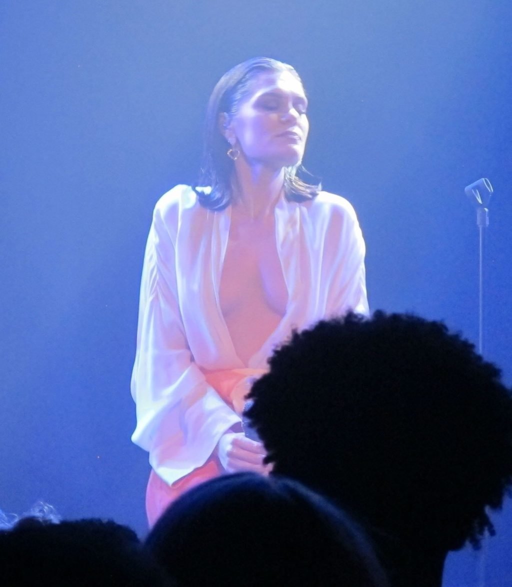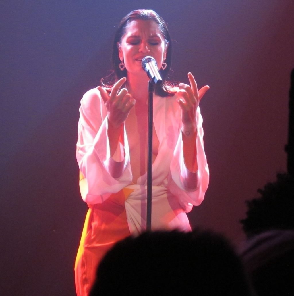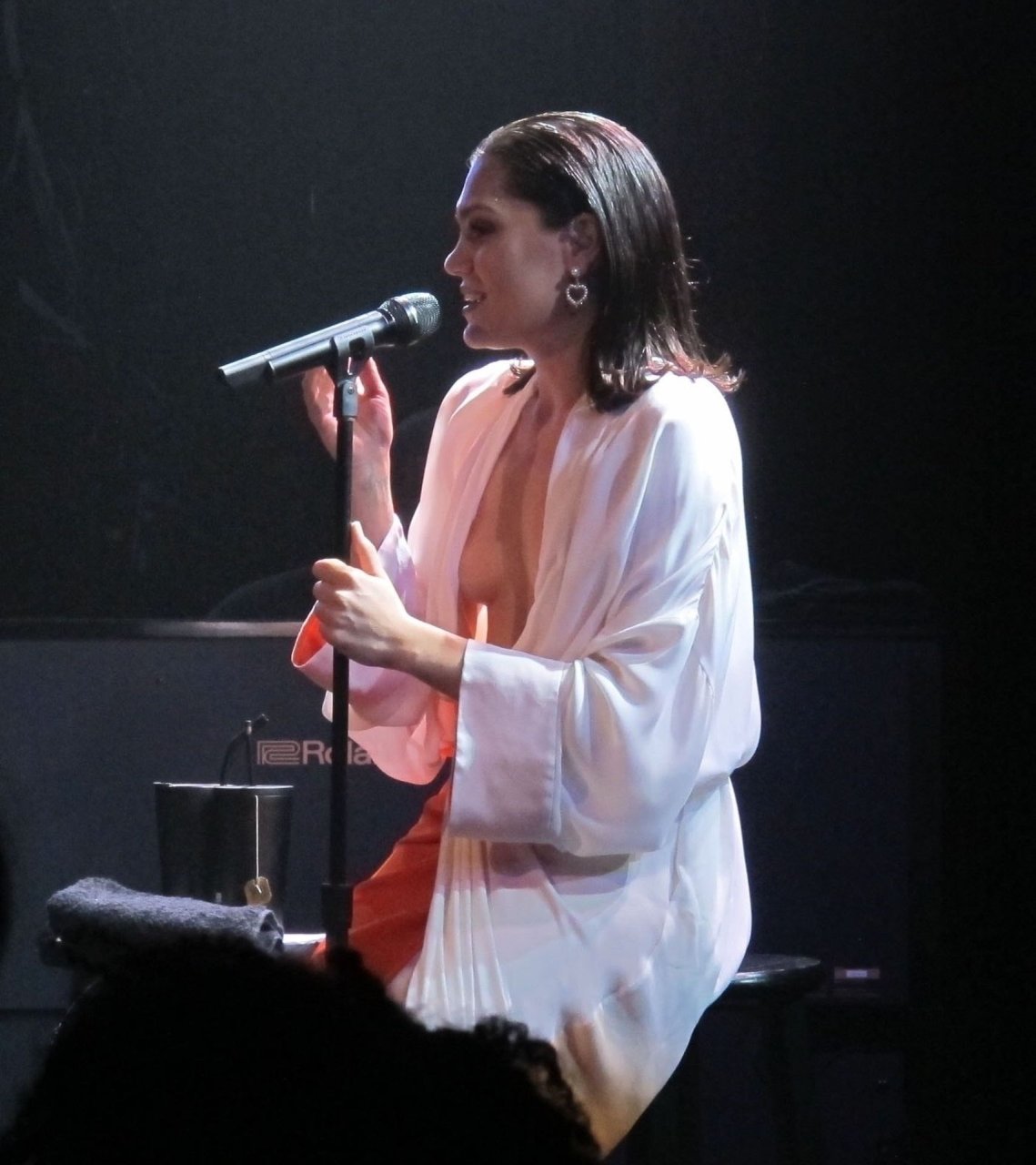 Jessie J usa um vestido estiloso e muito revelador de grife para se apresentar diante dos fãs, incluindo seu namorado, Channing Tatum, em um show íntimo em Los Angeles, 23/09/2019. Jessie fez um set acústico de duas horas, seu primeiro desde 2013, no famoso local de música Troubadour.